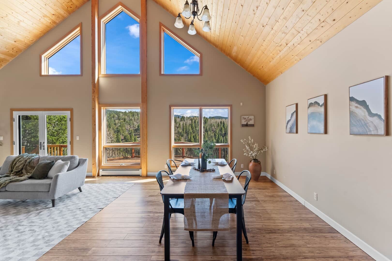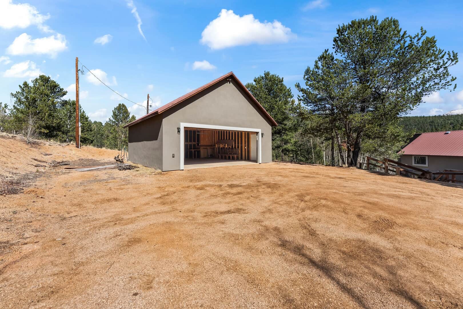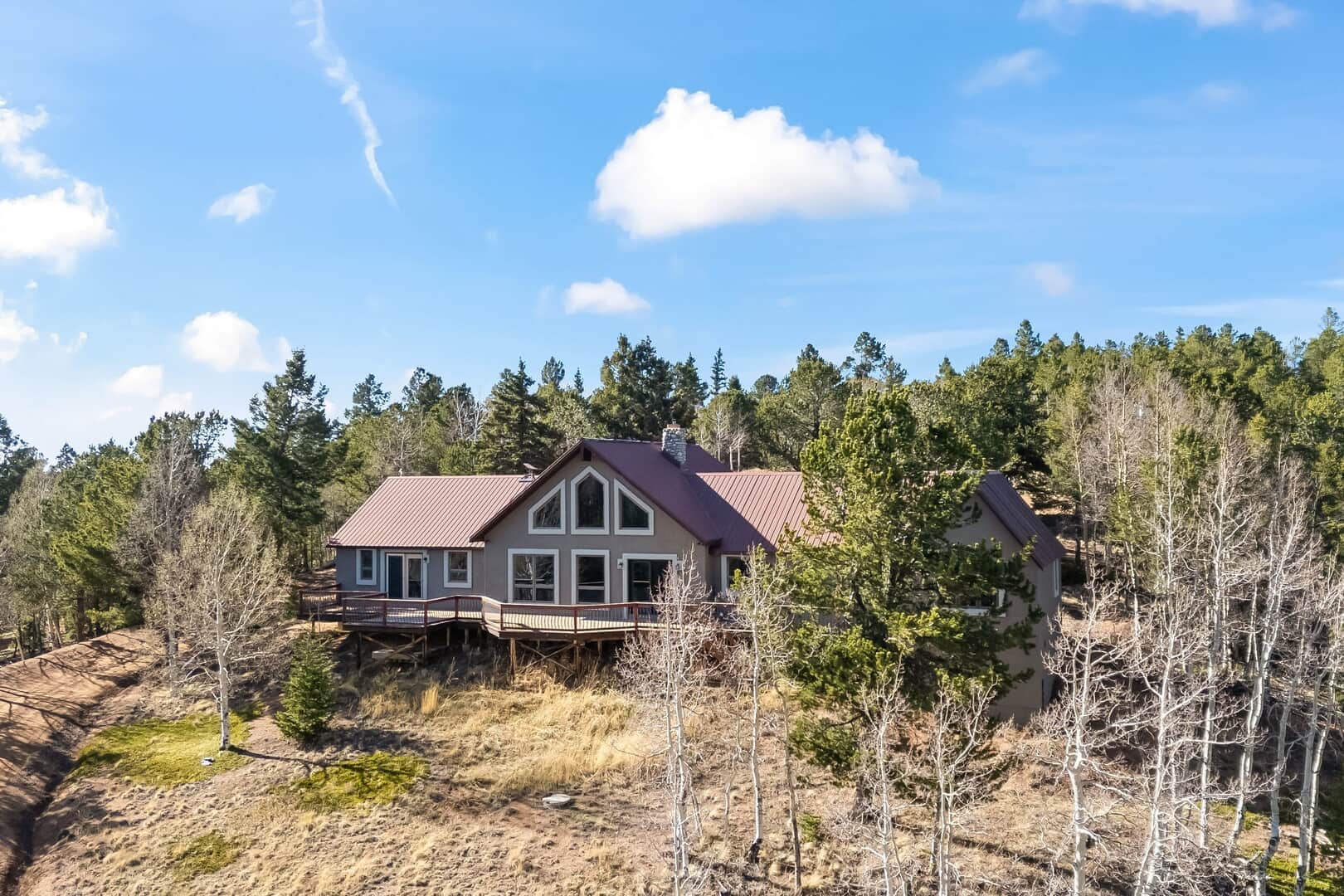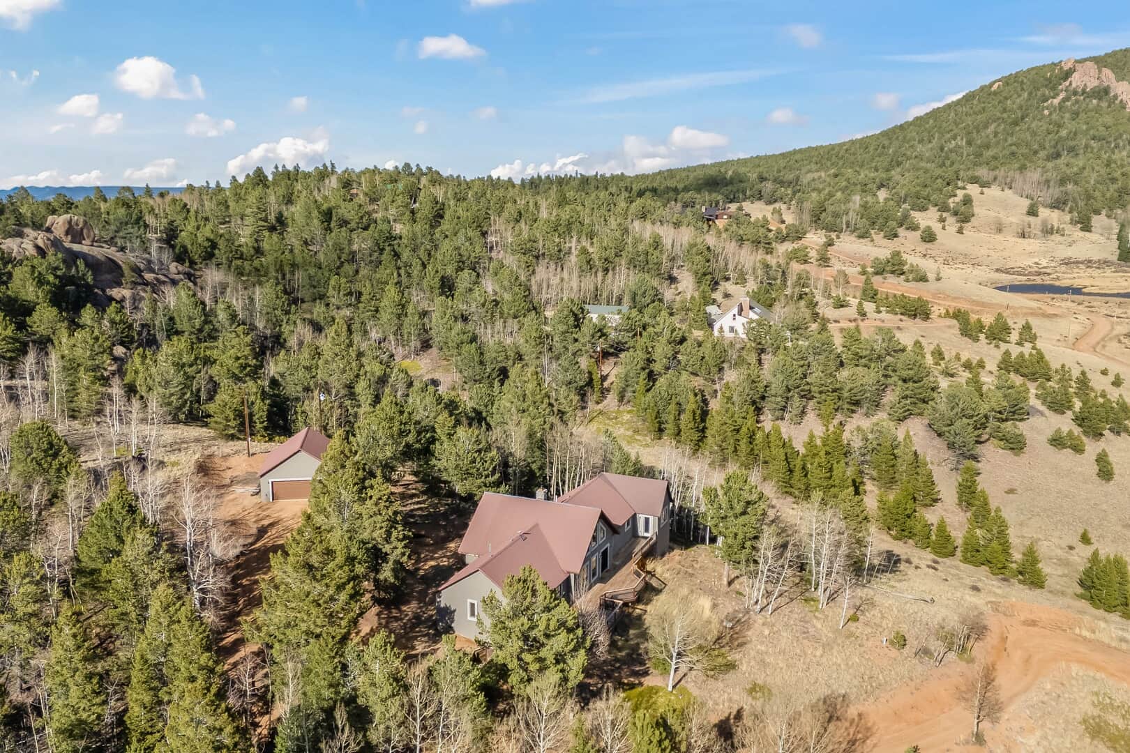 Tucked away on 11.5 private acres in the gated community of Raspberry Mountain, this is the Colorado mountain lifestyle you’ve been dreaming of. Surrounded by towering pines and endless sky, this property captures truly breathtaking views—from the backside of Pikes Peak to the distant Sangre de Cristo range and Collegiate Peaks. It’s the kind of setting that makes you slow down, breathe deeper, and stay a little longer. Inside, the home was designed to bring people together while still offering space to retreat. The open-concept main level features a spacious kitchen made for gathering, flowing seamlessly into the dining and living areas. A stunning floor-to-ceiling stone fireplace anchors the space, while expansive windows frame the landscape and flood the home with natural light. The primary suite is its own private haven, complete with an en suite office and a luxurious bathroom—perfect for quiet mornings or productive afternoons with a view. Each additional bedroom also features its own bathroom, offering comfort and privacy for family or guests. Upstairs, a loft overlooks the main living area, creating a versatile bonus space ideal for a playroom, studio, or cozy reading nook. Step outside to a deck that spans the length of the home, with multiple access points from the living area and bedrooms—perfect for soaking in the views, entertaining, or simply enjoying the peaceful surroundings. Additional features include a detached oversized two-car garage and the flexibility to have chickens, giving you the option to embrace a more self-sufficient lifestyle. Located within a gated community with a low-cost, minimally restrictive HOA, this property offers the rare combination of privacy, freedom, and accessibility. Whether you’re looking for a full-time residence, mountain retreat, or a place to truly unplug, this is where Colorado living comes to life.