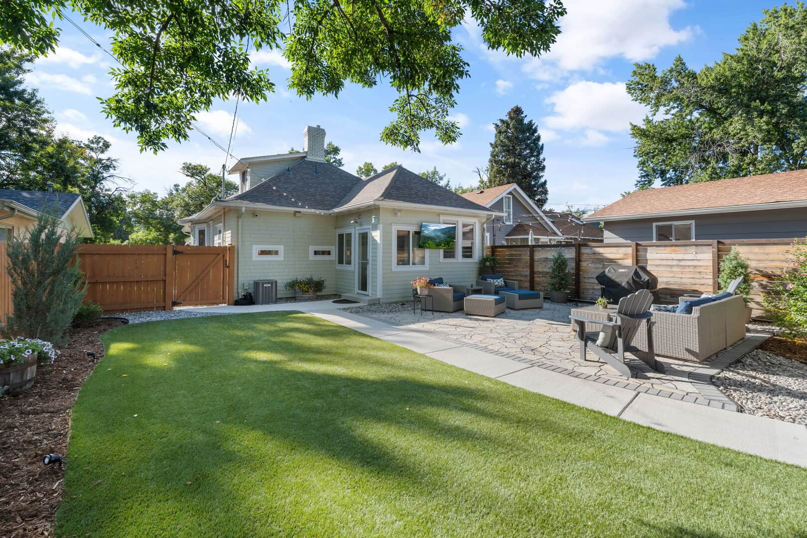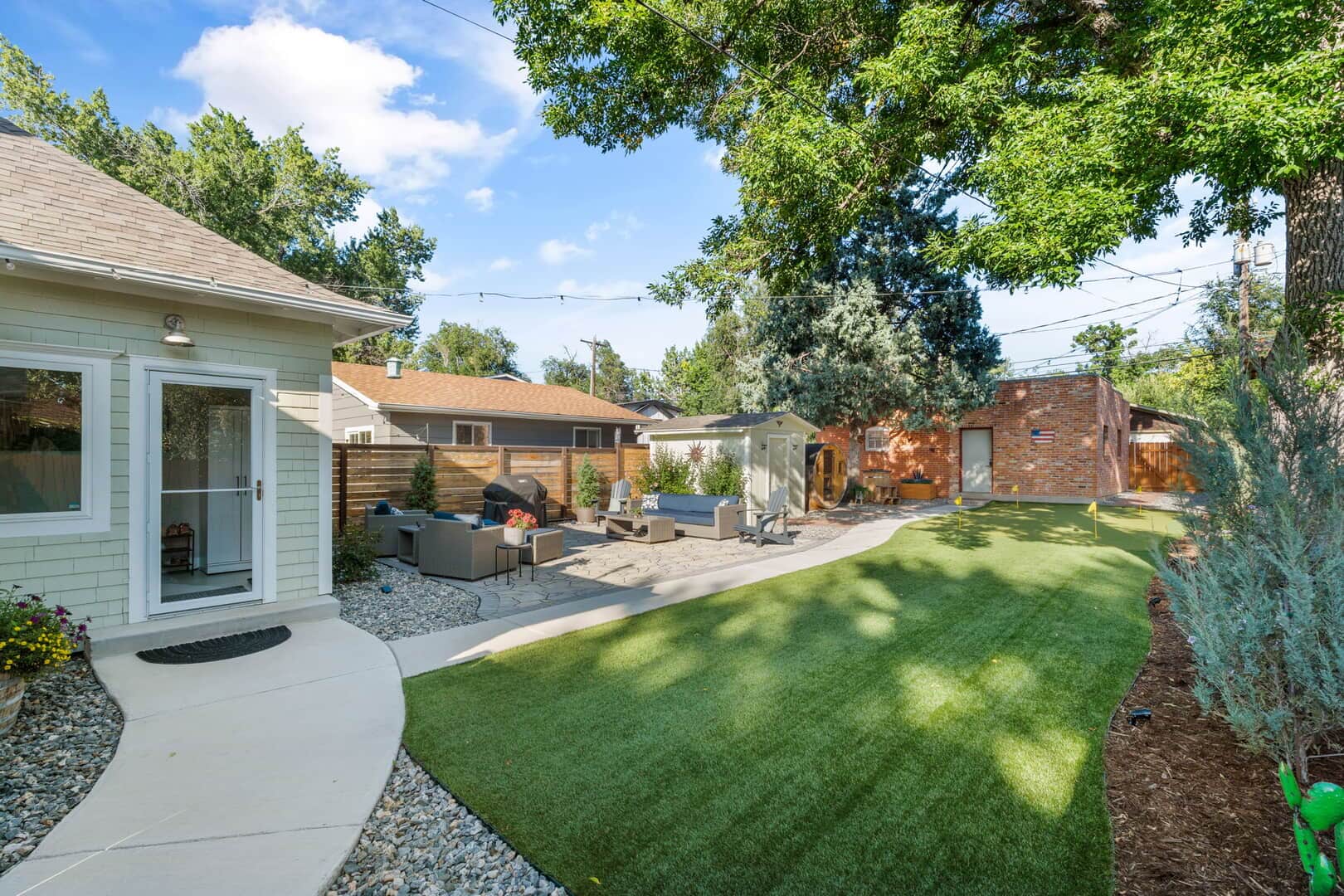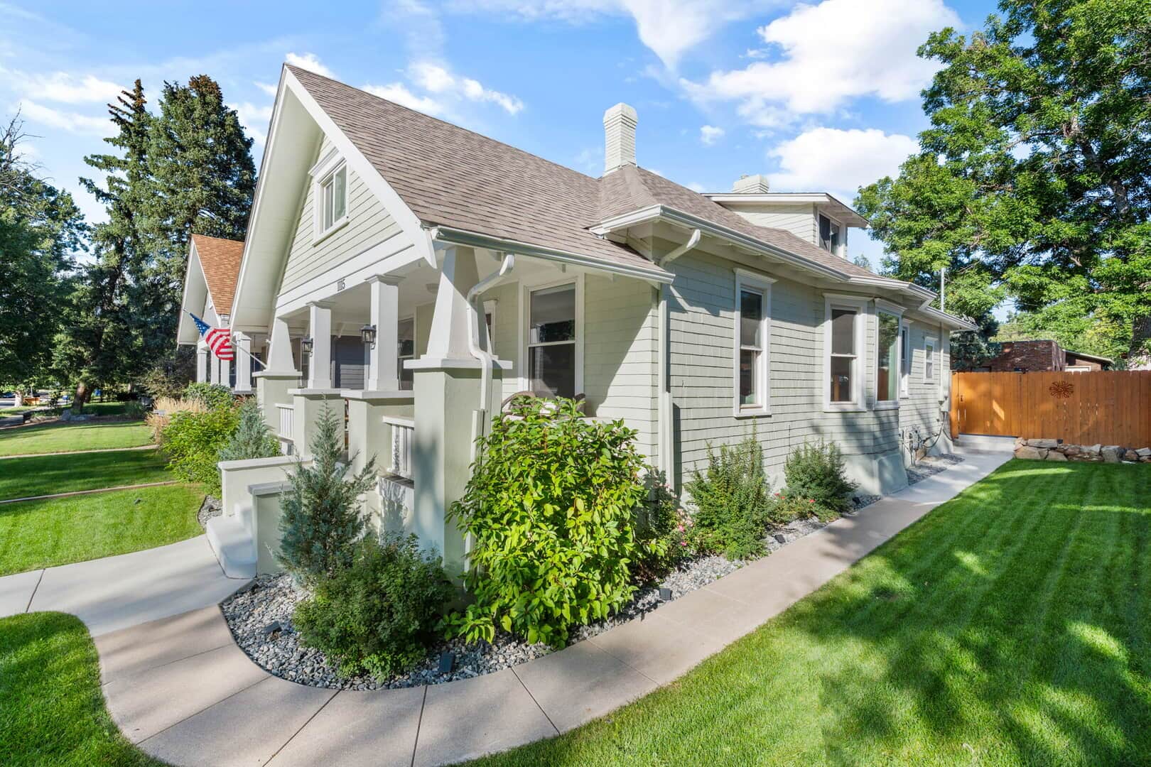 Take a look at this charming turn-of-the-century home near Shooks Run and Patty Jewett! This well-preserved historic home offers the perfect blend of original character and modern conveniences. Featuring refinished Douglas fir flooring throughout much of the main level, a unique decorative fireplace with its original ornate cover, and Van Briggle tile, this home retains the warmth and craftsmanship of a bygone era. The living room opens to a spacious dining area, complete with a built-in hutch and bookcase—ideal for gatherings or everyday living. The updated kitchen includes quartz countertops, stainless steel appliances, custom cabinetry, and a convenient wine and coffee bar. The primary suite offers a walk-in closet and a recently updated bath with an oversized shower and custom tile work. A second main-level bedroom and full guest bath provide flexible living options, while the laundry is conveniently located on the same floor. Upstairs, you’ll find a large third bedroom and office/flex space with additional storage and another walk-in closet—perfect as a home office, guest room, or play area. Enjoy quiet mornings or evenings on the covered front porch with mountain views and Colorado sunsets. The fully fenced and turfed backyard offers privacy with room to relax and entertain on the large flagstone patio and includes a putting green! The two-car garage includes a workshop area, alley access, and extra off-street parking. Located close to downtown Colorado Springs, Monument Valley Park, the Loop Trail, schools, medical facilities, and I-25. This home is ideally situated for both convenience and lifestyle. Don’t miss out on this gem–schedule a private showing today!