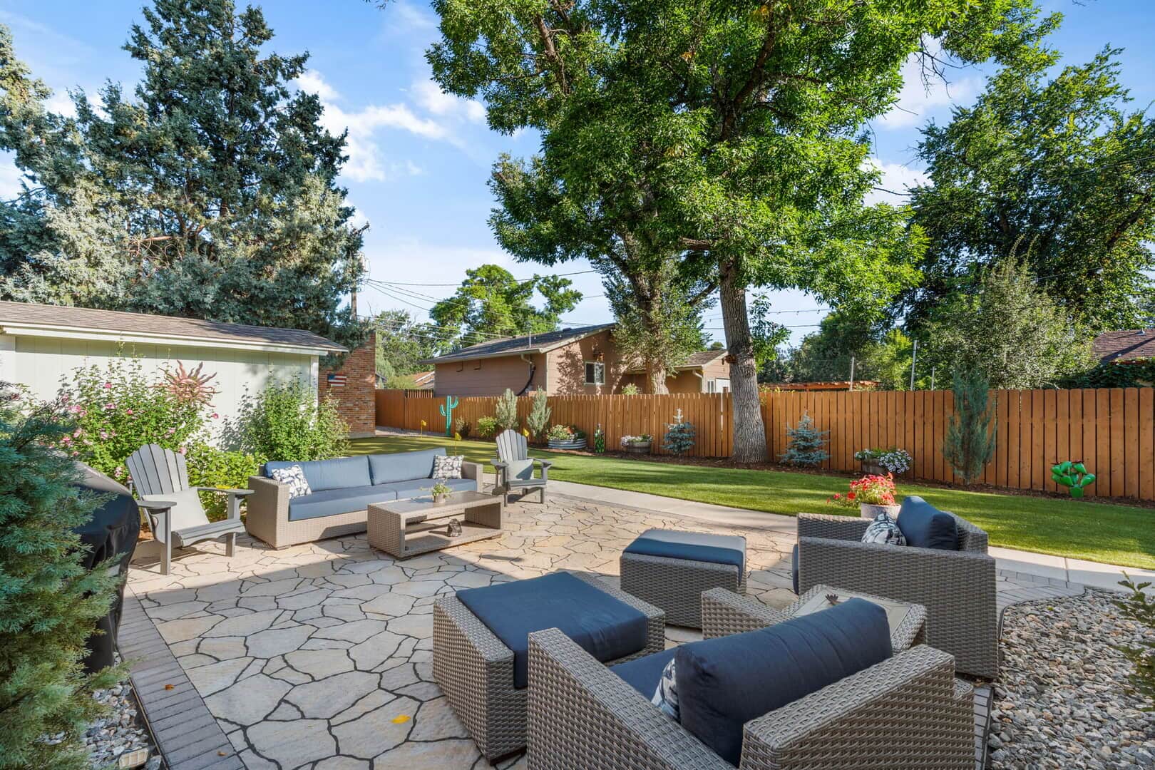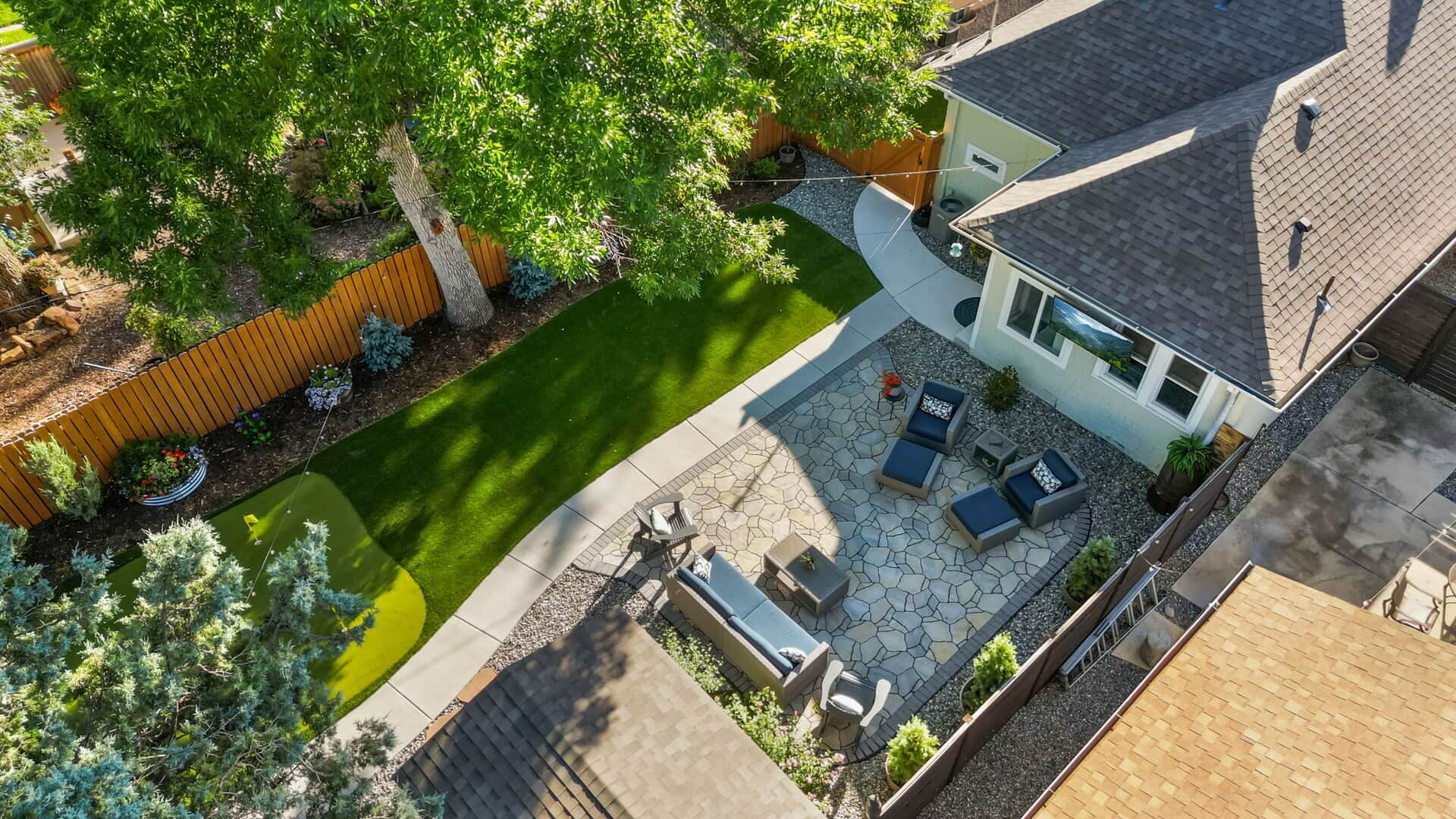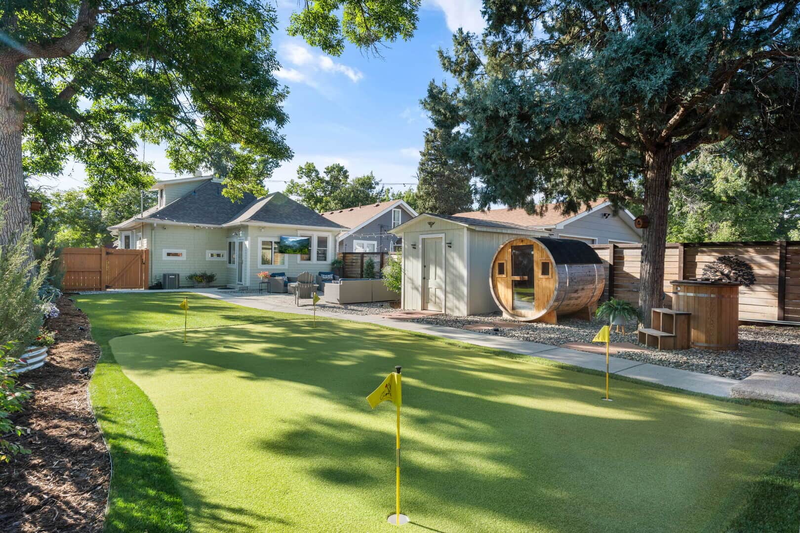 Take a look at this charming turn-of-the-century home near Shooks Run and Patty Jewett! This well-preserved historic home offers the perfect blend of original character and modern conveniences. Featuring refinished Douglas fir flooring throughout much of the main level, a unique decorative fireplace with its original ornate cover, and Van Briggle tile, this home retains the warmth and craftsmanship of a bygone era. The living room opens to a spacious dining area, complete with a built-in hutch and bookcase—ideal for gatherings or everyday living. The updated kitchen includes quartz countertops, stainless steel appliances, custom cabinetry, and a convenient wine and coffee bar. The primary suite offers a walk-in closet and a recently updated bath with an oversized shower and custom tile work. A second main-level bedroom and full guest bath provide flexible living options, while the laundry is conveniently located on the same floor. Upstairs, you’ll find a large third bedroom and office/flex space with additional storage and another walk-in closet—perfect as a home office, guest room, or play area. Enjoy quiet mornings or evenings on the covered front porch with mountain views and Colorado sunsets. The fully fenced and turfed backyard offers privacy with room to relax and entertain on the large flagstone patio and includes a putting green! The two-car garage includes a workshop area, alley access, and extra off-street parking. Located close to downtown Colorado Springs, Monument Valley Park, the Loop Trail, schools, medical facilities, and I-25. This home is ideally situated for both convenience and lifestyle. Don’t miss out on this gem–schedule a private showing today!