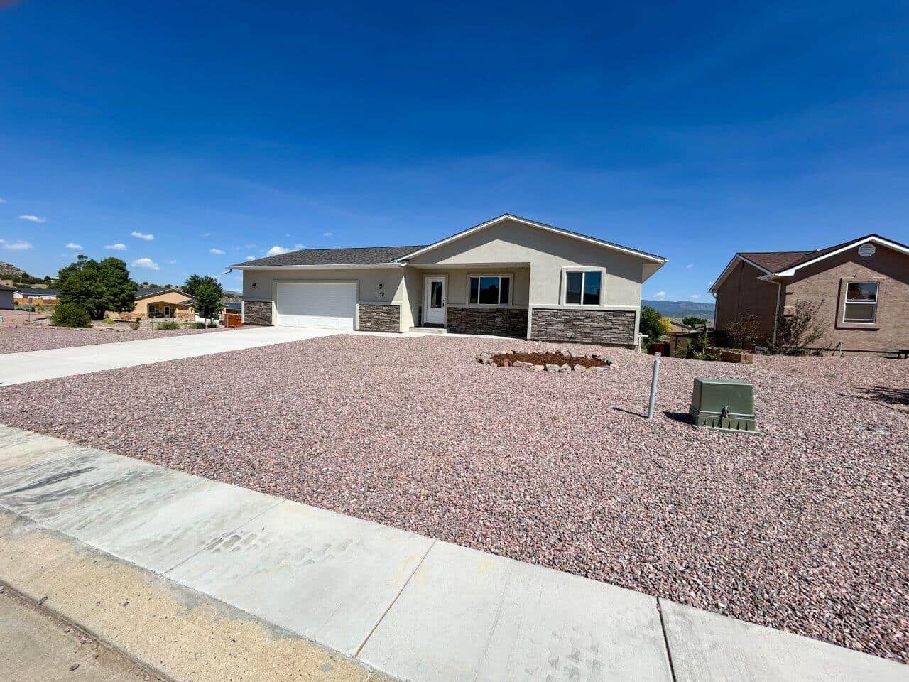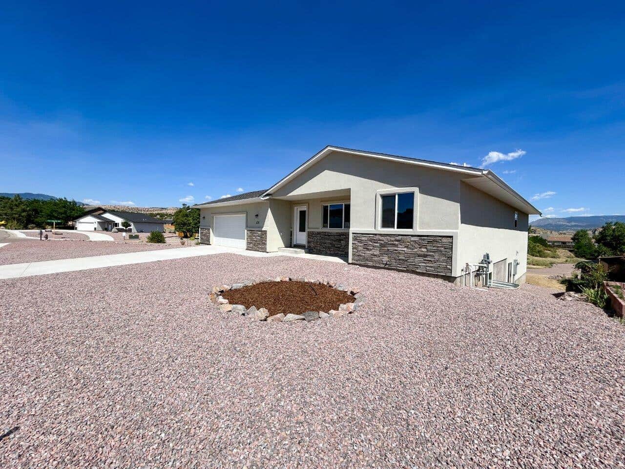 LOOKING FOR A WELL-BUILT NEW HOME IN FLORENCE? This 3 Bedroom, 3 bath ranch style stucco home in High Meadows subdivision is a fabulous buy. No maintenance exterior includes metal soffits and stone accents. Main level has much desired open floor plan with convenient guest bath. The kitchen features white cabinets with granite countertops, an island, breakfast bar, huge pantry and separate broom closet. New stainless steel kitchen appliances will be included. Large primary suite with walk in closet and adjoining bath which includes double sink vanity and expansive shower!. The primary has a private deck with amazing views of Pikes Peak! Walk out basement with rec room, 2 bedrooms, study and a large unfinished room great for storage! Other features include vaulted ceilings, attached 2 car oversized garage, tankless hot water heater and central air!
