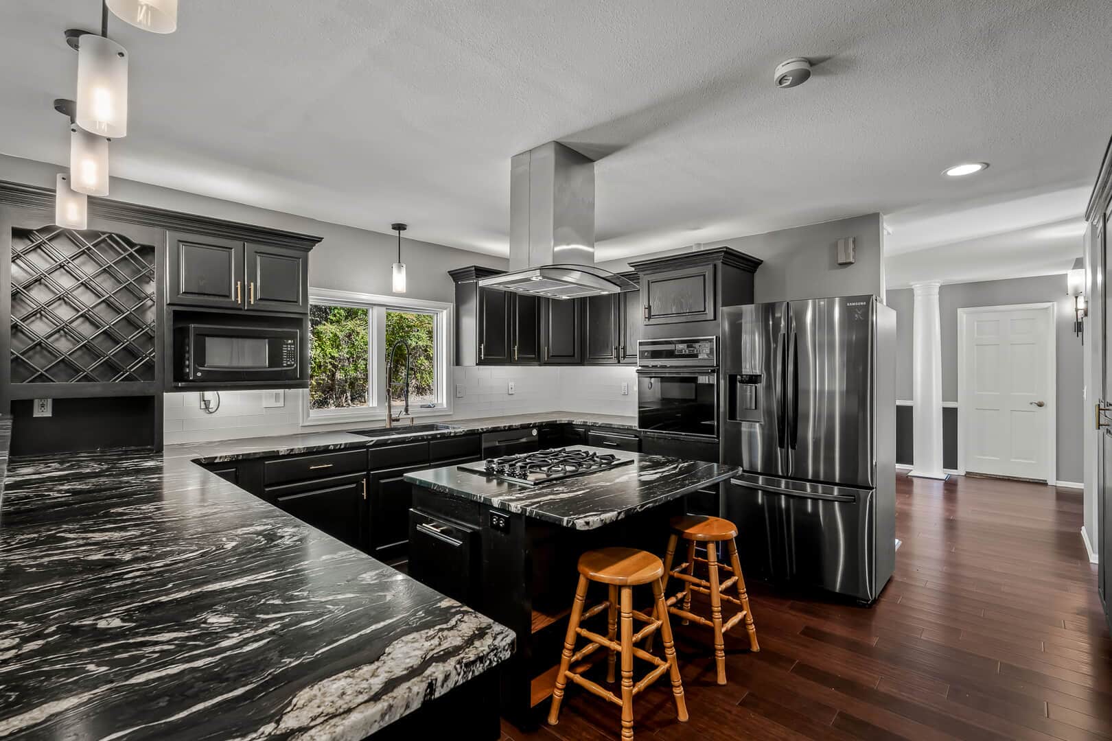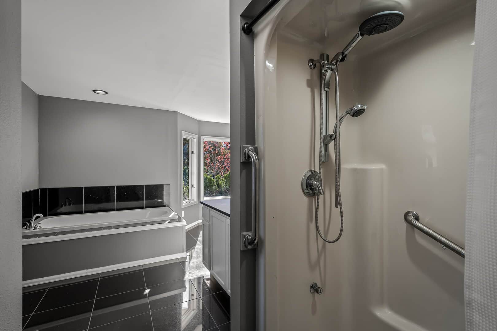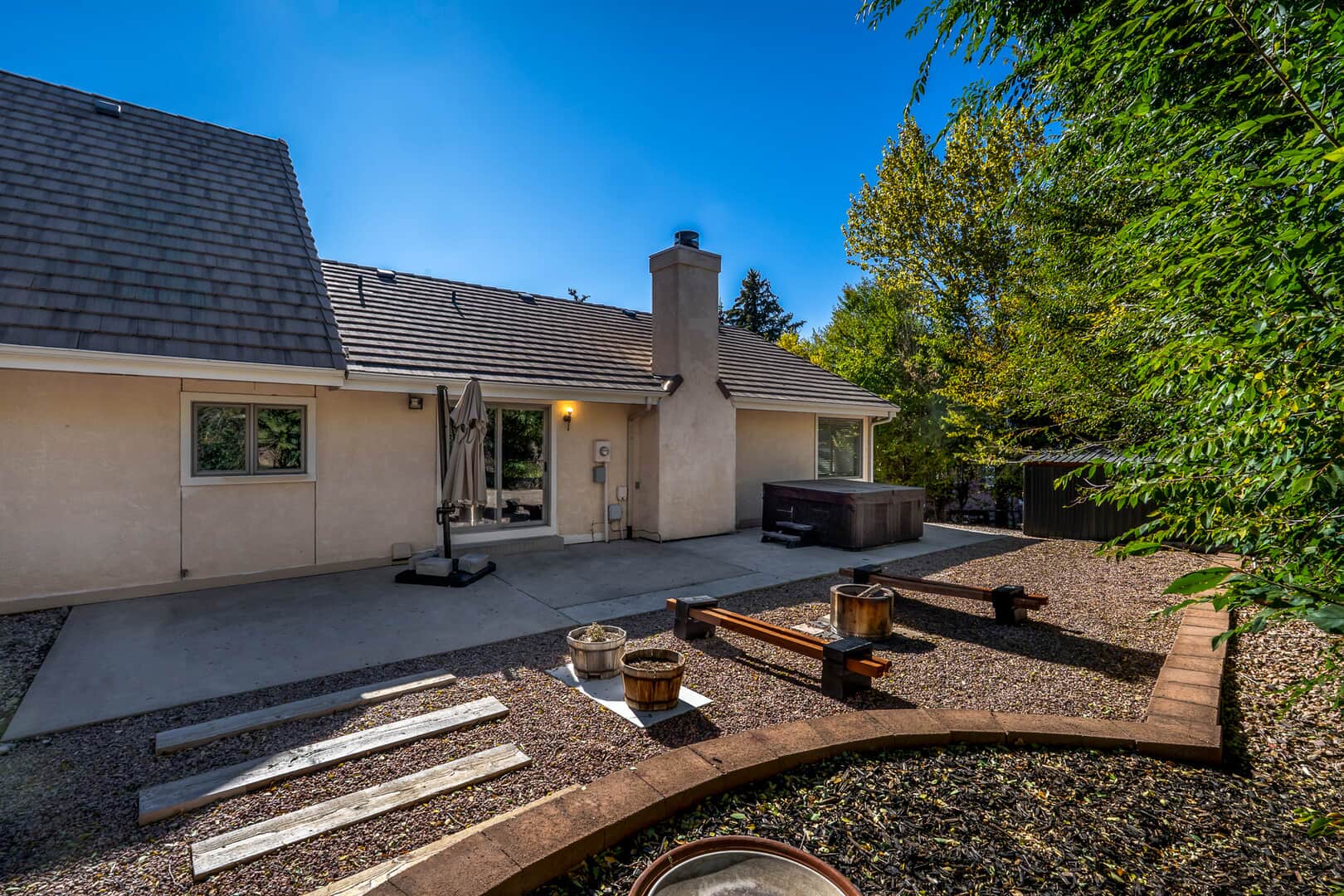 Beautiful stucco 2-story in coveted Gleneagle/Northgate and District 20! This quiet retreat sits on a spacious lot on a cul-de-sac and backs to open space, offering a peaceful and private rear yard. A rare main-floor primary suite provides convenience and privacy. Inside, you’ll find a spacious main-level office and a formal dining room with bay window views. The upgraded kitchen features modern finishes, granite countertops, refinished cabinetry, a newer sink and faucet, under-cabinet lighting, pull-out drawers, a gas cooktop island, and a full wall of pantry space. The remodeled 5-piece master bath is a luxurious retreat. Approximately 1,200 sq. ft. of bamboo flooring spans the main level, while the laundry and half bath feature new porcelain tile floors. Some newer carpet with upgraded pad adds comfort, and the walk-in master closet includes a custom organizer system. The open family great room is perfect for entertaining with a cozy fireplace, and a pool table that stays. Newer Samsung mini-split heating and cooling systems on the main level offer added efficiency. Upstairs bedrooms are generous, each with bonus attic rooms for extra storage or hobby space. The oversized, heated 3-car garage includes high ceilings, is fully sheet rocked with added lighting, and has a workshop area plus a convenient dog kennel with outdoor access. A full-length crawlspace offers excellent storage. Radiant heating keeps things cozy in winter, and an attic fan cools the home on summer nights. Step outside to enjoy the large patio, gazebo, hot tub, and quiet open space views. The home is surrounded by mature trees and xeriscaped landscaping that enhance curb appeal year-round. Located minutes from the Air Force Academy, I-25, top-rated schools, golf, trails, shopping, dining, and medical facilities—this home blends tranquility with convenience. Colorado living at its best!