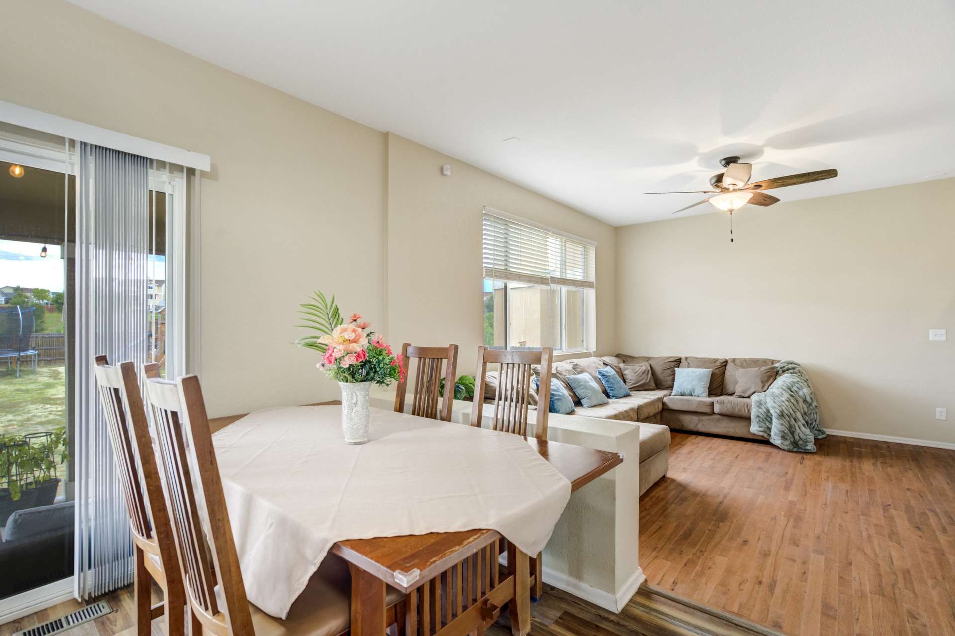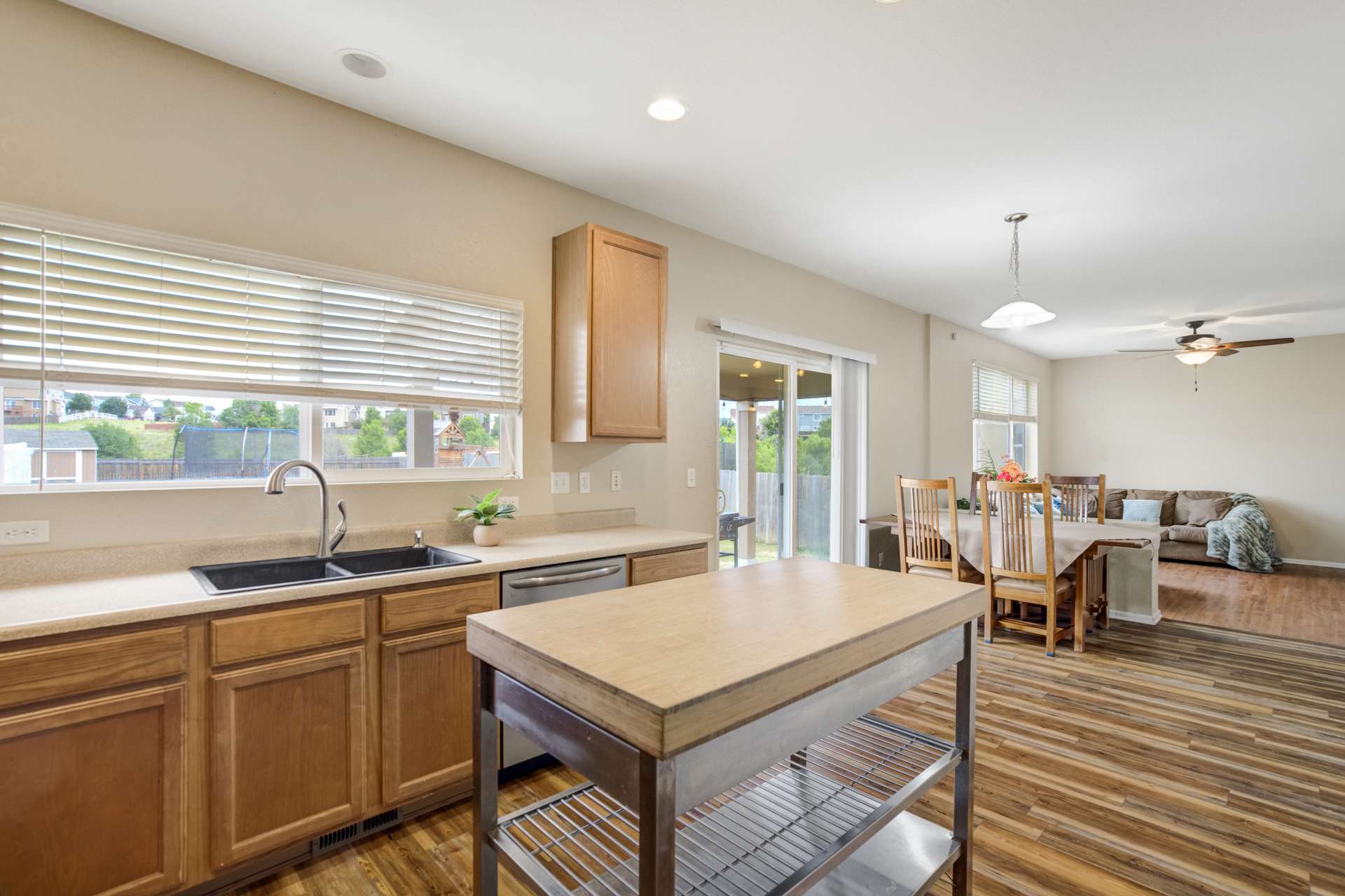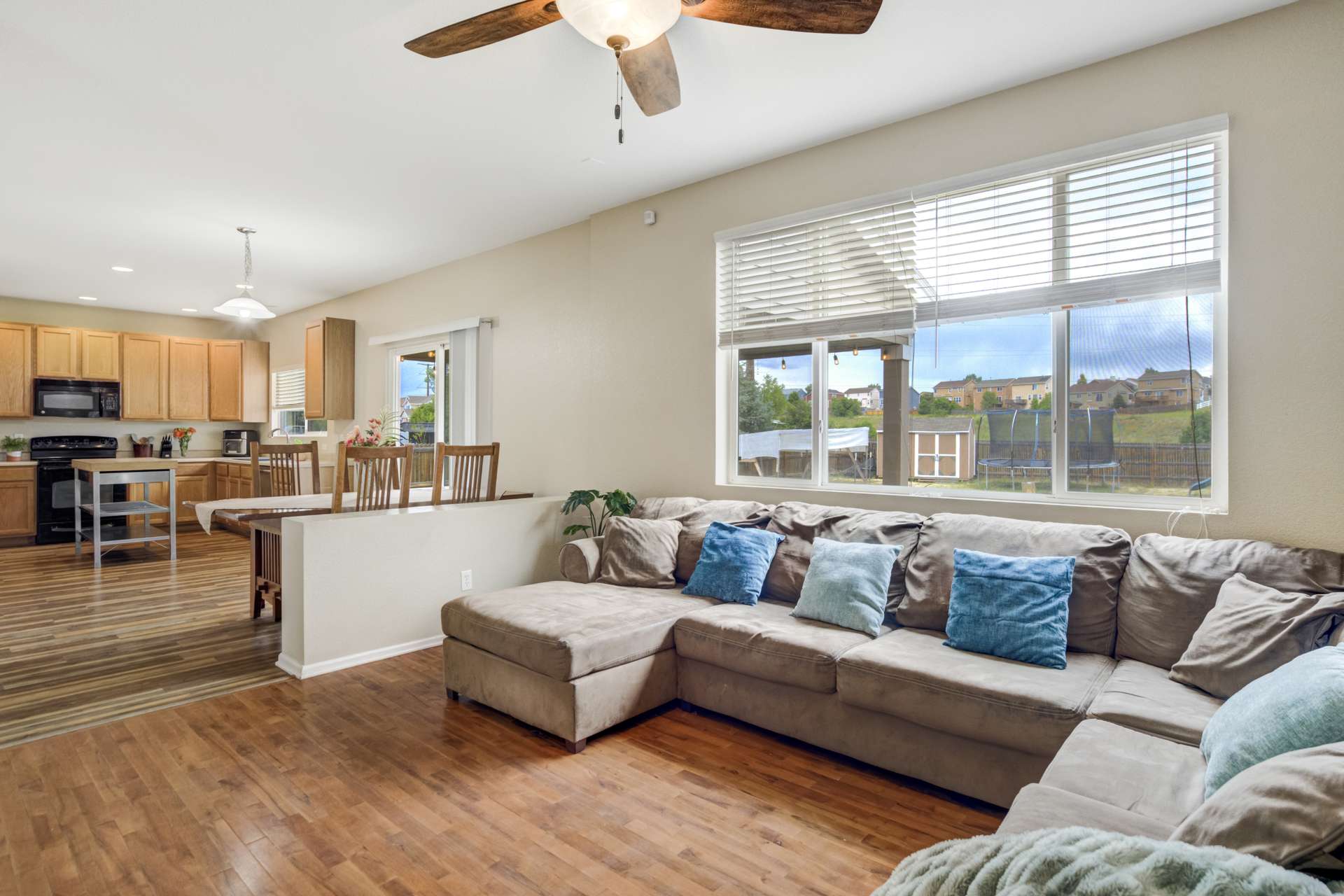 This 3 bed, 3 bath, 2 car home sits in a cul-de-sac on a large lot and is move-in-ready. Located in Claremont Ranch close to all the amenities. The main level is open and bright with 9 ft ceilings and 2 sided fireplace between the formal living and family rooms. The formal living room boasts 2 story ceilings with a large picture window that floods the space with tons of natural light. The family room is open to the dining and kitchen. The dining space walks out to the large covered back patio and fully fenced back yard. Upstairs features a large loft that overlooks the main level living room. The main level also features a 1/2 bath and laundry. The upstairs primary suite has a walk-in closet and attached 4 piece bath. There are 2 additional bedrooms and a full bath upstairs. The full basement is unfinished and boasts endless possibilities.