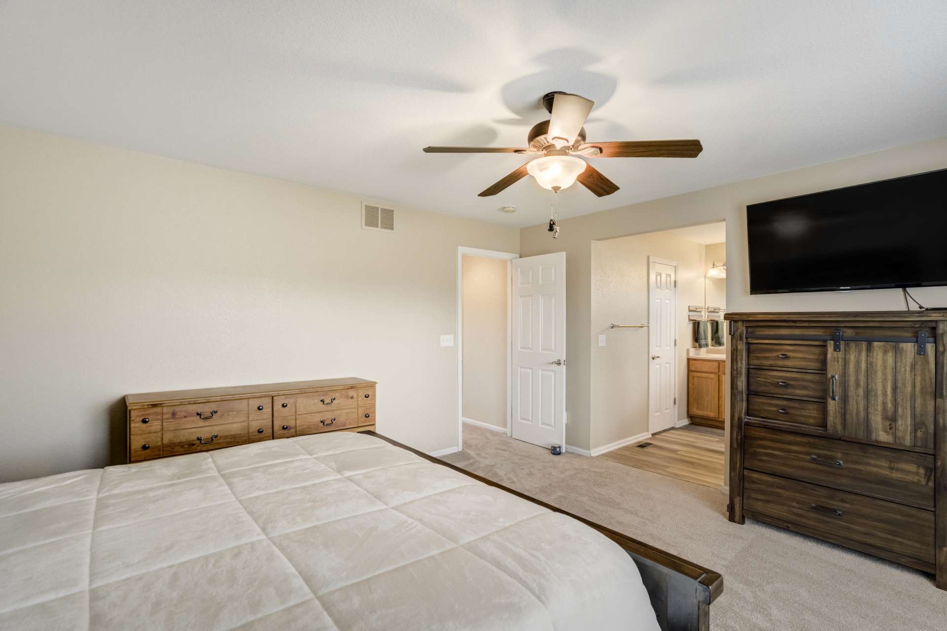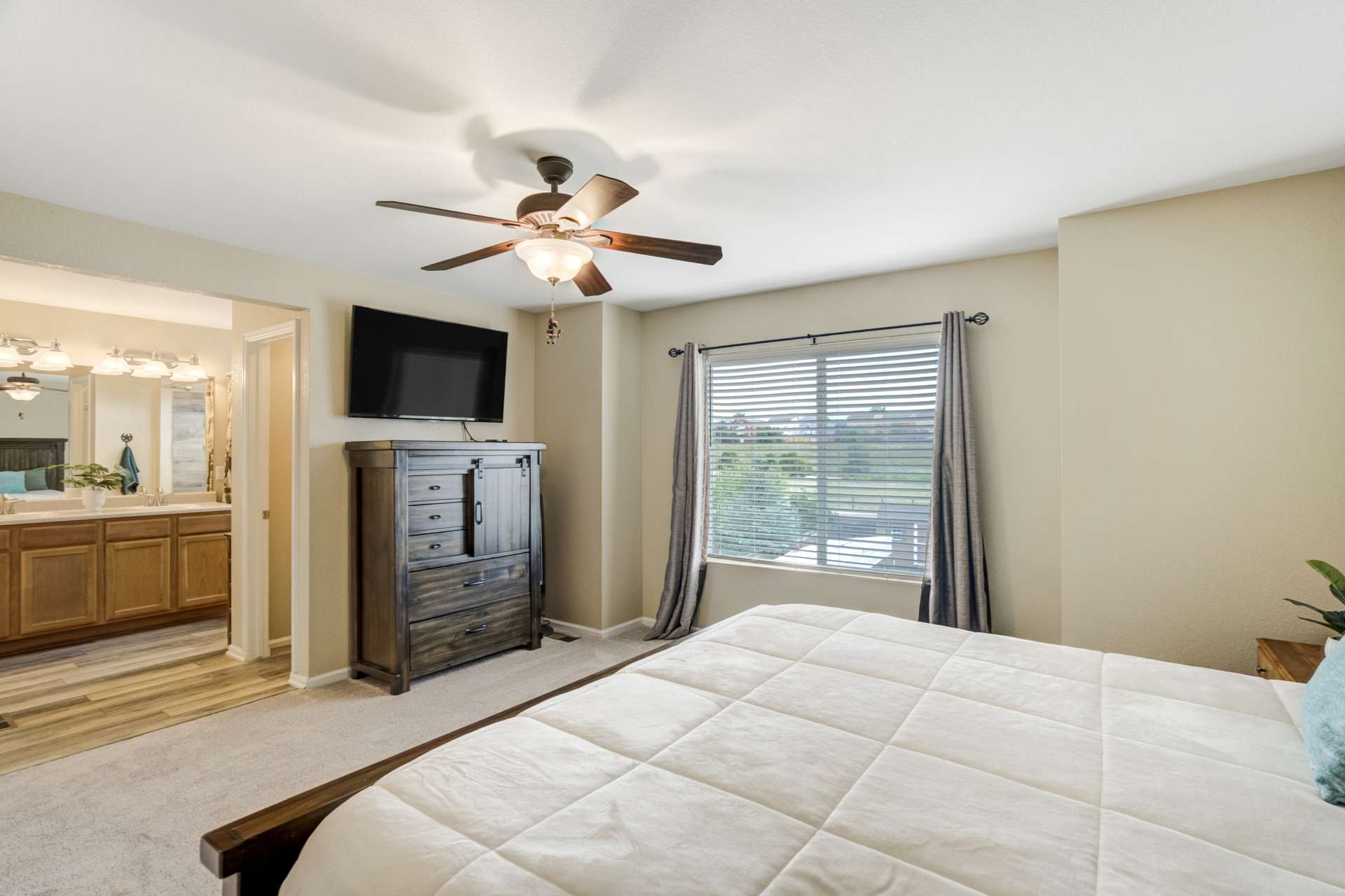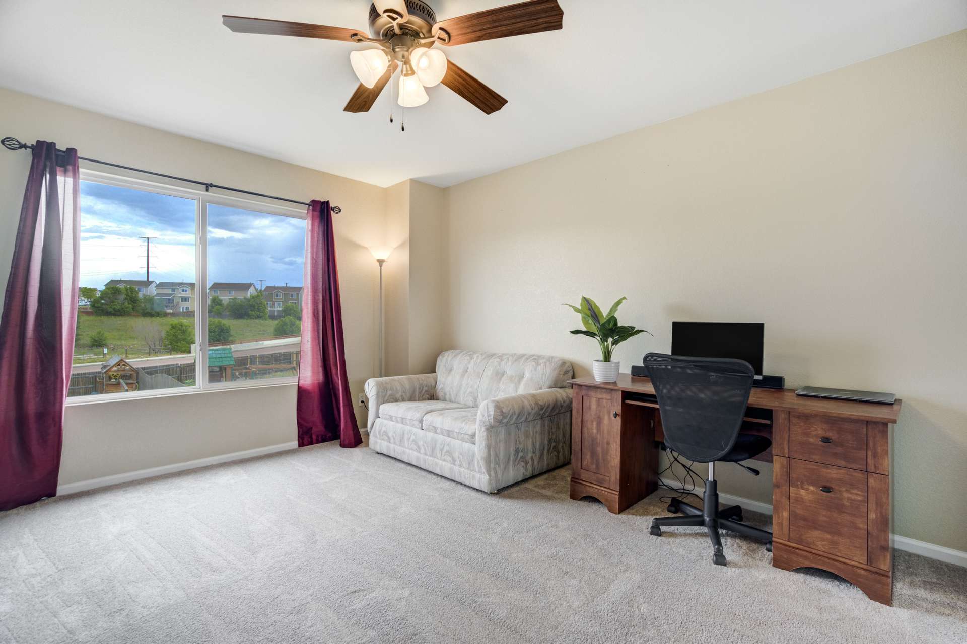 This 3 bed, 3 bath, 2 car home sits in a cul-de-sac on a large lot and is move-in-ready. Located in Claremont Ranch close to all the amenities. The main level is open and bright with 9 ft ceilings and 2 sided fireplace between the formal living and family rooms. The formal living room boasts 2 story ceilings with a large picture window that floods the space with tons of natural light. The family room is open to the dining and kitchen. The dining space walks out to the large covered back patio and fully fenced back yard. Upstairs features a large loft that overlooks the main level living room. The main level also features a 1/2 bath and laundry. The upstairs primary suite has a walk-in closet and attached 4 piece bath. There are 2 additional bedrooms and a full bath upstairs. The full basement is unfinished and boasts endless possibilities.