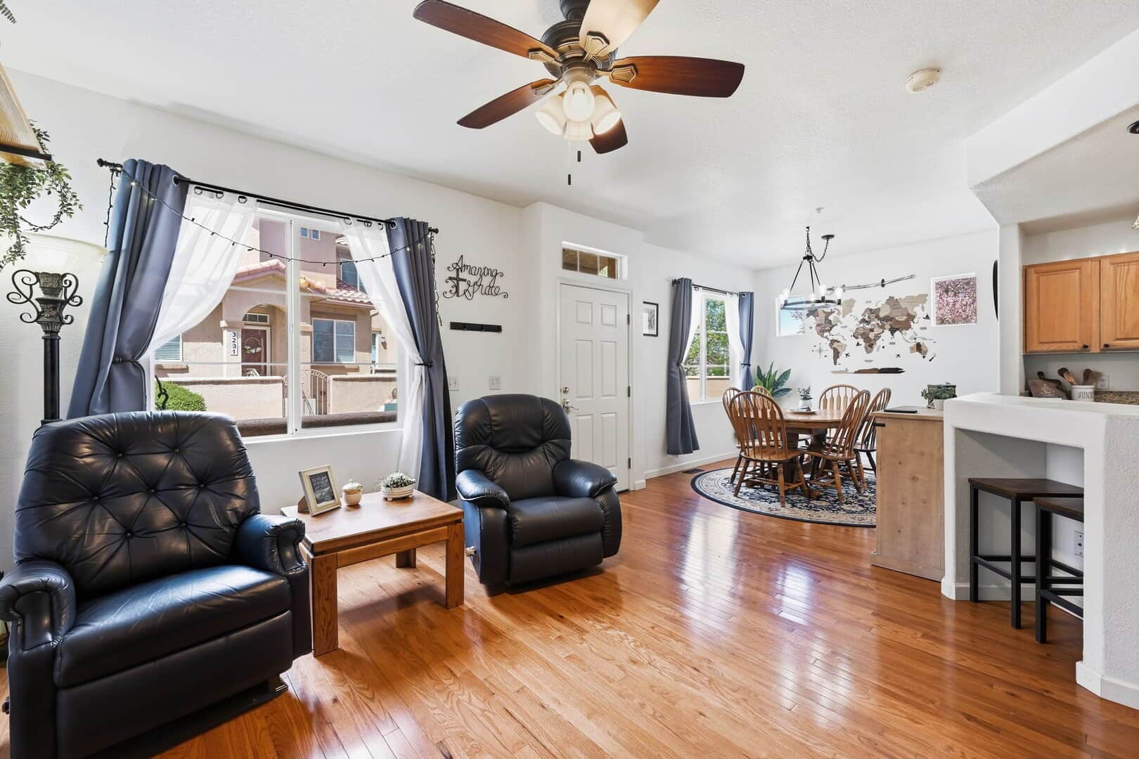 Welcome to this immaculate, updated, and spacious 3-bedroom, 3-bathroom townhome nestled in the highly desirable Quail Lake community. Offering a rare three-bedroom layout—one of the few in the neighborhood—this home combines comfort, style, and convenience in an unbeatable location. Step inside to find hardwood flooring throughout the main level, complemented by a cozy gas fireplace that creates the perfect setting for relaxing or entertaining. The kitchen is both functional and inviting, featuring granite countertops and newer appliances to include a brand-new LG refrigerator, making it move-in ready from day one. Upstairs, retreat to your spa-inspired primary suite, thoughtfully designed with a soaking tub, spa-style shower, and beautifully updated finishes that create a true at-home retreat. Additional updates include newer carpet, enhancing the home’s fresh and well-maintained feel, a newer water heater, and washer & dryer. Enjoy your mornings on the private gated front patio, ideal for coffee or quiet relaxation. The home also includes an attached 2-car garage, plus the added benefit of ample guest parking conveniently located throughout the community—perfect for hosting friends and family. Perfectly situated, you’re just a short stroll along the scenic nature trail to Quail Lake, or minutes away from entertainment at the Broadmoor World Arena and major shopping. This location offers the best of outdoor living and city convenience. Don’t miss this rare opportunity to own a beautifully updated townhome in one of the area’s most sought-after communities.