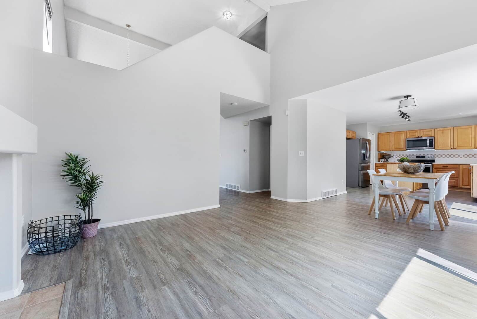 Welcome to this beautifully updated 4-bedroom, 4-bath home with 2,652 sq. ft. of living space, designed for both comfort and function. From the moment you step inside, the vaulted ceilings in the living room create a sense of grandeur that’s filled with natural light. Beautiful and durable LVP flooring flows throughout the main level and continues up the staircase. The open kitchen blends style and practicality with a butcher block island, stainless steel appliances, pantry, and updated light fixtures with under cabinet lighting. Effortlessly entertain guests as the dining area flows seamlessly into the large family room, centered around a gas fireplace offering a warm and inviting gathering space. Extend those parties to the backyard through a sliding door onto the massive patio, making indoor-outdoor living and entertaining a breeze. A storage shed adds utility for hobbies or extra gear. Upstairs, the laundry is conveniently located near the bedrooms. A Jack-and-Jill bathroom connects the two guest rooms while the private primary suite offers its own retreat with vaulted ceilings, double sink vanity and large soaking tub/shower combo. Downstairs, the finished basement expands your options with the 4th bedroom and full guest bath. The second family room is complete with an entertainment bar with a full-size refrigerator, ideal for movie nights, game days, or extra hangout space. Recent updates include 2023 furnace and AC with a roof that’s only 5 years old, to provide peace of mind. This move-in ready property offers multiple living areas, thoughtful updates, and a layout that adapts easily to daily life and special occasions alike. Schedule your showing and come see how easily this home fits your lifestyle with shopping, schools and military bases just moments away.