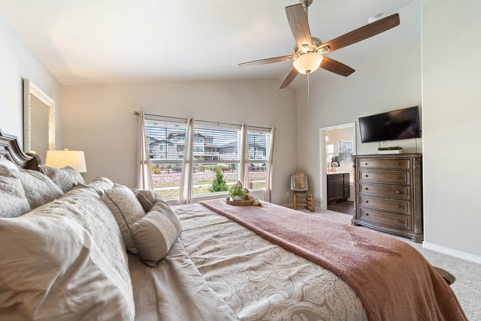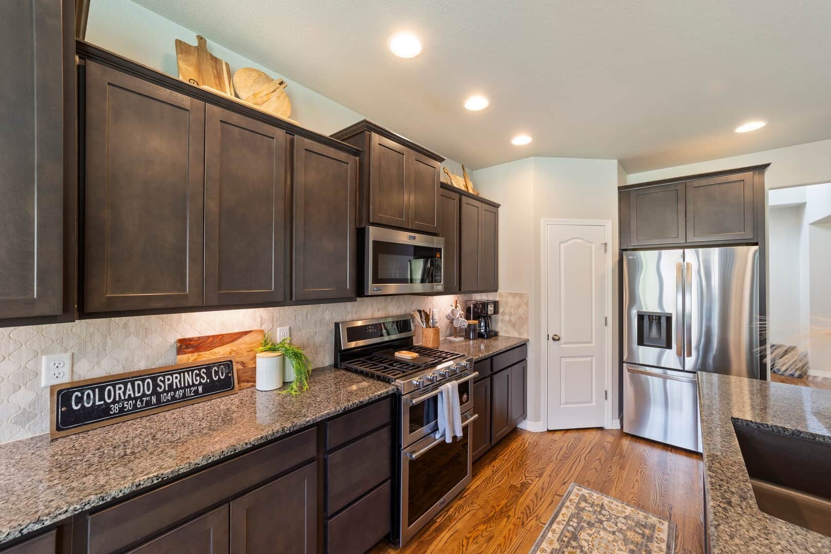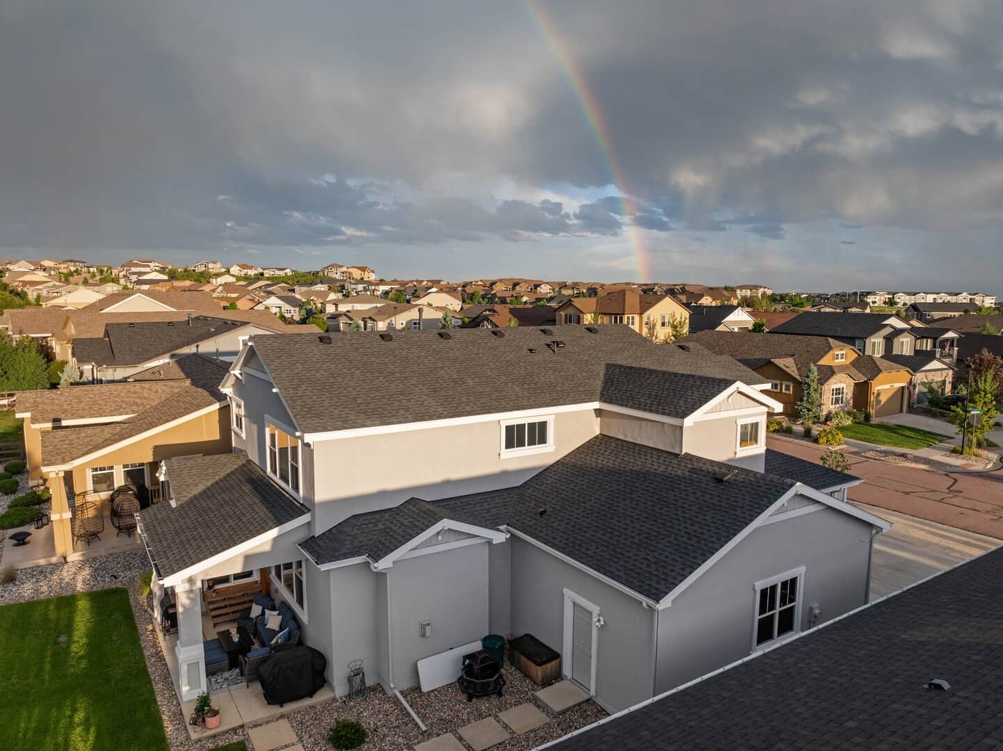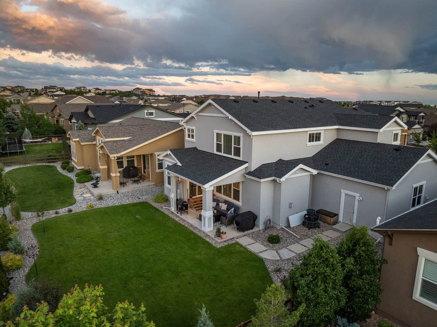 From the moment you arrive, this stunning Cordera home captures what we all love about life on the Front Range: space, light, and jaw-dropping views of Pikes Peak that greet you from every west-facing window. Step inside and discover a beautifully designed living space and elegant touches throughout. At the front of the home, a dedicated main-level office provides a dream work-from-home setup—with picturesque mountain views right from your desk. It’s hard to imagine a more inspiring space. The kitchen is sure to impress with rich, extended cabinetry, sleek granite countertops, & stainless steel appliances with a dual oven gas range. The adjacent formal dining room sets the stage for holidays and celebrations while the eat in dining space flows seamlessly to the great room to create conversation & connection around the stately fireplace with wooden mantel. Upstairs, The primary suite is a sanctuary, featuring a soaker tub, walk-in shower, 2 separate vanities, & walk-in closet. Brand new carpet adds comfort to the entire upper level. Down the hall experience 2 additional bedrooms each with stunning views, a large laundry room & a full guest bath. The spacious loft leads to a private balcony that might just become your favorite place in the house. Uninterrupted 180-degree views of the Front Range and Pikes Peak stretch out before you—perfect for morning coffee, evening sunsets, or simply a breath of fresh mountain air. Downstairs, a massive rec room offers all the space for games, movies, & expansion—already pre-plumbed for a wet bar. Well equipped with ample storage & complete with an additional bedroom & guest bath. Outside, a covered patio backs to a scenic walking trail & offers beautiful landscaping. Bring all your toys and oversized trucks! The rare 4-car garage gives you all the space you need! Whether you’re working, hosting, relaxing, or just gazing westward—this home delivers the Colorado lifestyle in every direction.