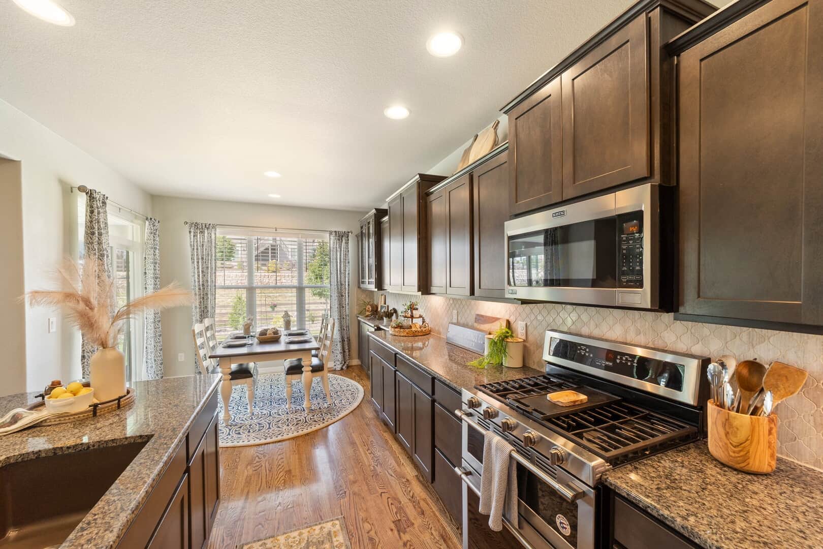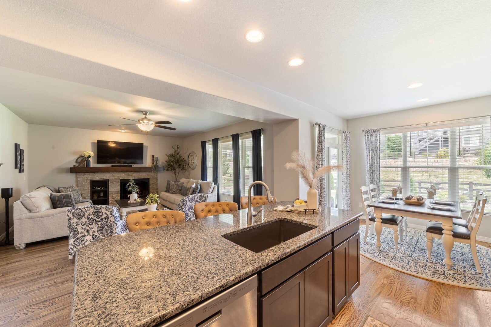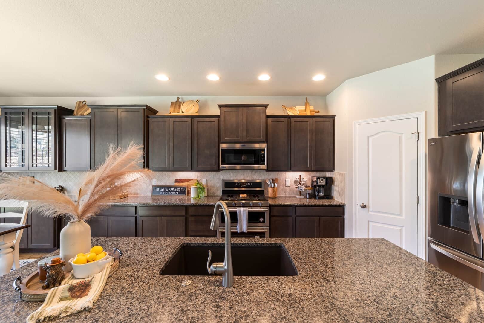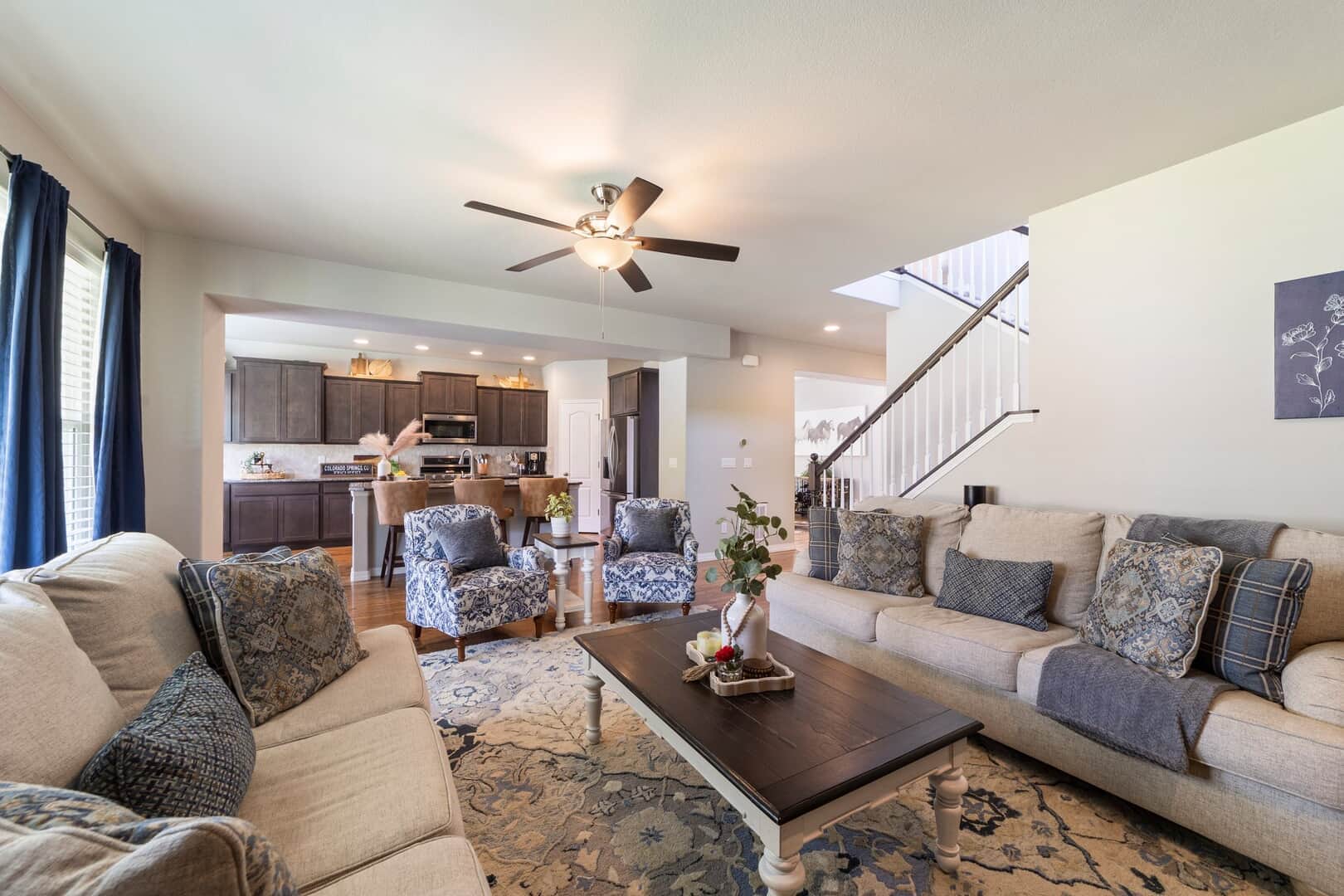 From the moment you arrive, this stunning Cordera home captures what we all love about life on the Front Range: space, light, and jaw-dropping views of Pikes Peak that greet you from every west-facing window. Step inside and discover a beautifully designed living space and elegant touches throughout. At the front of the home, a dedicated main-level office provides a dream work-from-home setup—with picturesque mountain views right from your desk. It’s hard to imagine a more inspiring space. The kitchen is sure to impress with rich, extended cabinetry, sleek granite countertops, & stainless steel appliances with a dual oven gas range. The adjacent formal dining room sets the stage for holidays and celebrations while the eat in dining space flows seamlessly to the great room to create conversation & connection around the stately fireplace with wooden mantel. Upstairs, The primary suite is a sanctuary, featuring a soaker tub, walk-in shower, 2 separate vanities, & walk-in closet. Brand new carpet adds comfort to the entire upper level. Down the hall experience 2 additional bedrooms each with stunning views, a large laundry room & a full guest bath. The spacious loft leads to a private balcony that might just become your favorite place in the house. Uninterrupted 180-degree views of the Front Range and Pikes Peak stretch out before you—perfect for morning coffee, evening sunsets, or simply a breath of fresh mountain air. Downstairs, a massive rec room offers all the space for games, movies, & expansion—already pre-plumbed for a wet bar. Well equipped with ample storage & complete with an additional bedroom & guest bath. Outside, a covered patio backs to a scenic walking trail & offers beautiful landscaping. Bring all your toys and oversized trucks! The rare 4-car garage gives you all the space you need! Whether you’re working, hosting, relaxing, or just gazing westward—this home delivers the Colorado lifestyle in every direction.