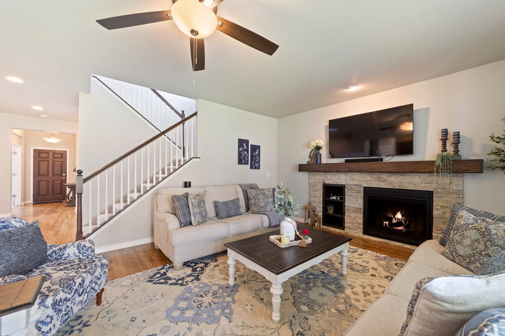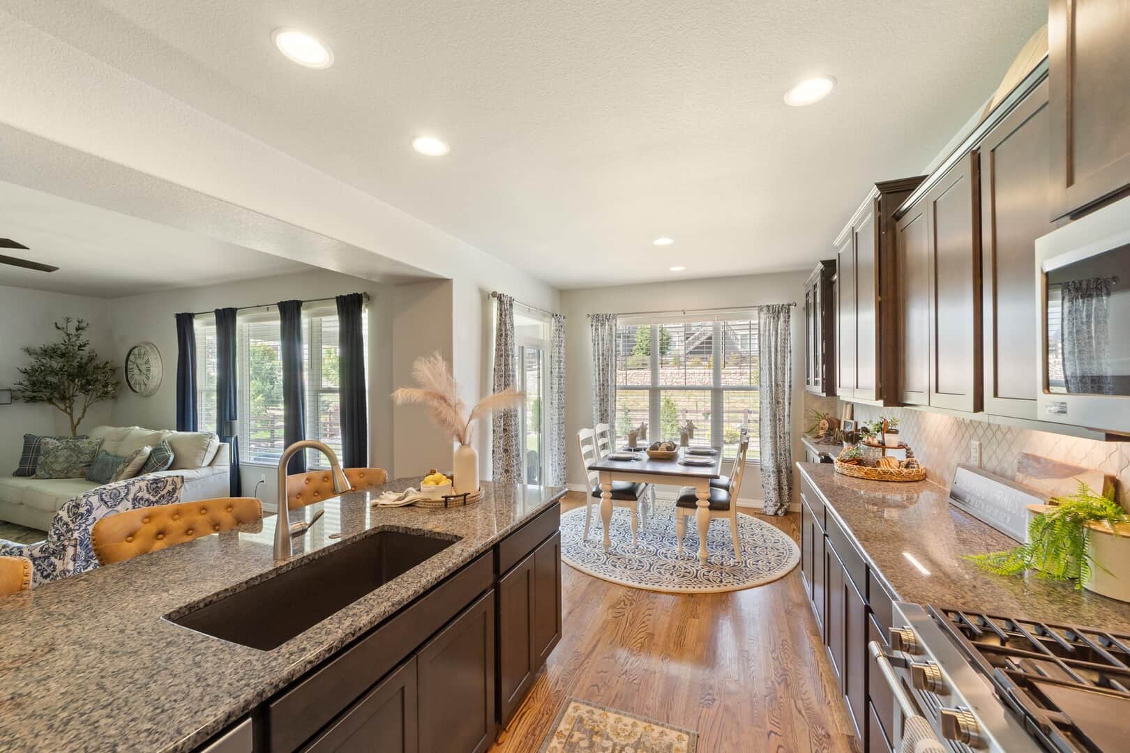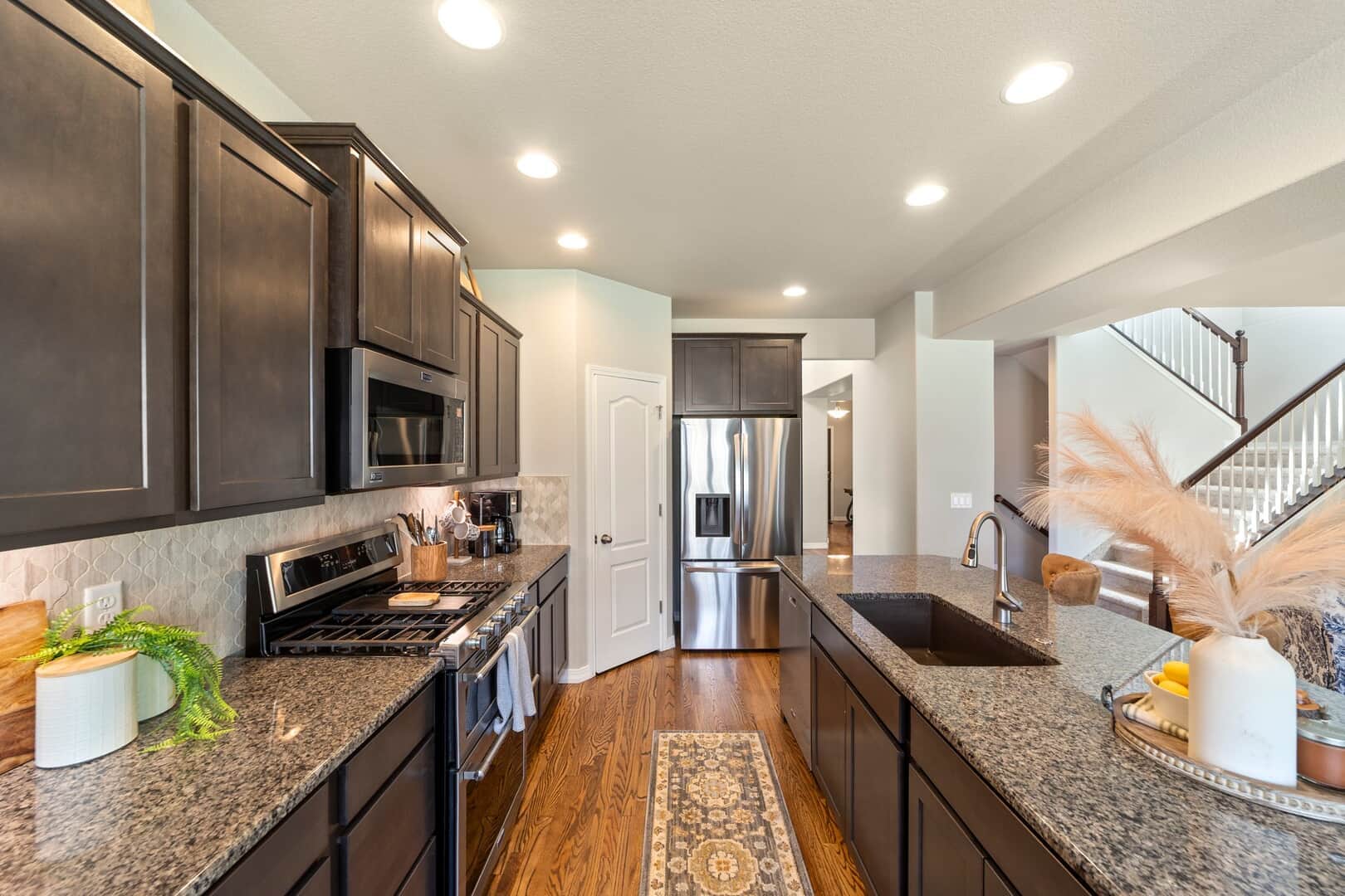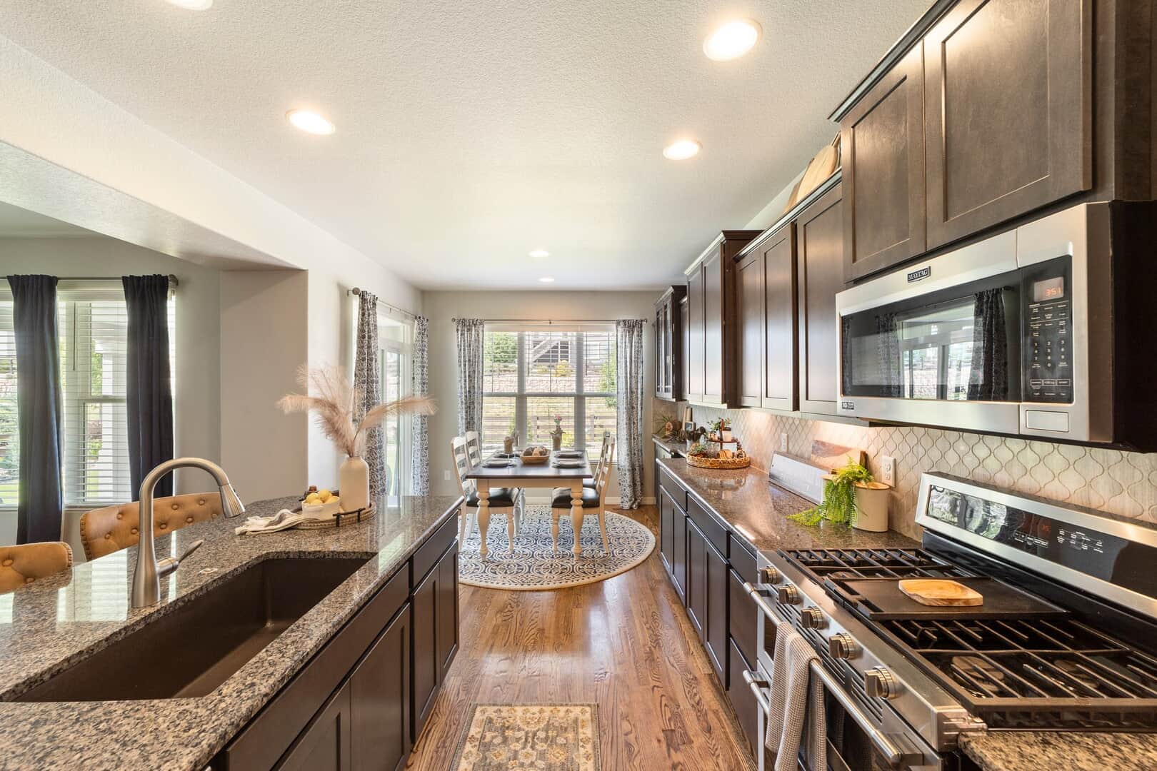 From the moment you arrive, this stunning Cordera home captures what we all love about life on the Front Range: space, light, and jaw-dropping views of Pikes Peak that greet you from every west-facing window. Step inside and discover a beautifully designed living space and elegant touches throughout. At the front of the home, a dedicated main-level office provides a dream work-from-home setup—with picturesque mountain views right from your desk. It’s hard to imagine a more inspiring space. The kitchen is sure to impress with rich, extended cabinetry, sleek granite countertops, & stainless steel appliances with a dual oven gas range. The adjacent formal dining room sets the stage for holidays and celebrations while the eat in dining space flows seamlessly to the great room to create conversation & connection around the stately fireplace with wooden mantel. Upstairs, The primary suite is a sanctuary, featuring a soaker tub, walk-in shower, 2 separate vanities, & walk-in closet. Brand new carpet adds comfort to the entire upper level. Down the hall experience 2 additional bedrooms each with stunning views, a large laundry room & a full guest bath. The spacious loft leads to a private balcony that might just become your favorite place in the house. Uninterrupted 180-degree views of the Front Range and Pikes Peak stretch out before you—perfect for morning coffee, evening sunsets, or simply a breath of fresh mountain air. Downstairs, a massive rec room offers all the space for games, movies, & expansion—already pre-plumbed for a wet bar. Well equipped with ample storage & complete with an additional bedroom & guest bath. Outside, a covered patio backs to a scenic walking trail & offers beautiful landscaping. Bring all your toys and oversized trucks! The rare 4-car garage gives you all the space you need! Whether you’re working, hosting, relaxing, or just gazing westward—this home delivers the Colorado lifestyle in every direction.