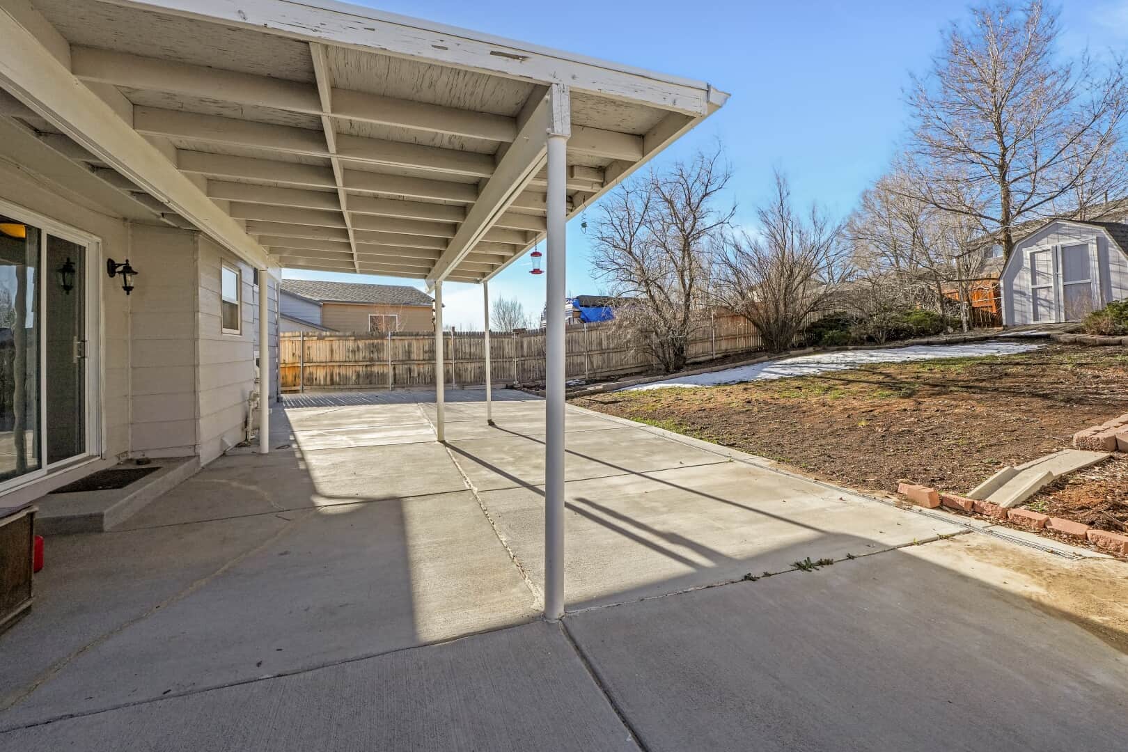 Welcome to this charming 3-bedroom, 2-bath home offering 1,290 square feet of comfortable living space in a quiet, established neighborhood.The home features updated siding and energy-efficient windows, creating inviting curb appeal along with a spacious driveway for convenient parking. Inside, the home blends modern updates with a warm, comfortable feel. A mix of luxury vinyl flooring and plush carpet runs throughout the bright, functional layout. The living area flows naturally into the dining space, creating an ideal setting for everyday living or hosted gatherings. The kitchen is a true highlight, featuring striking Brazilian Blue Flower granite countertops, stainless steel appliances, and ample cabinetry. The deep blue tones and natural patterns of the granite create a unique focal point, while abundant natural light fills the space and enhances the home’s clean, modern design. Step outside to a fully fenced backyard designed for both relaxation and play. Perfect for pets, children, or enjoying quiet summer evenings. Mature trees surround the yard, creating a natural sense of privacy and a peaceful outdoor retreat. Conveniently located near Fort Carson, residents will also enjoy close proximity to shopping, dining, and retail centers throughout Colorado Springs. Clean, updated, and move-in ready, this home offers the perfect blend of comfort, style, and location. Schedule your showing today!