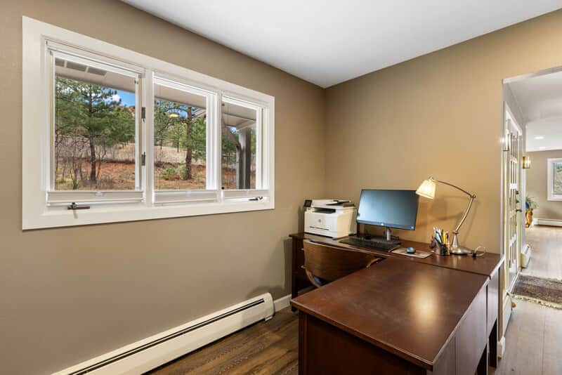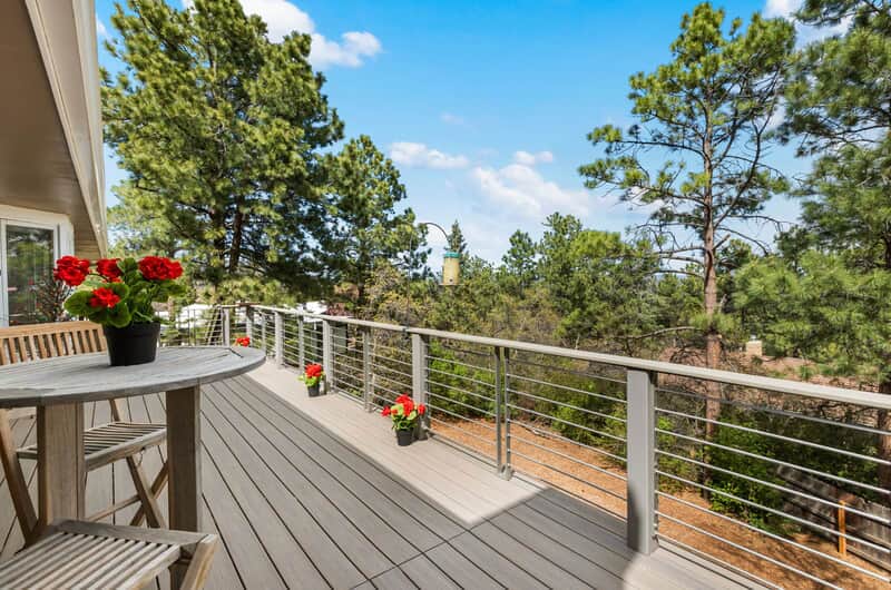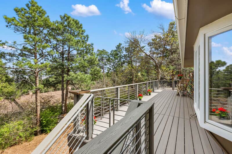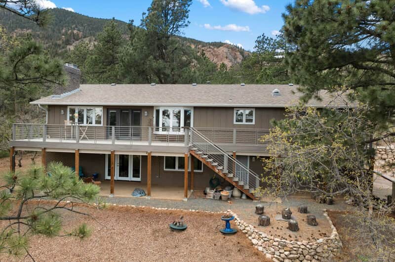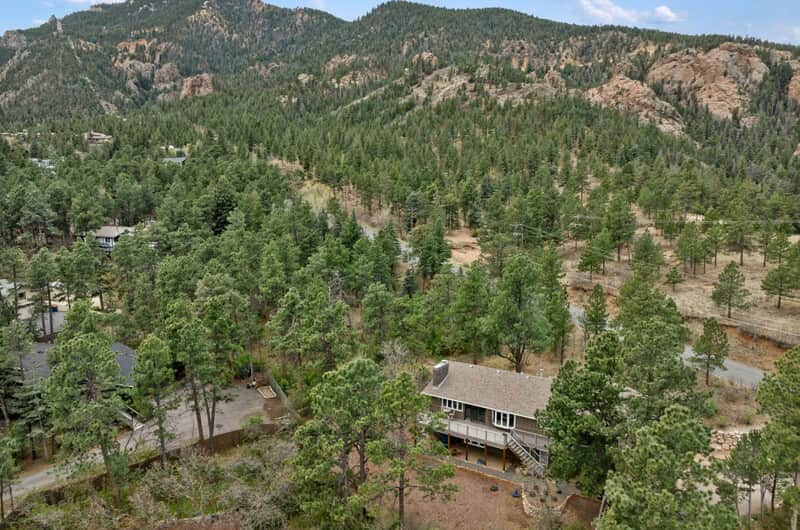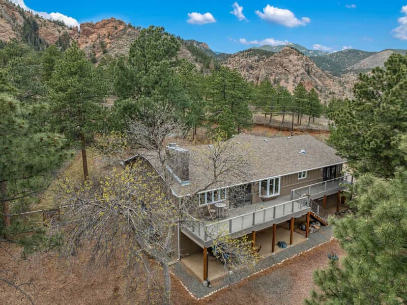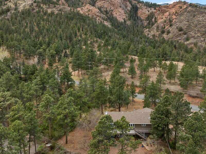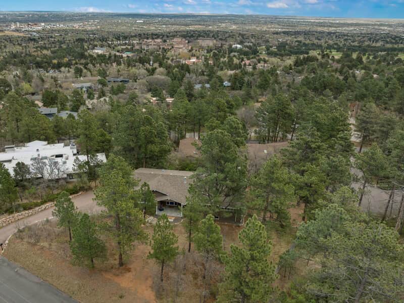 Experience refined Colorado living in this stunning Broadmoor Heights home, perfectly positioned at the base of Cheyenne Mountain and directly across from North Cheyenne Cañon Park with abundant maintained hiking trails. This beautifully maintained, fully remodeled, 4-bedroom, 4-bathroom home offers spacious, elegantly proportioned living areas filled with natural light. Large picture windows frame stunning vistas, multiple French doors open to a serene treetop TREX deck- perfect for morning coffee, evening sunsets, local fire works or entertaining under the stars. The updated kitchen showcases custom cabinetry w/ soft closing hinges, custom backsplash, SS appliances, gas stove, large island, Quartz countertops, any chefs dream. All bathrooms have been tastefully renovated with contemporary tiles, cabinets and top of the line countertops. Two brick fireplaces, and hot water heat add warmth and character throughout. This home features upgraded blown-in attic insulation, AC on the main level, and a QuietCool whole-house fan system, offering modern comfort and efficiency. The walk-out lower level provides additional flexible living space, ideal for guests, recreation, or multi-generational living. Set on an expansive 0.46-acre lot surrounded by mature trees, the property offers a rare combination of privacy, luxury, and unmatched access to nature… all complemented by breathtaking mountain and twinkling city-light views. Outdoor enthusiasts will appreciate immediate access to hiking trails, waterfalls, and wildlife just steps from the front door. An oversized drive-under 3-car garage provides ample storage for vehicles and outdoor gear. With the soothing sounds of the nearby Shrine of the Sun, incredible privacy, and timeless mountain elegance. A short walk to the World Class Broadmoor Hotel, this home truly embodies Colorado living at its finest. Enjoy a short drive to the Famous Cheyenne Mountain Zoo.