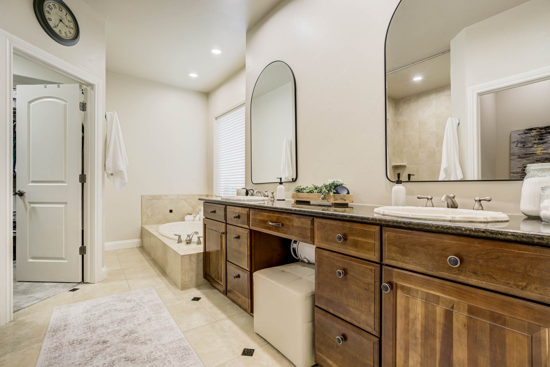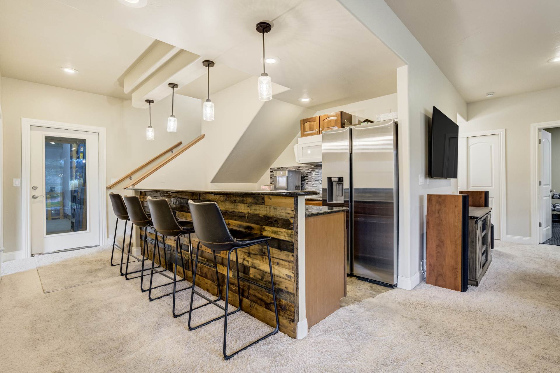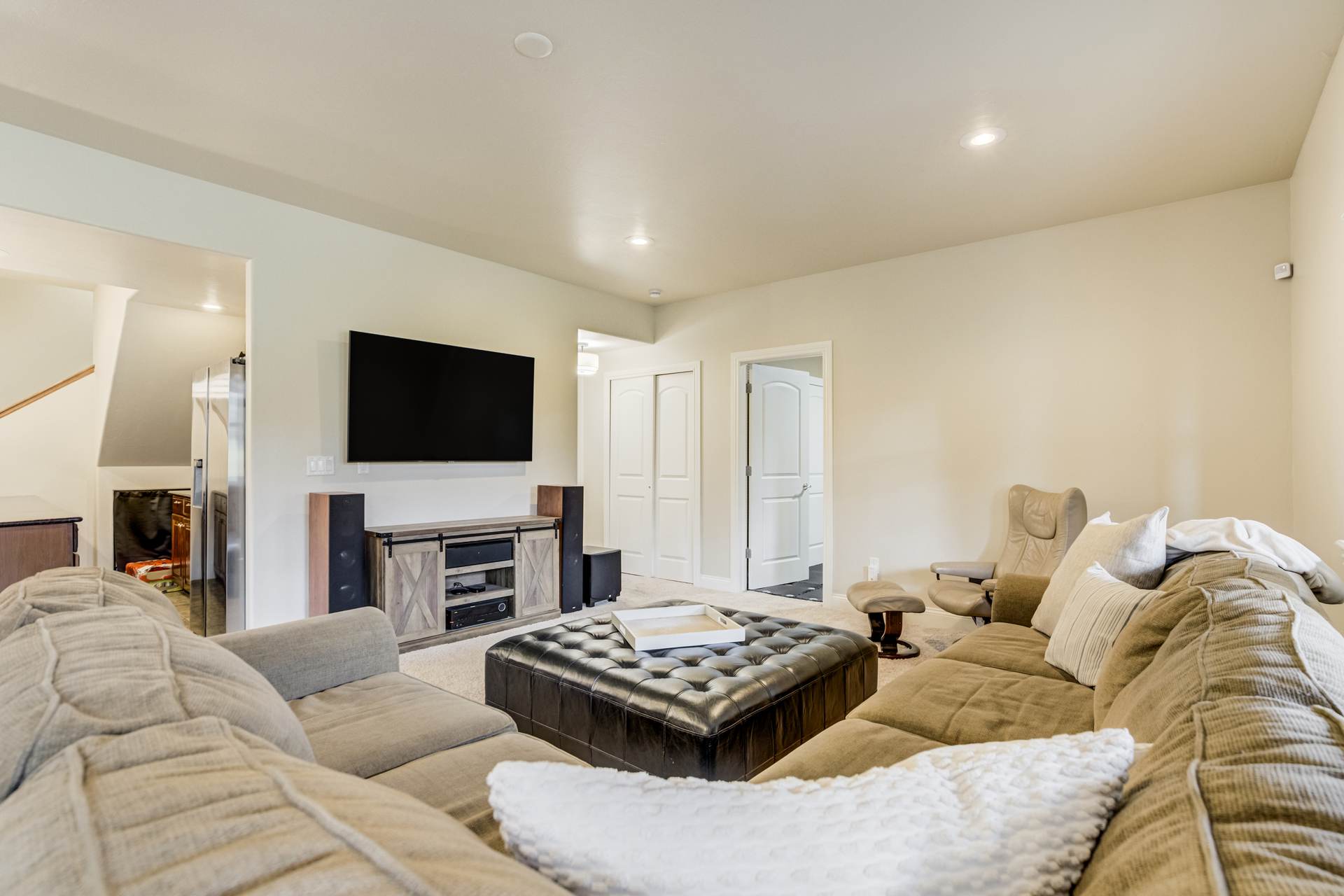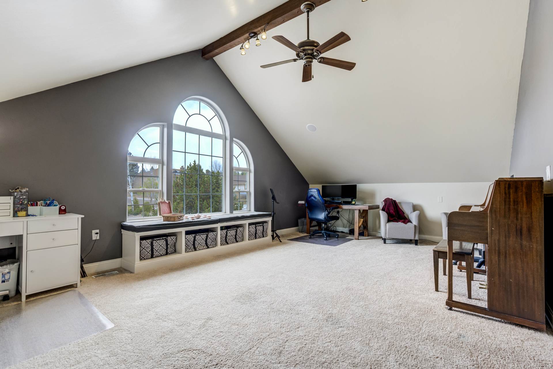 Exceptional Norwood home designed to impress—space, upgrades, and lifestyle all in one. The main-level primary suite delivers a true retreat with a jetted soaking tub, oversized dual-head shower, and spa-like comfort. The fully upgraded kitchen features premium KitchenAid appliances, quartz countertops, and seamless flow to a massive 900 sq ft maintenance-free Trex deck—ideal for entertaining—overlooking a beautifully curated backyard filled with mature perennials. Upstairs offers versatility and room to grow with a large bonus living area, three bedrooms, a dedicated office (or additional bedroom), and spacious walk-in closets. The fully finished basement is built for entertaining and relaxation—complete with two additional bedrooms, a full bathroom, game room with pool table, private theater with 7.1 surround sound (including projector and 200″ screen), and a fully equipped wet bar. Walk out to a peaceful patio space. Plus, a rare bonus: a hidden 250 sq ft flex space—perfect for a secure room, collector’s storage, or private retreat. Packed with high-value efficiency upgrades: fully owned 36-panel solar system (~$300/month savings), glycol thermal water system with 150-gallon tank, and commercial-grade tri-thermostat HVAC for precision comfort. Seller to install brand-new carpet to buyer’s color preference after closing. Luxury, functionality, and standout features—homes like this move fast.