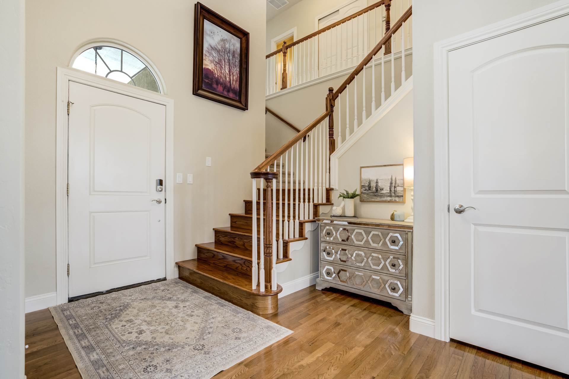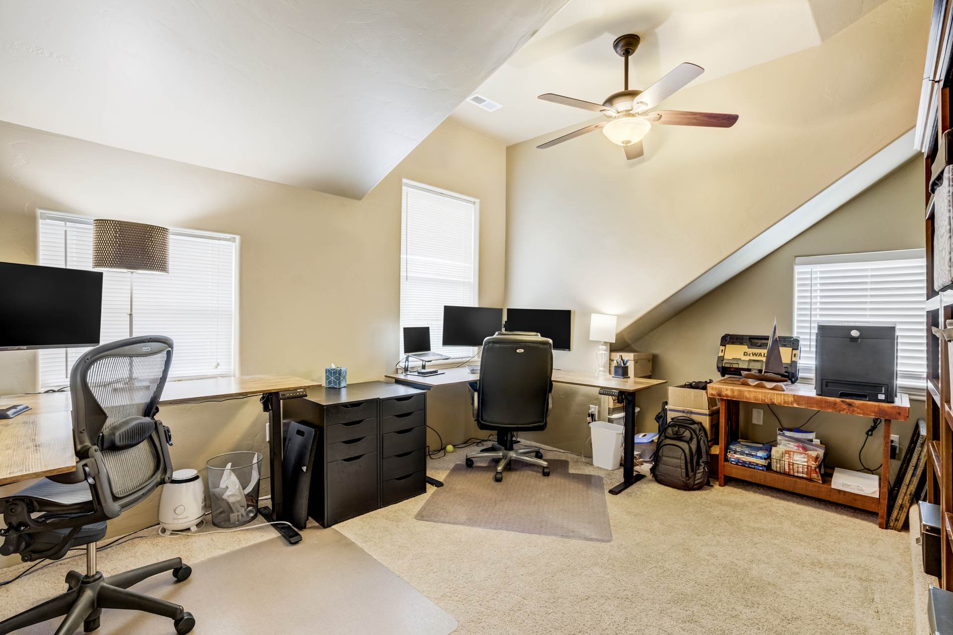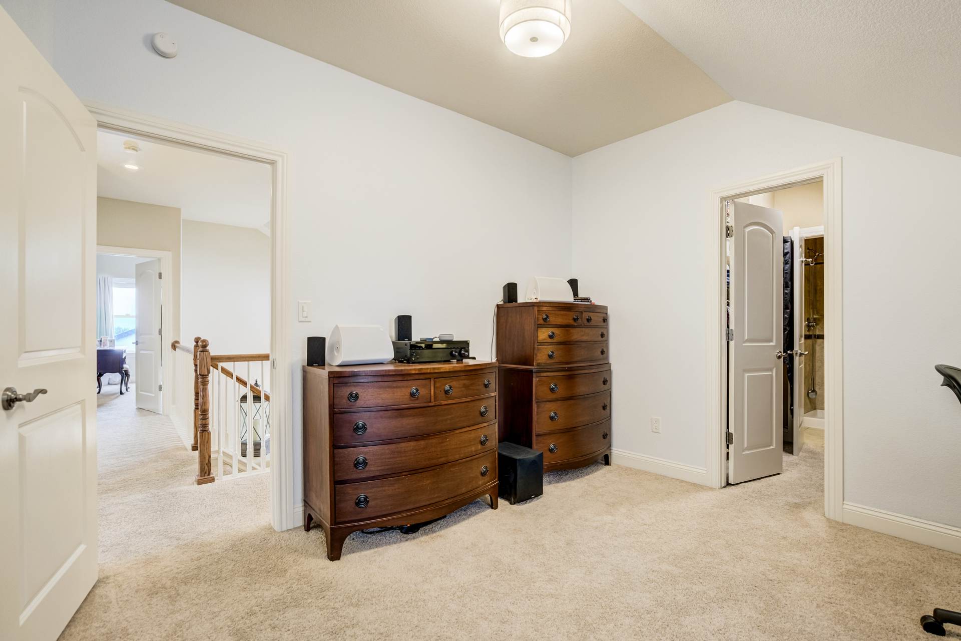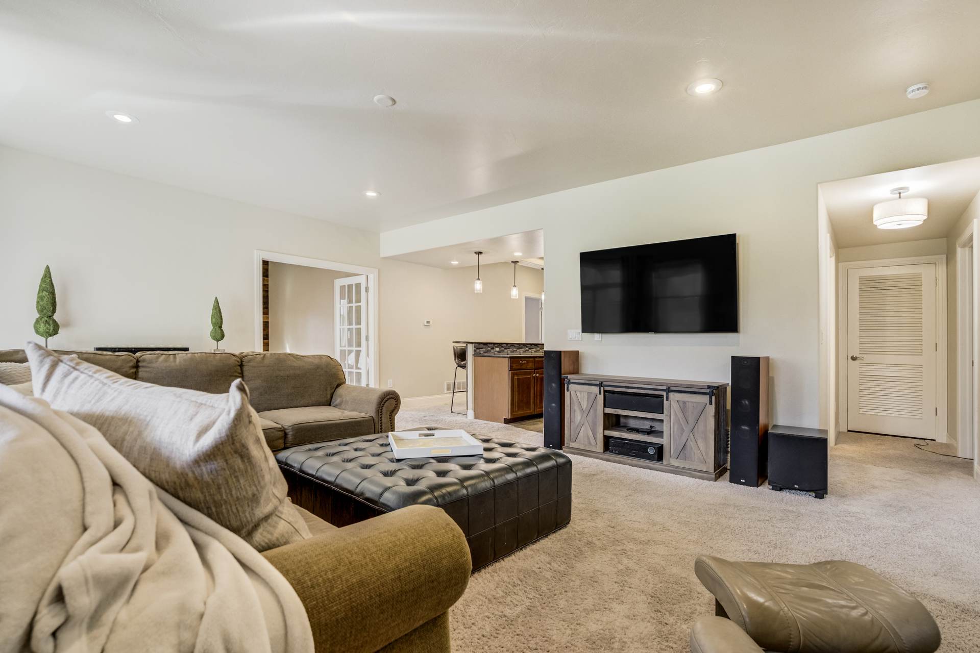 Exceptional Norwood home designed to impress—space, upgrades, and lifestyle all in one. The main-level primary suite delivers a true retreat with a jetted soaking tub, oversized dual-head shower, and spa-like comfort. The fully upgraded kitchen features premium KitchenAid appliances, quartz countertops, and seamless flow to a massive 900 sq ft maintenance-free Trex deck—ideal for entertaining—overlooking a beautifully curated backyard filled with mature perennials. Upstairs offers versatility and room to grow with a large bonus living area, three bedrooms, a dedicated office (or additional bedroom), and spacious walk-in closets. The fully finished basement is built for entertaining and relaxation—complete with two additional bedrooms, a full bathroom, game room with pool table, private theater with 7.1 surround sound (including projector and 200″ screen), and a fully equipped wet bar. Walk out to a peaceful patio space. Plus, a rare bonus: a hidden 250 sq ft flex space—perfect for a secure room, collector’s storage, or private retreat. Packed with high-value efficiency upgrades: fully owned 36-panel solar system (~$300/month savings), glycol thermal water system with 150-gallon tank, and commercial-grade tri-thermostat HVAC for precision comfort. Seller to install brand-new carpet to buyer’s color preference after closing. Luxury, functionality, and standout features—homes like this move fast.