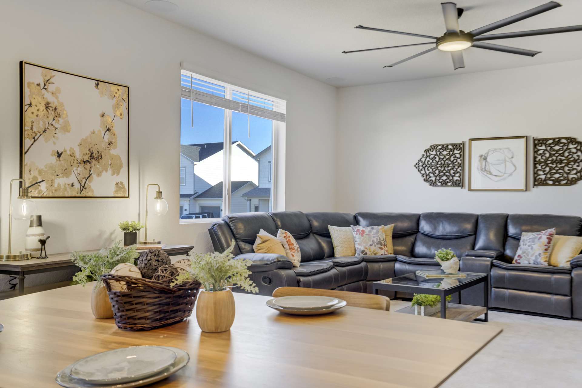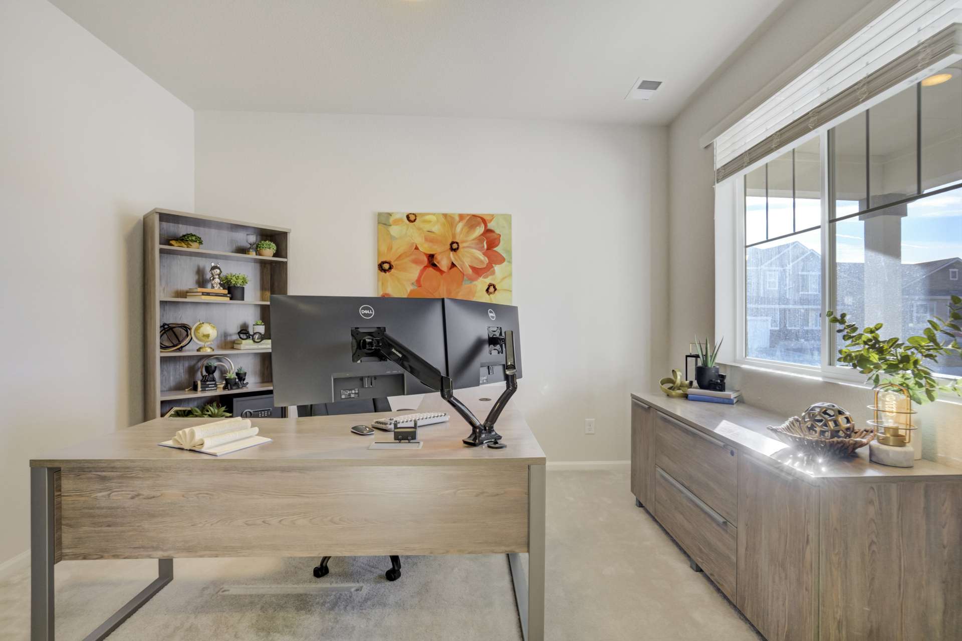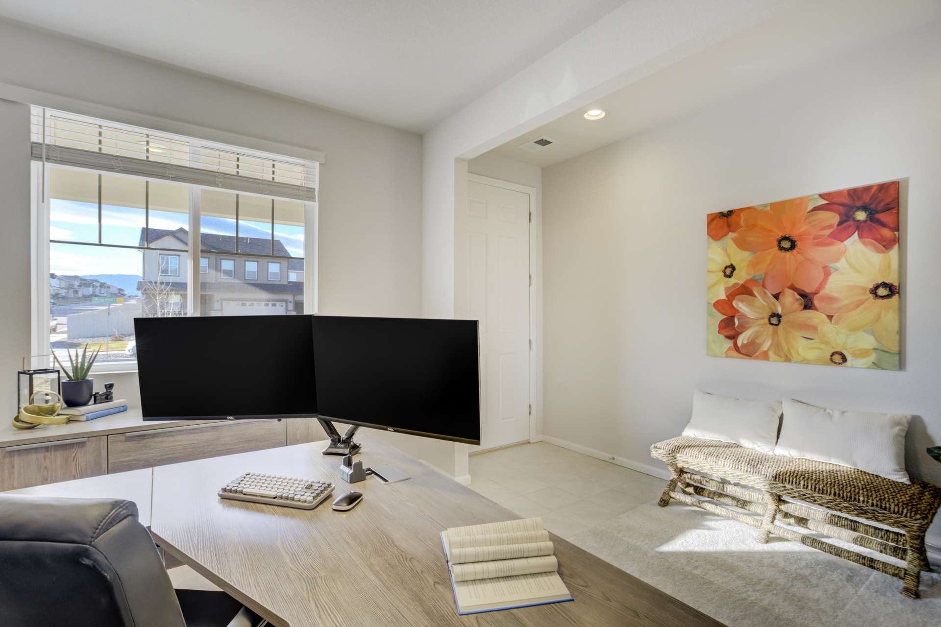 Tucked away on a quiet cul-de-sac, this like-new welcoming three-bedroom home sits on a desirable corner lot. The main level offers a dedicated study, perfect for working from home. Along with an open kitchen that flows naturally into the dining area and spacious great room, creating an easy main level space for hosting friends and family. Upstairs, all of the bedrooms are thoughtfully placed together, centered around a versatile loft that works beautifully as a second living area, media room, or play space. The three-car garage provides ample room for vehicles, gear, and storage. Thoughtful upgrades add comfort and efficiency throughout the home, including a solar system that will be paid off by the seller, surround sound, a water softener, and more. Conveniently located, this home offers both quiet living and everyday convenience. Come and visit to experience for yourself!