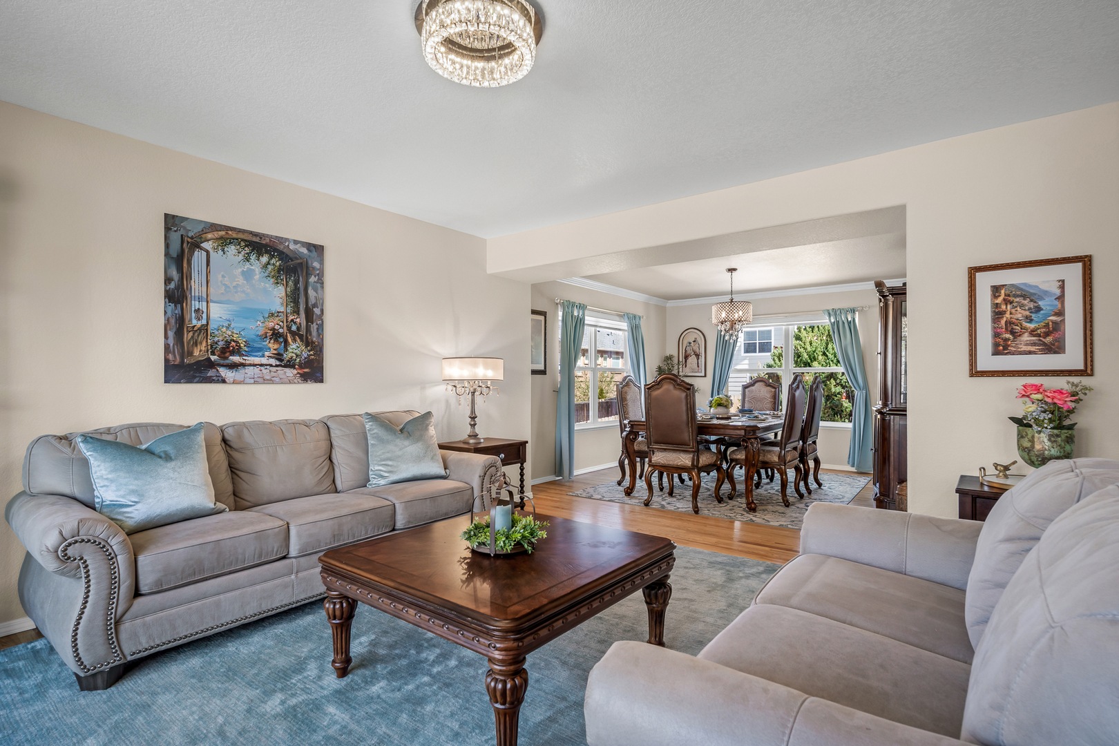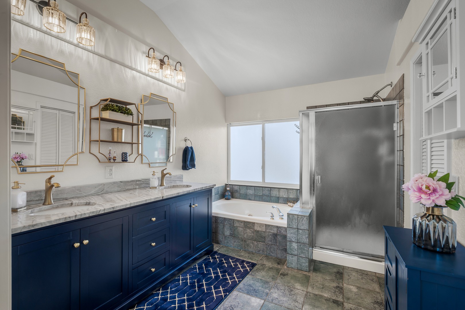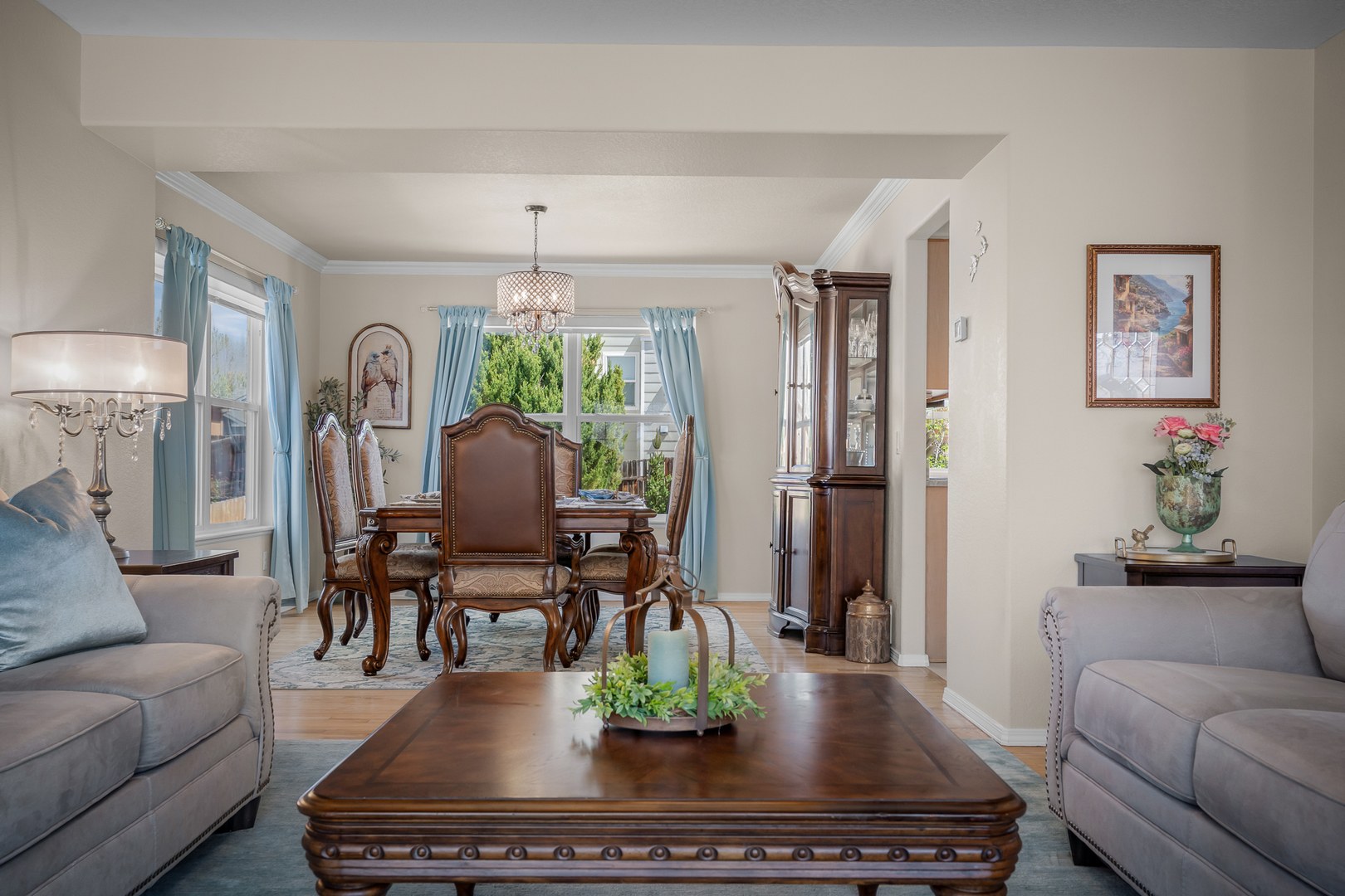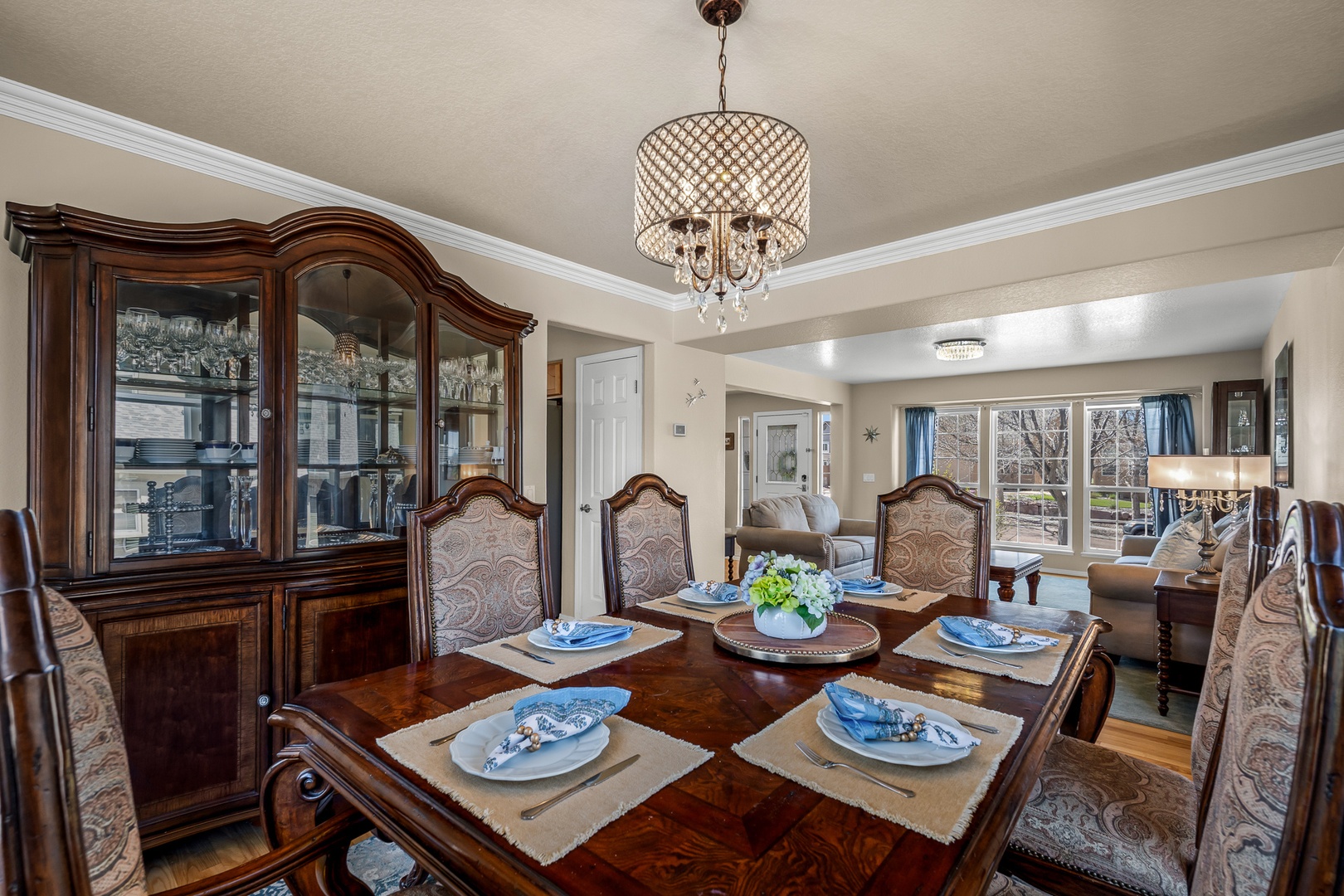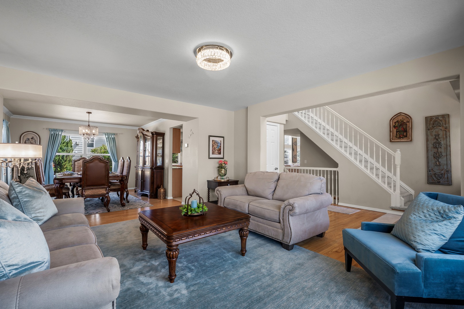 Step into this well-maintained south-facing stucco home in Indigo Ranch at Ridgeview, where mountain views welcome you from the front porch. A thoughtfully updated, spacious two-story offers a functional layout with inviting, well-connected living spaces throughout. The main level features hardwood floors, high ceilings, and updated finishes that create a clean, cohesive feel. The kitchen includes maple cabinetry, quartzite countertops, stainless steel appliances, and a pantry that flows seamlessly into the spacious great room, creating a layout that feels expansive and very functional. A wall of windows and 20-foot ceilings bring in abundant natural light, enhancing the sense of space, while built-ins and a gas fireplace with a custom mantle add comfortable everyday living. Convenient main-level powder room and laundry room. Upstairs, the vaulted primary suite includes hardwood flooring, a five-piece bath with soaking tub, dual vanities, and a walk-in closet. Two additional bedrooms and a loft-style balcony overlook into the great room, serving as a unique architectural feature and focal point. The finished basement offers 9-foot ceilings, a large recreation area, and a fourth bedroom with a walk-in closet and full bath, making it an ideal guest suite or private living space. The rear yard is private and fully fenced with mature landscaping and a large concrete patio, perfect for relaxing, enjoying summer BBQs, and hosting gatherings. Additional features include an oversized 3-car garage, central air, plantation shutters, updated lighting, a new roof installed in 2024, a radon mitigation system, some fresh interior paint, exterior repainted, and a newer kitchen floor. Located near parks, trails, schools, and shopping along the Powers Corridor with convenient access to Peterson and Schriever Space Force Bases. This home checks all the boxes with space, updates, and location—schedule your showing and see why this one stands out the moment you walk in! .