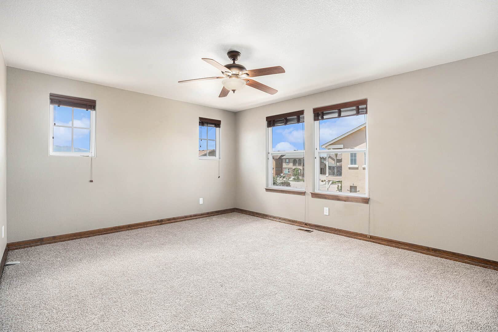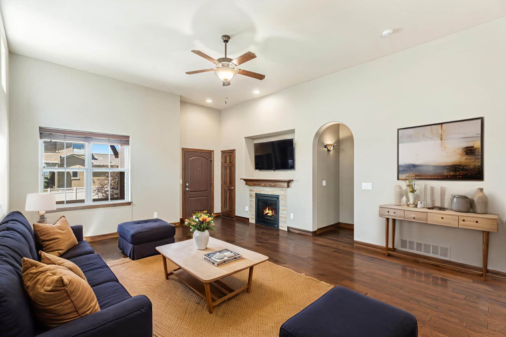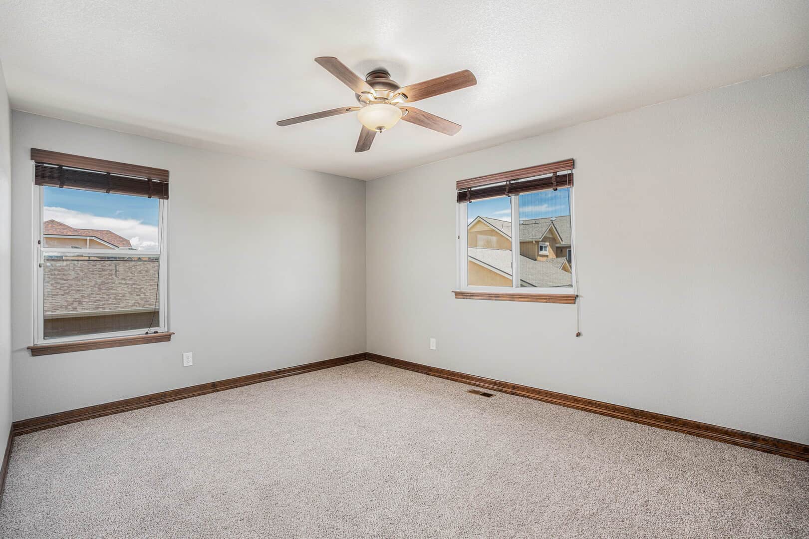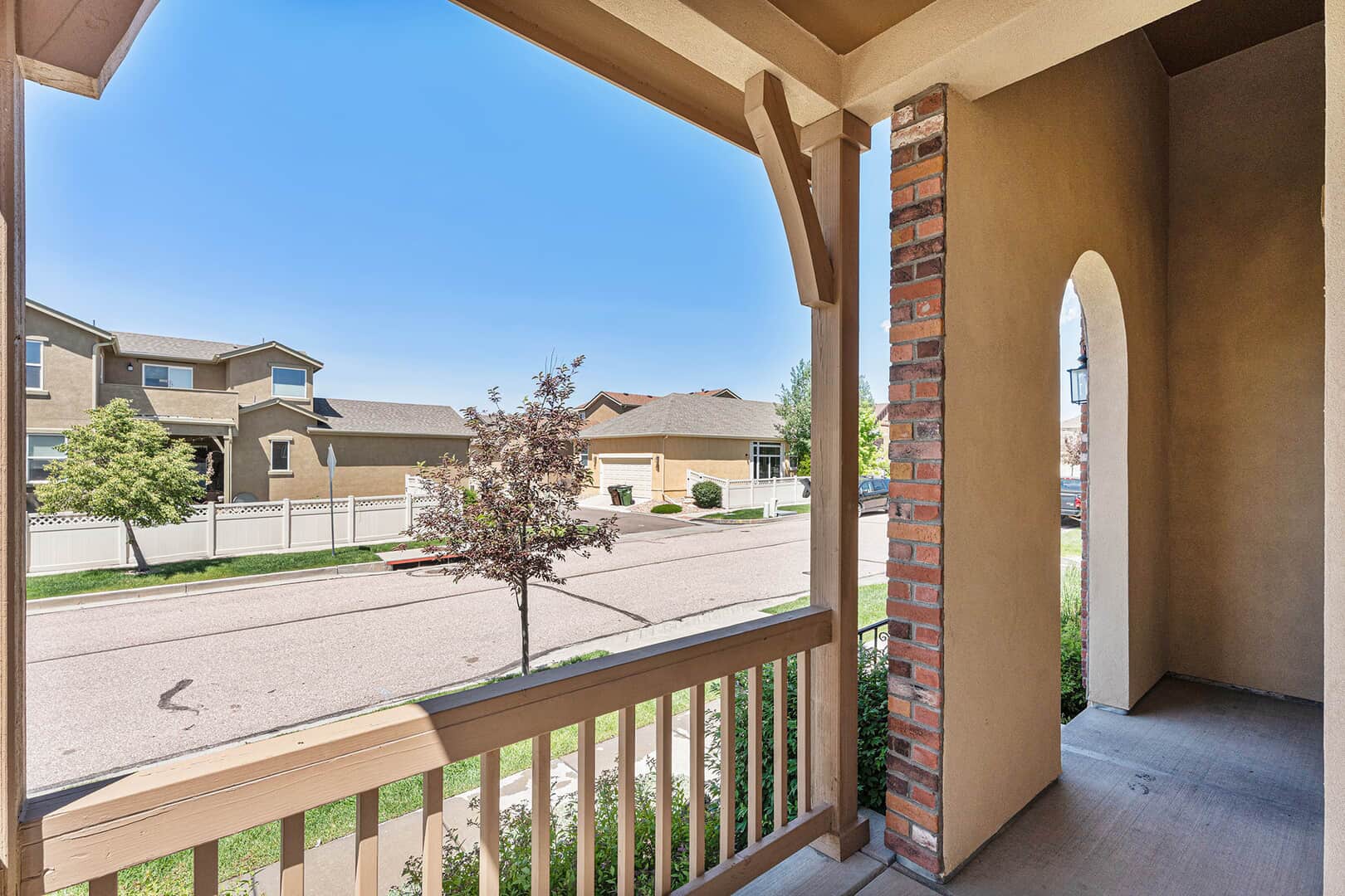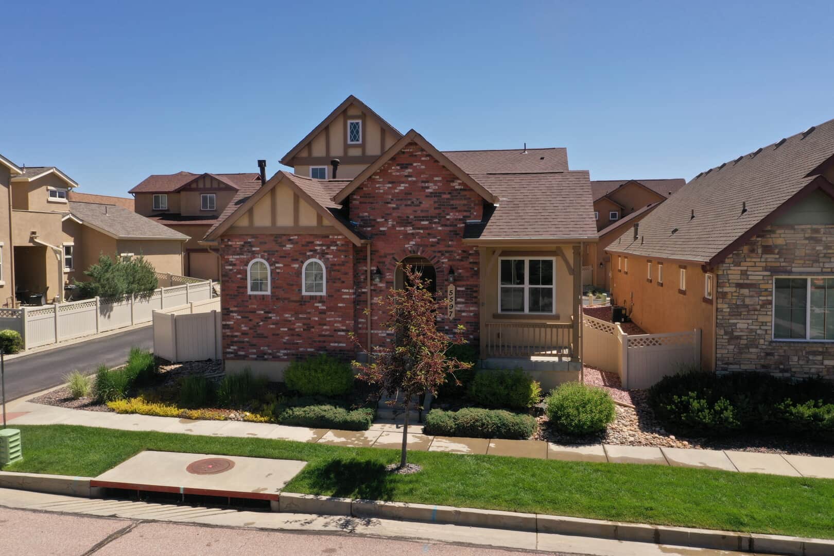 Main-level living and a resort-style community converge in this five-bedroom Wolf Ranch gem. Inside, brand-new quality carpet and upgraded pad in every room softens every step, creating a fresh canvas for the open great room where a stone-trimmed gas fireplace and sun-splashed dining area anchor daily life. The gourmet kitchen pairs slab-granite counters with a generous prep island, stainless appliances and a 5-burner gas range; sliding doors extend the party to a covered patio and a fully fenced yard—fence is maintained by the HOA. The main-level primary suite is a retreat unto itself, boasting a walk-in closet and spa-inspired five-piece bath. Upstairs, two secondary bedrooms share a full bath and the upper level also features a partially enclosed deck and a large office with views of Pikes Peak. Downstairs, a finished basement delivers an expansive family room, two additional bedrooms, a full bath and abundant storage under the stairs and in the mechanical room. Practical perks include central A/C, a three-car garage, low-maintenance landscaping and a freshly serviced gas fireplace to keep cozy in the winter. Life in Wolf Ranch promotes an active Colorado lifestyle: miles of walking and biking trails, a 29-million-gallon lake, resort-style pool, clubhouse, interactive playgrounds, outdoor fitness classes, paddle-boarding workshops, and 398 acres of planned parks and open space—all served by award-winning District 20 schools. A neighborhood park sits one block away; summer concerts, a waterfall and pond await just two blocks farther. Move-in ready, view-rich and lifestyle-driven—this is Colorado Springs living at its finest.