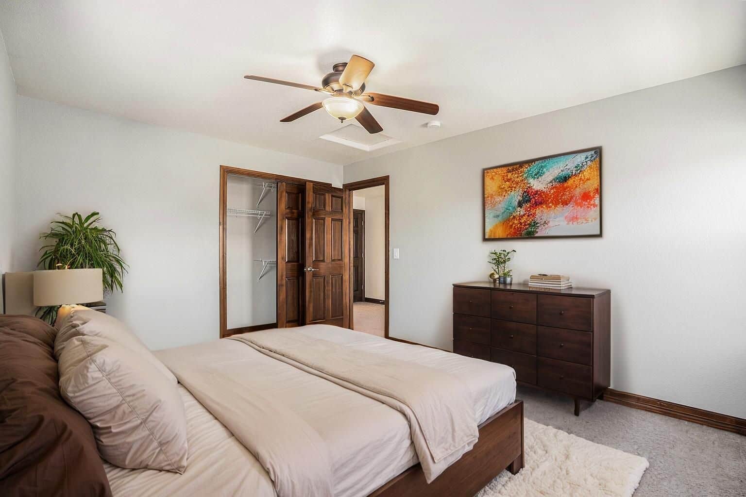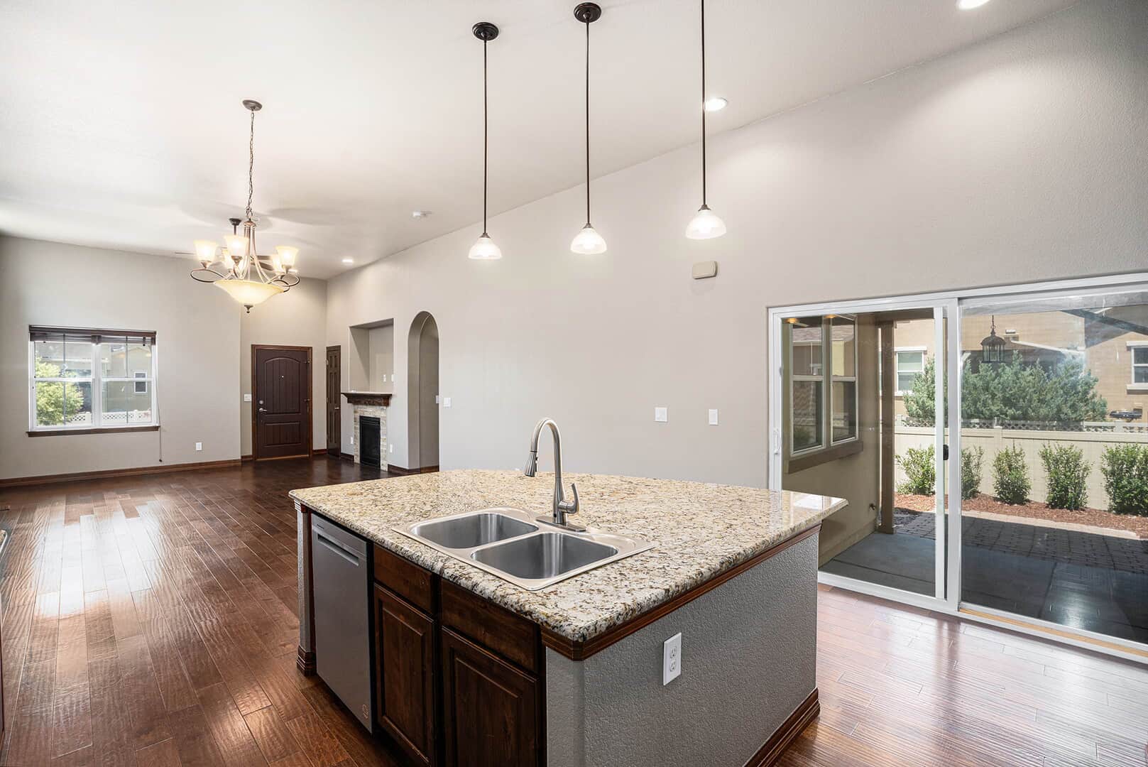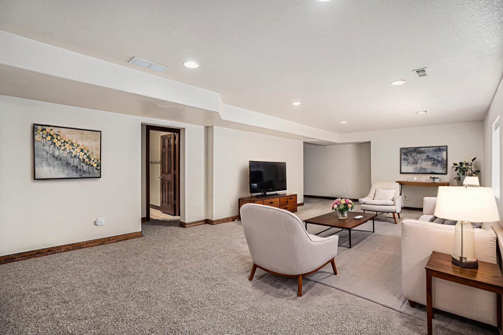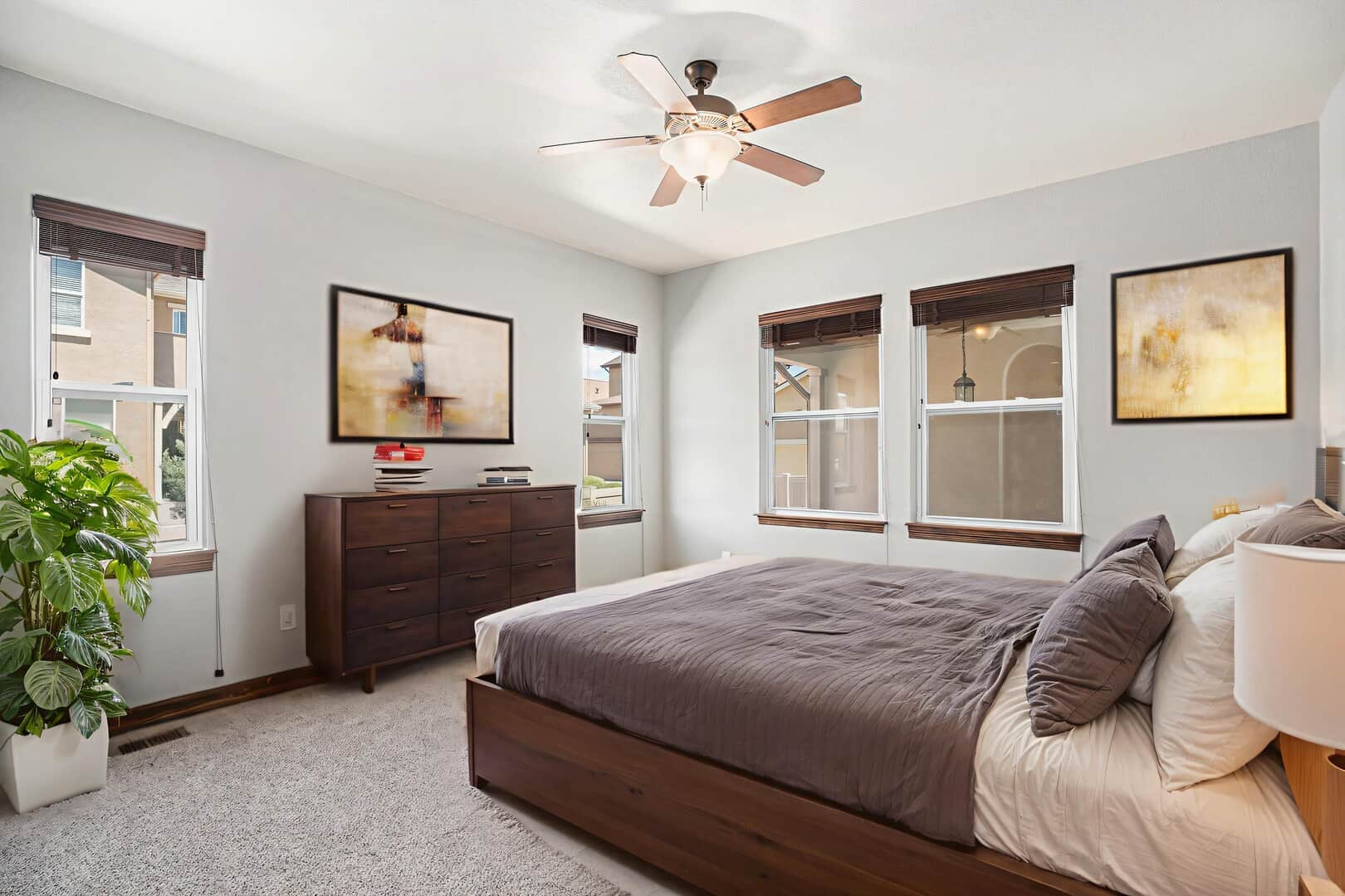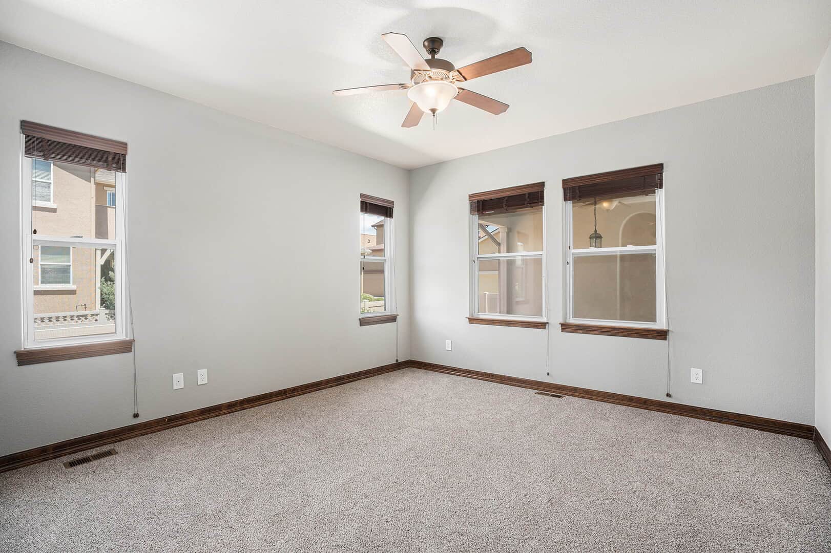 Main-level living and a resort-style community converge in this five-bedroom Wolf Ranch gem. Inside, brand-new quality carpet and upgraded pad in every room softens every step, creating a fresh canvas for the open great room where a stone-trimmed gas fireplace and sun-splashed dining area anchor daily life. The gourmet kitchen pairs slab-granite counters with a generous prep island, stainless appliances and a 5-burner gas range; sliding doors extend the party to a covered patio and a fully fenced yard—fence is maintained by the HOA. The main-level primary suite is a retreat unto itself, boasting a walk-in closet and spa-inspired five-piece bath. Upstairs, two secondary bedrooms share a full bath and the upper level also features a partially enclosed deck and a large office with views of Pikes Peak. Downstairs, a finished basement delivers an expansive family room, two additional bedrooms, a full bath and abundant storage under the stairs and in the mechanical room. Practical perks include central A/C, a three-car garage, low-maintenance landscaping and a freshly serviced gas fireplace to keep cozy in the winter. Life in Wolf Ranch promotes an active Colorado lifestyle: miles of walking and biking trails, a 29-million-gallon lake, resort-style pool, clubhouse, interactive playgrounds, outdoor fitness classes, paddle-boarding workshops, and 398 acres of planned parks and open space—all served by award-winning District 20 schools. A neighborhood park sits one block away; summer concerts, a waterfall and pond await just two blocks farther. Move-in ready, view-rich and lifestyle-driven—this is Colorado Springs living at its finest.