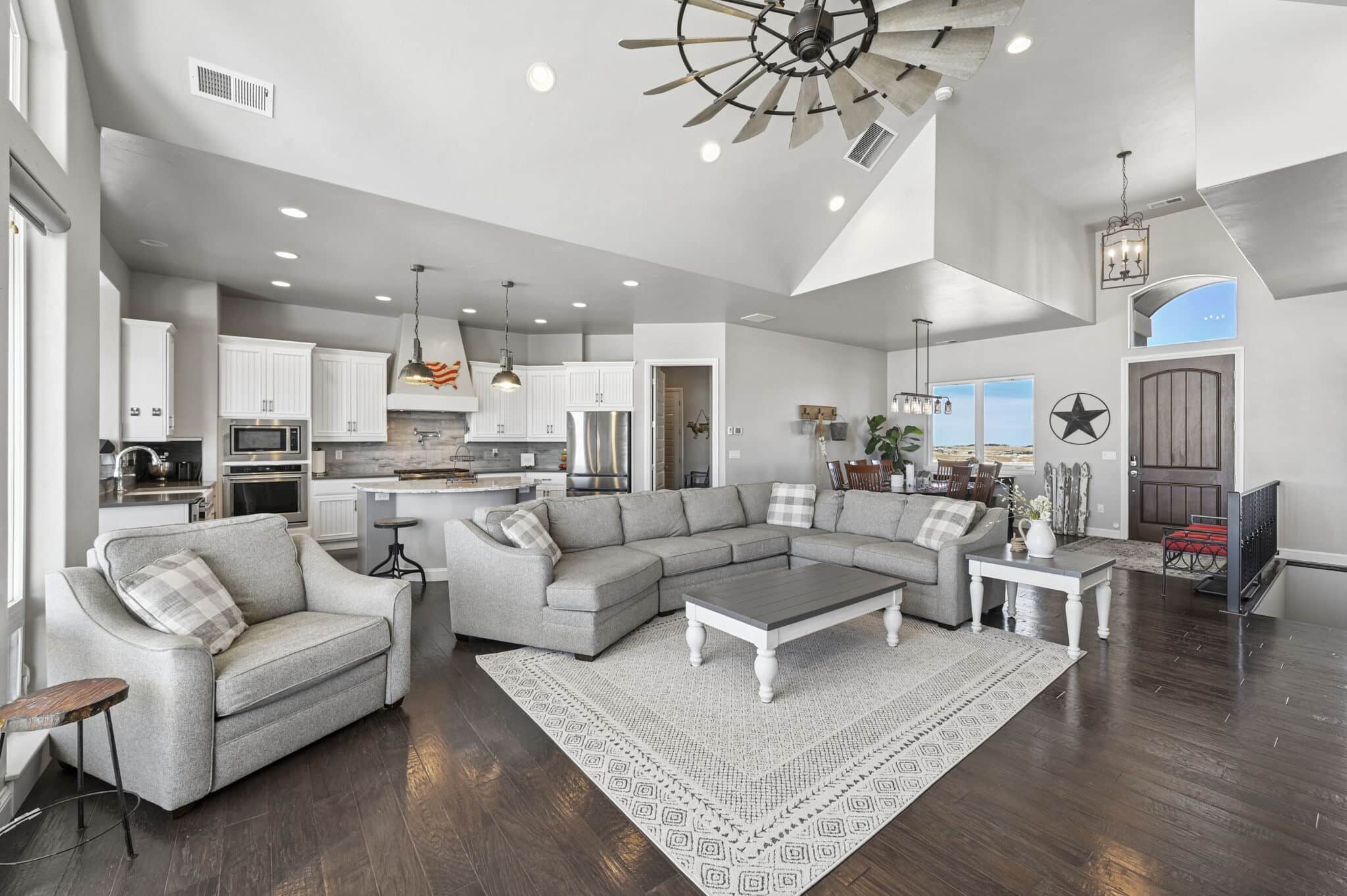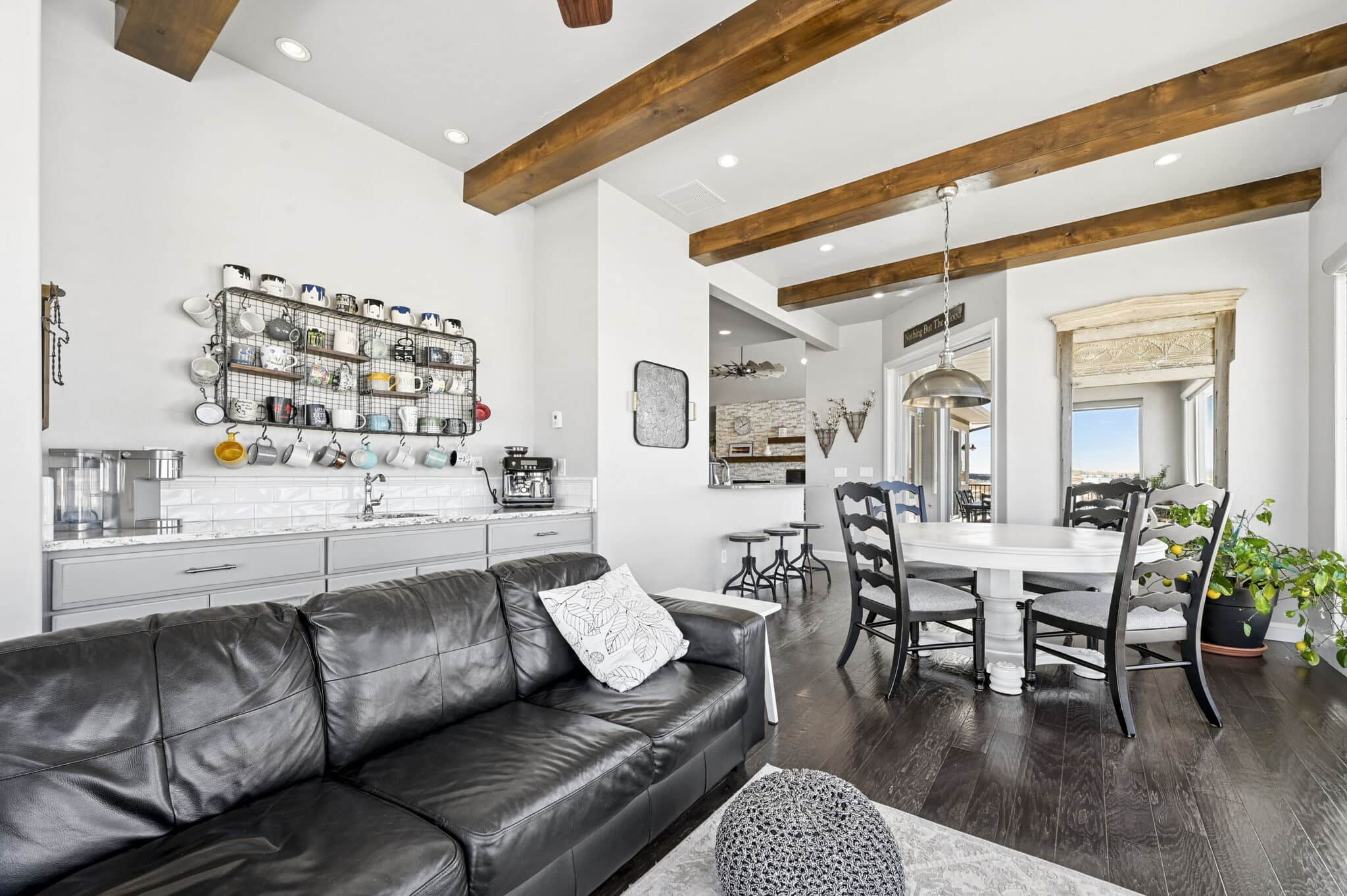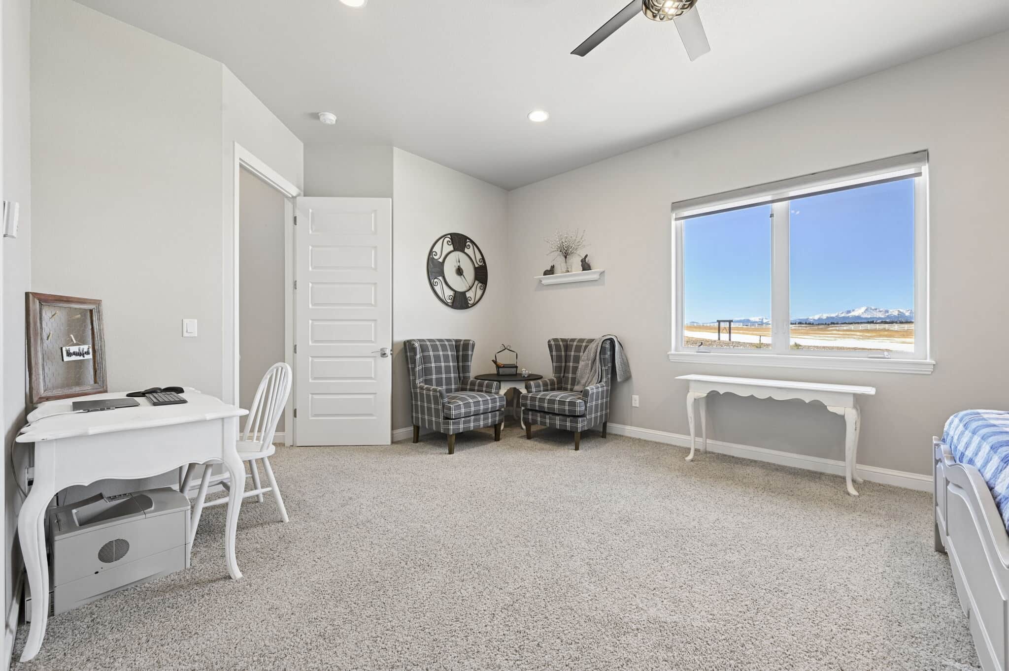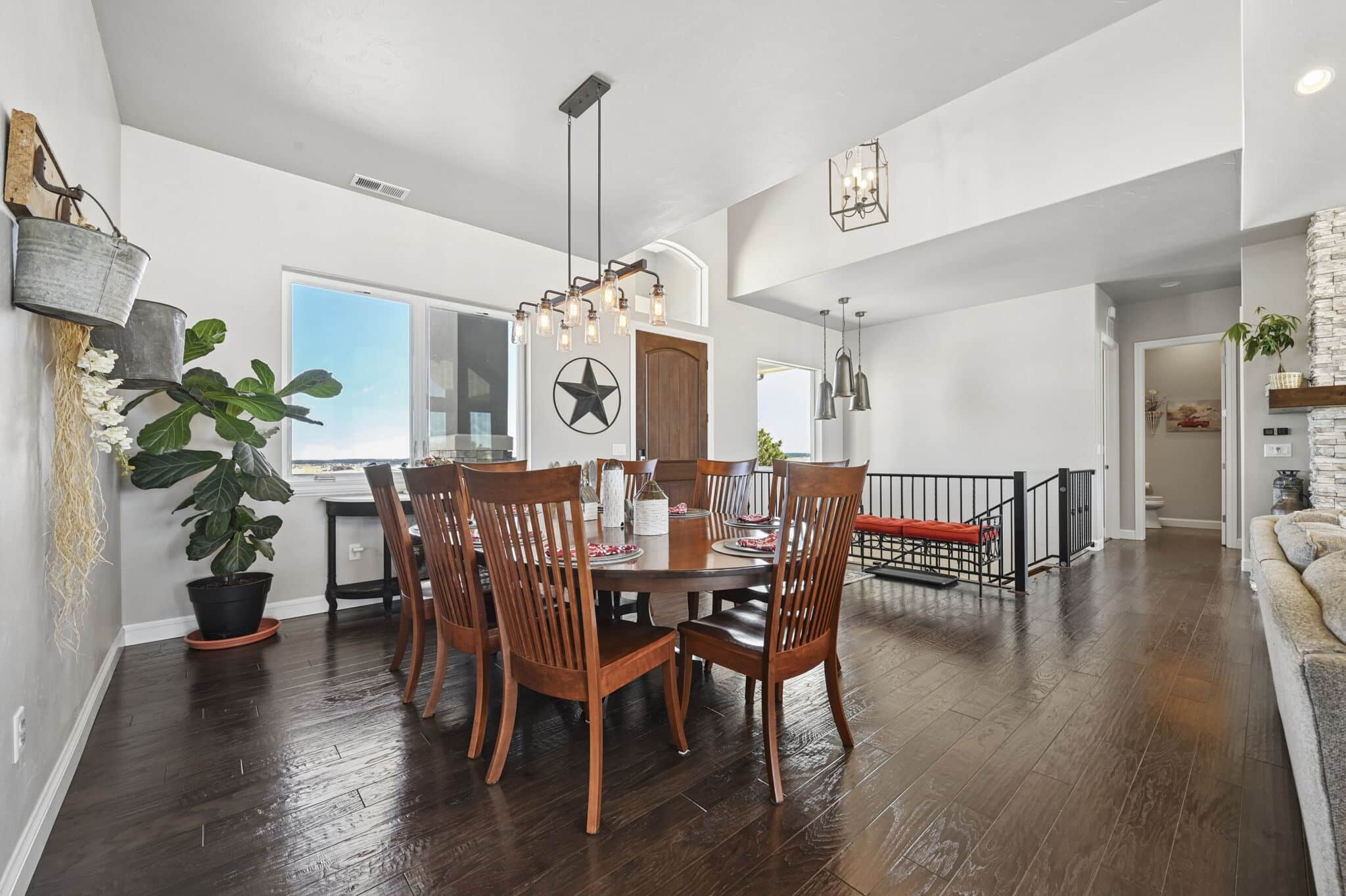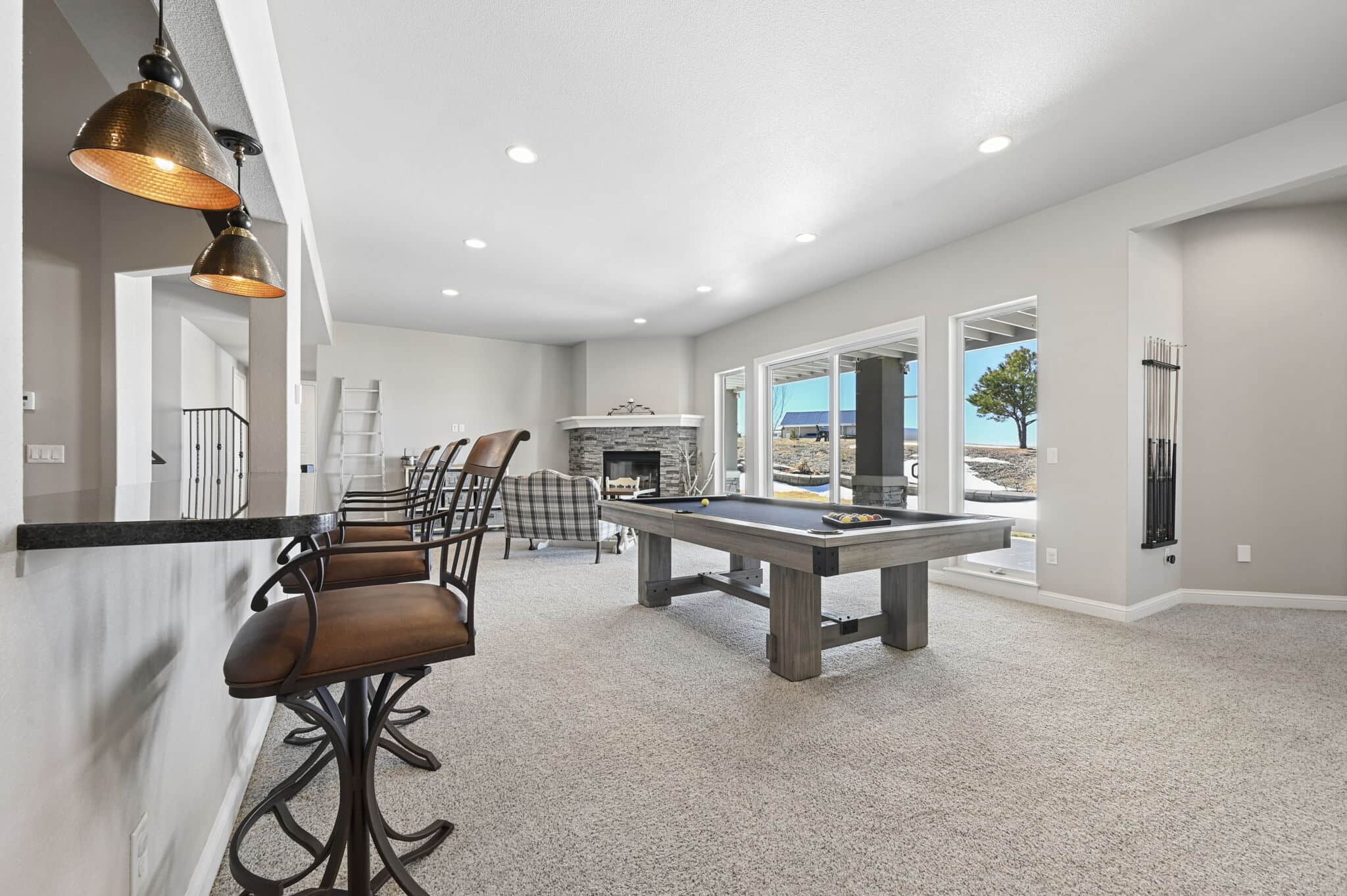 Beautiful 5-bedroom, 7-bath custom ranch estate set on 36 acres with breathtaking 360° views, including stunning views of Pikes Peak. This exceptional property offers the perfect blend of luxury living and equestrian functionality. The main level features hand-scraped wood floors, an open floor plan, and a spacious family room with a gas fireplace. The gourmet kitchen includes granite countertops, stainless steel appliances, ample cabinetry, and a large walk-in pantry. A spectacular sunroom with 180° views and wet bar/coffee bar walks out to a partially covered composite deck with metal railing—perfect for enjoying Colorado sunsets. The primary suite offers private deck access, beautiful Pikes Peak views, hand-scraped wood floors, and a spa-style bath with dual vanities, soaking tub, walk-in shower, and large walk-in closet with attached laundry. The walk-out basement level features high ceilings, a wood-burning fireplace, wet bar, private playroom, additional laundry, and three bedrooms—each with its own three-quarter bath, walk-in shower, and walk-in closet. Outside you’ll find a large barn with horse stalls, tack room, pass-through doors, and additional overhead access. The top portion of the property is enclosed with vinyl fencing, ideal for horses or livestock. Paid-off solar panels power both the home and barn. A rare opportunity to own a private Colorado ranch estate with panoramic views, luxury finishes, and outstanding equestrian amenities. Located close to Highway 105 with access to the highly regarded Monument Academy Charter Schools serving elementary through high school.
