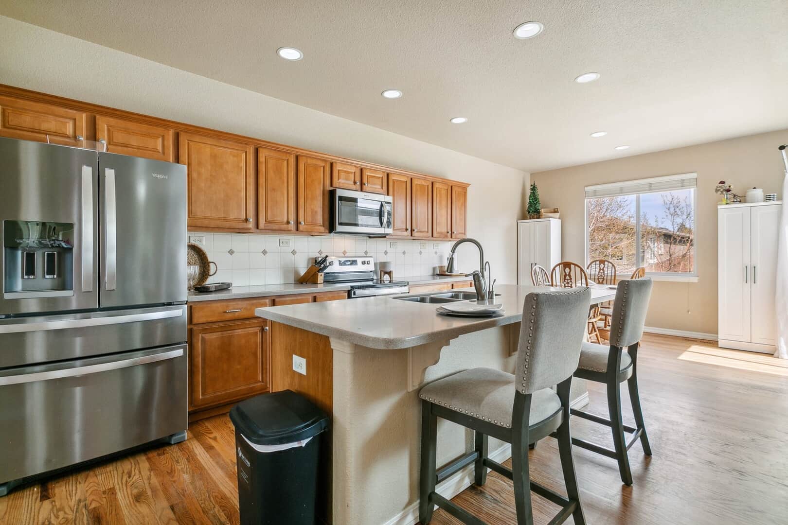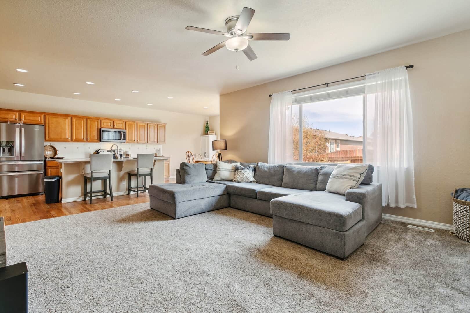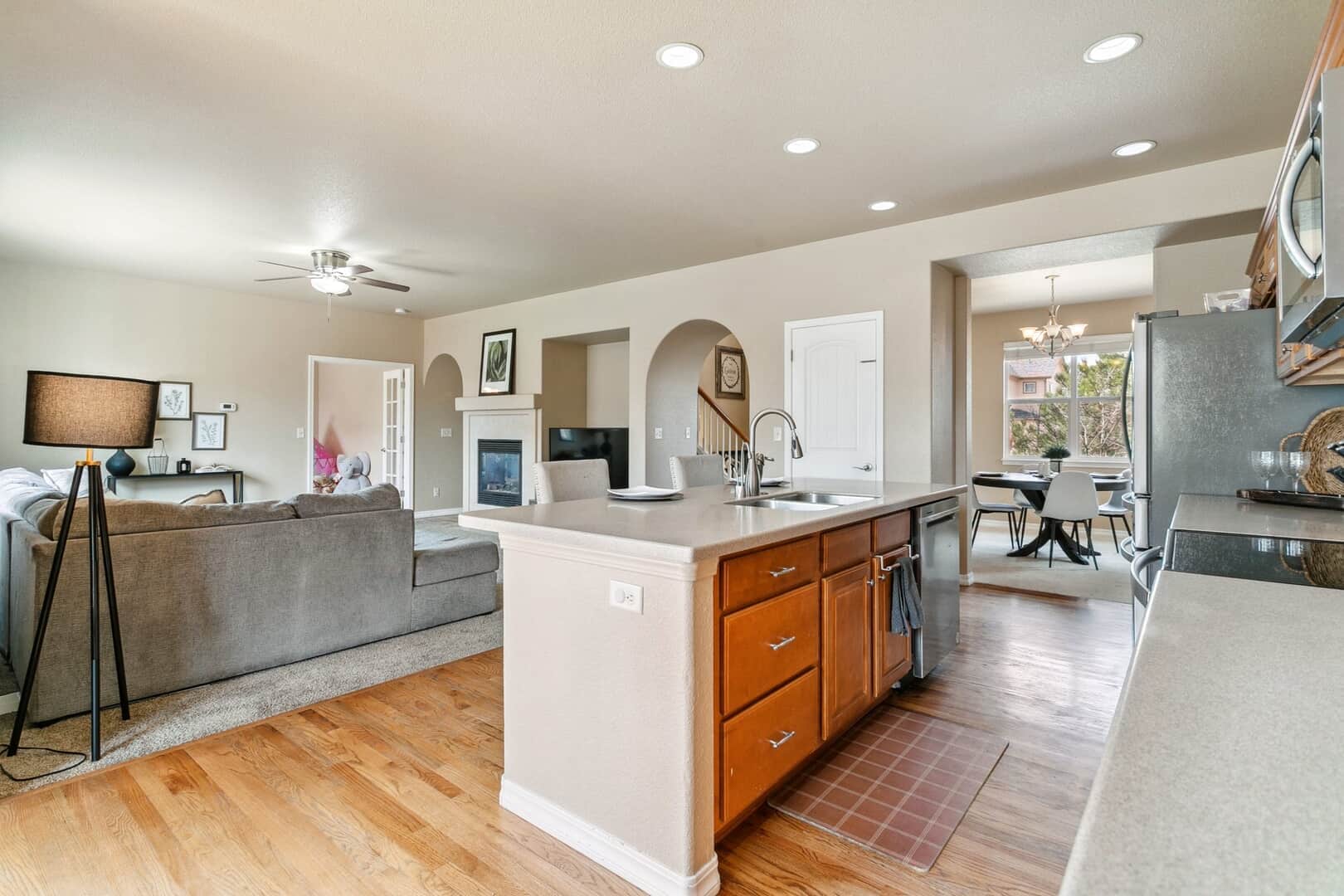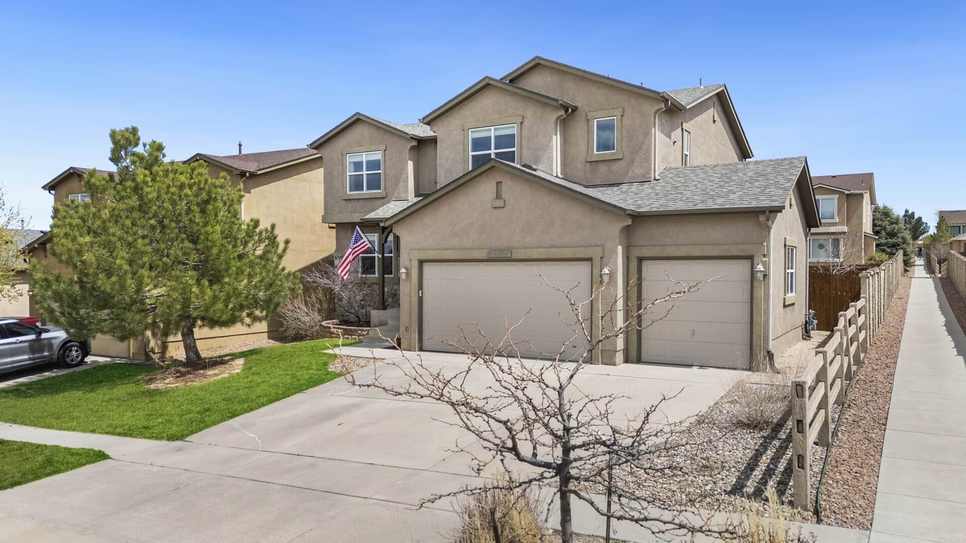 **Be sure to view the Virtual Tour & Custom Video links above**Welcome to your next chapter in the highly desirable Cumbre Vista neighborhood where great neighbors, mountain views, and top-rated District 20 schools create the perfect setting for Colorado living. This beautiful 5-bedroom, 4-bathroom home offers over 3,500 sq ft of well-designed space that blends modern upgrades with comfort. Whether you’re hosting friends or settling in for a quiet evening, this home is built for real life. Step inside the light-filled, open-concept main level, ideal for both everyday living and entertaining. The kitchen is the heart of the home, featuring newer stainless steel appliances, composite countertops, and a large center island perfect for baking, catching up on homework, or catching up friends/family. Meals can be enjoyed in the eat-in kitchen or in the formal dining room. The living room, complete with a cozy fireplace and big windows, feels bright and relaxing. A main-floor flex room can be used as a home office, playroom, or guest suite, whatever best fits your lifestyle. Upstairs, you’ll find four bedrooms, including a serene primary suite with a spa-like 5-piece bath and walk-in closet. You’ll love the convenience of having the laundry room upstairs, right where it’s needed most. The finished basement includes a large rec room, an additional bedroom and full bath, a dedicated home gym, and tons of storage. Need a 6th bedroom? The gym can be converted easily. Outside, enjoy a fully fenced backyard with mature landscaping, a separate dog run, and space for BBQs and/or play. You will love the city and mountain views from the front porch and 2 of the upstairs bedrooms. Extras include a 3-car oversized garage, central A/C, and easy access to Powers Blvd, parks, trails, shopping, and dining. The roof has been verified and comes with a 5 year cert from a local roofer. Looking for a place to call your very own? This is it! Call your agent and book your showing today!