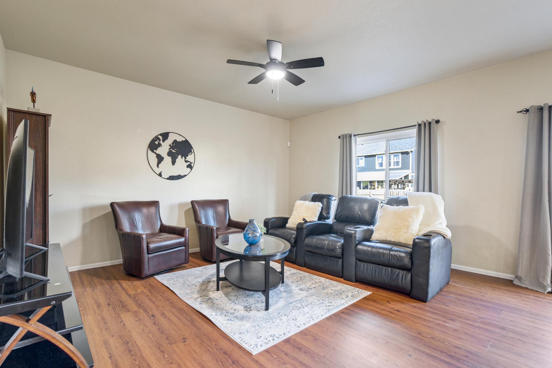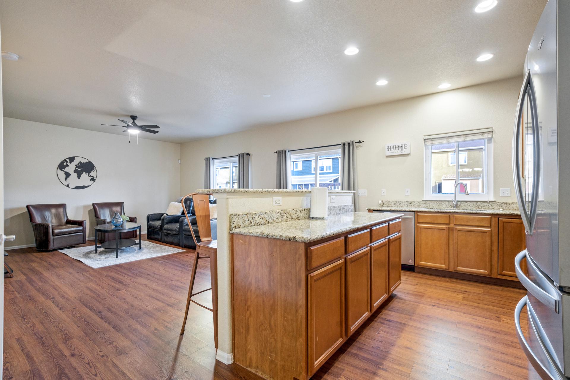 The home you’ve been waiting for has arrived! Making its market debut, this 5-bedroom, 4-bathroom, home combines generous space, thoughtful updates, & a layout designed to keep up with busy days & easy evenings! From the moment you arrive, the inviting covered front porch welcomes you home & provides plenty of space for outdoor seating & seasonal decor. Newer luxury vinyl flooring coupled with natural sunlight adds to the seamless flow of the main level. The kitchen is the hub of the home, opened to the great room & connected through an archway to the formal dining room that offers a lovely gathering space for family mealtimes. A breakfast bar for more casual dining or serving adds functionality to the kitchen, while granite counters, stainless steel appliances, a pantry, & a window above the sink overlooking the privacy-fenced back yard add appeal. The great room extends beyond the kitchen with walk-out access to the patio & yard, combining indoor & outdoor living. Rounding out the main level is a half-bathroom for convenience. The upper-level is reserved for retreat time with 3 bedrooms & a full bathroom in addition to the primary ensuite complete with vaulted ceilings, an oversized walk-in closet, & a 5-piece bathroom. The designated upper-level laundry space makes for ease on laundry day! The extensive finished basement provides two additional living/recreation areas, + the fifth bedroom and a three-quarter bathroom. The trendy exposed beam ceiling adds character and enhances the open feel. Recent significant improvements that provide peace of mind include NEW main & upper-level windows in 2025, a NEW roof in 2024, NEWLY painted front exterior & gutters in 2024, & a NEW water Heater in 2023! Drumroll…the finale, a rare find with a 3-car tandem garage! Complete with central air conditioning, an auto sprinkler system, & close to the nearby K-8 school, playgrounds, & a short commute to military bases, all this home needs is a NEW Owner, & that should be YOU!