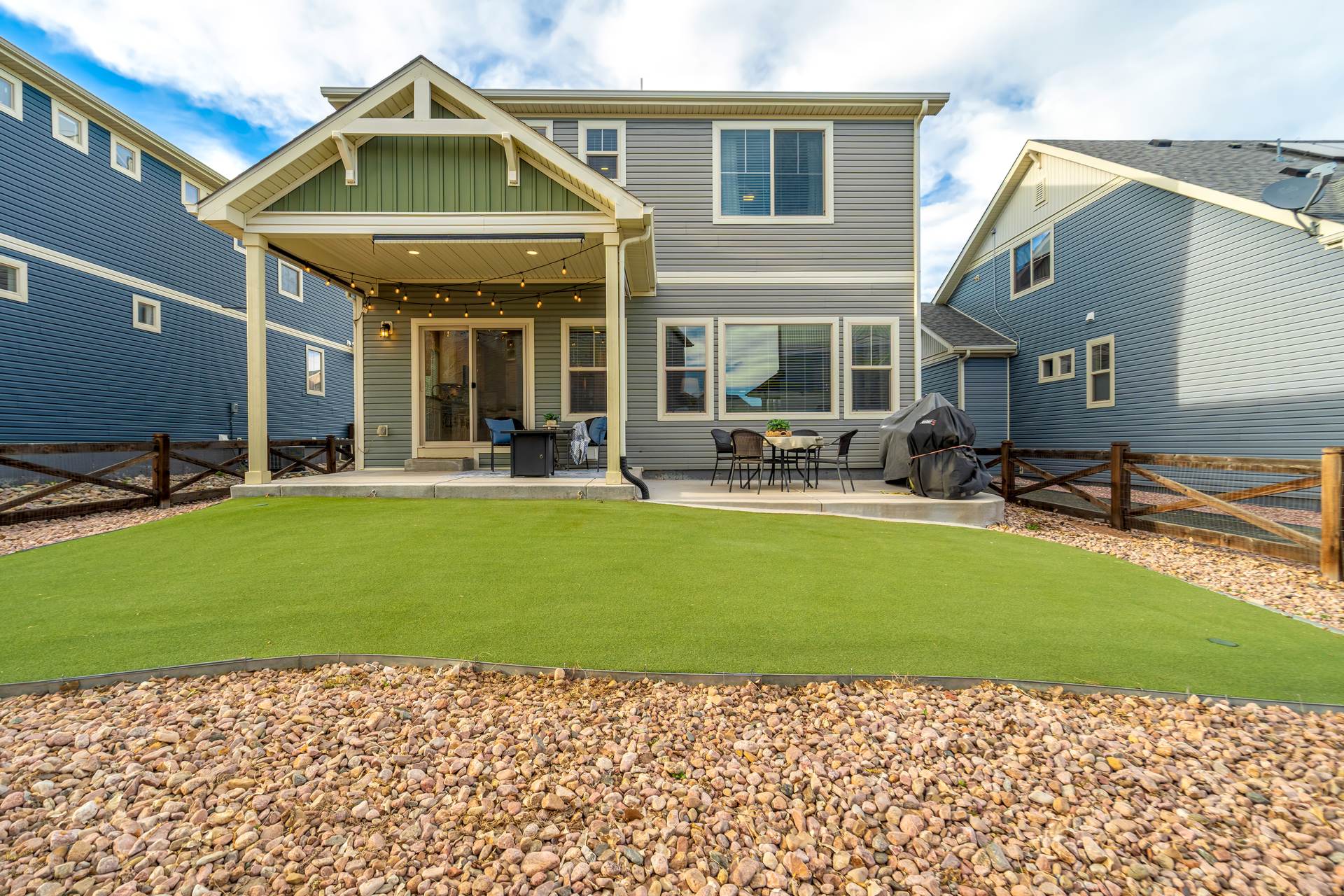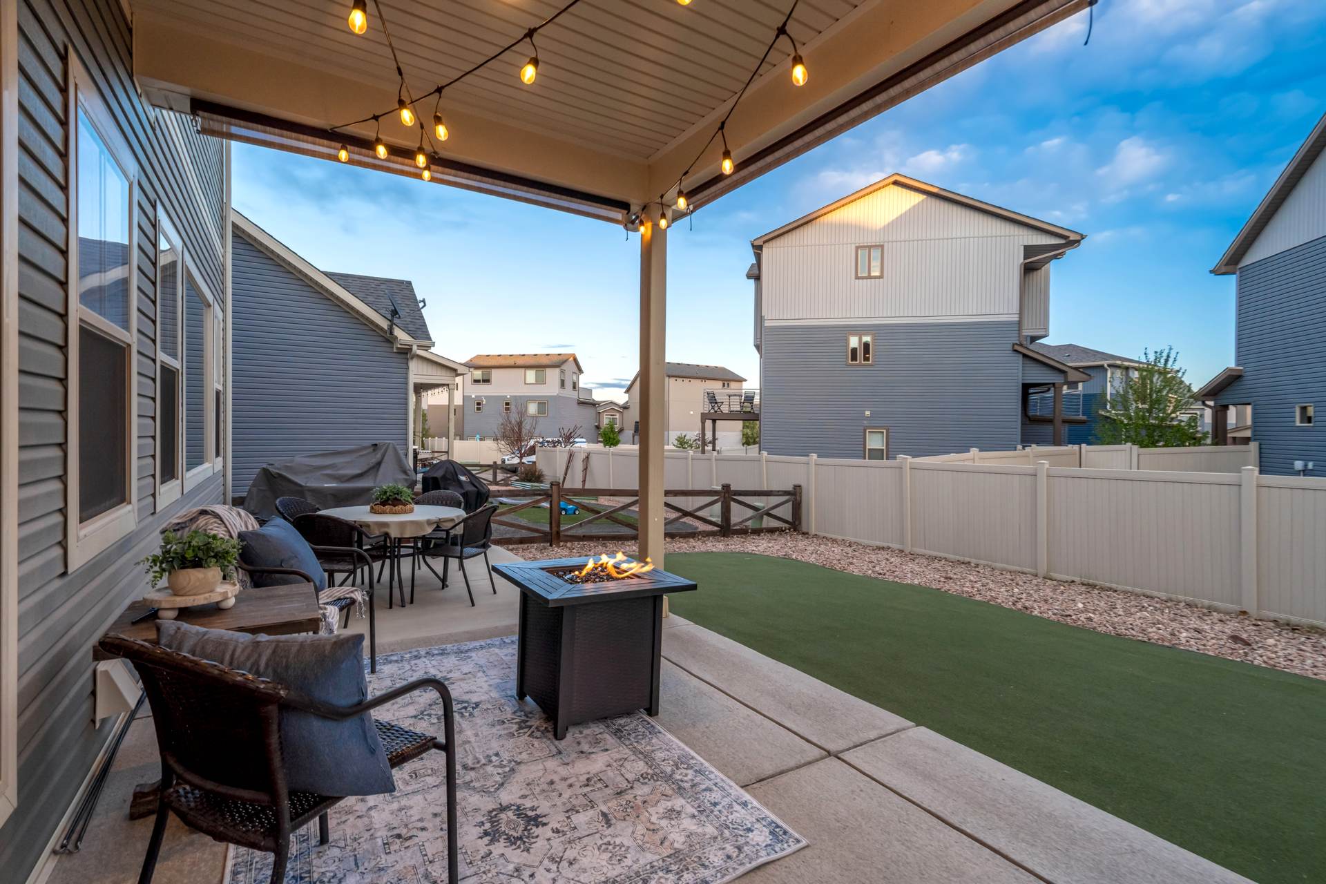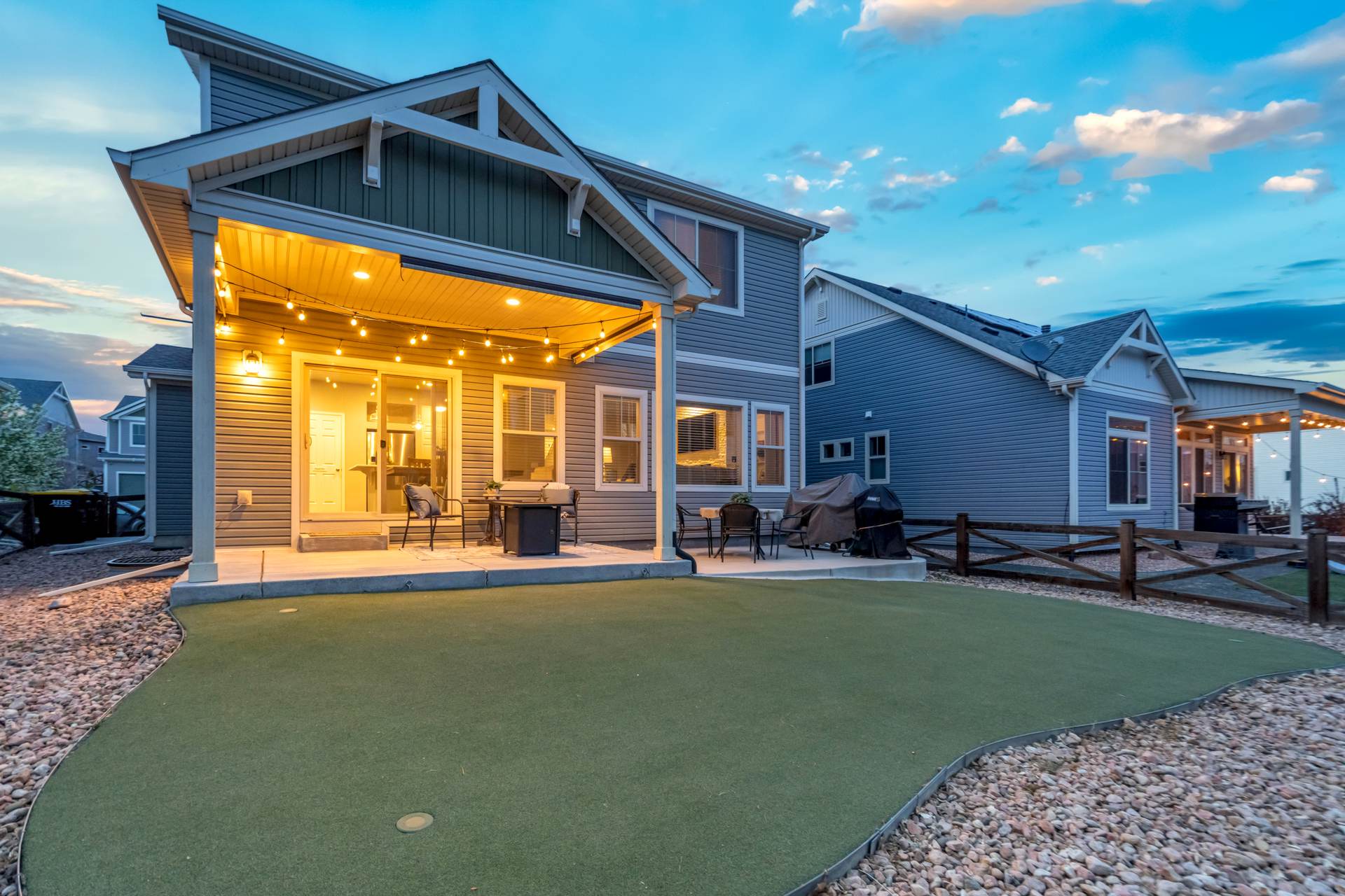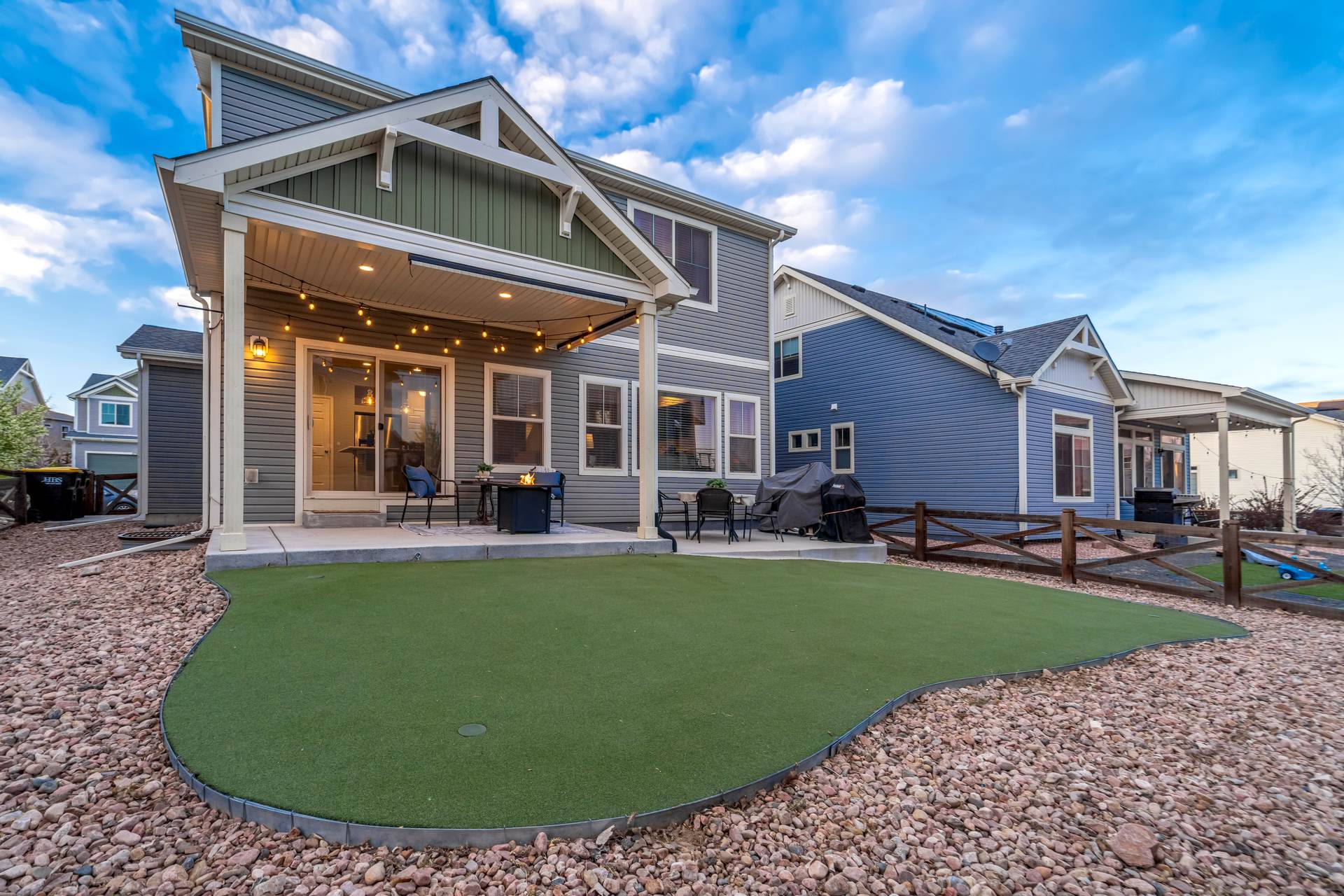 Welcome to life in the award-winning Banning Lewis Ranch—where community, convenience, and lifestyle come together beautifully. This meticulously maintained 3-bedroom, 3-bath home offers the perfect blend of function and style, complete with a versatile office or flex space ideal for working from home, a playroom, or a quiet retreat. The open-concept main level was designed to impress, featuring a striking stacked-stone quartz fireplace, an oversized kitchen island perfect for gathering, and a light-filled dining area that flows effortlessly for everyday living and entertaining. The unfinished basement is a blank canvas with serious upside—already offering space for a future fourth bedroom, additional bathroom, and a secondary living area. Even better, it currently features a fun indoor climbing wall, adding a unique and playful element you won’t find in most homes. Step outside and you’ll find your own private outdoor retreat. The extended, partially covered concrete patio is ready for summer evenings and weekend get-togethers, while the low-maintenance yard—with turf and a custom putting green—delivers year-round enjoyment without the weekend workload. And the location? Hard to beat. Just a short walk to neighborhood favorites like the splash pad, parks, and outdoor concert venue. Banning Lewis Ranch residents enjoy top-tier amenities including pickleball courts, a dog park, miles of trails, a resort-style pool, farmers markets, and community events all year long. All of this with convenient access to Schriever and Peterson Space Force Bases, plus nearby shopping, dining, and highly regarded schools.