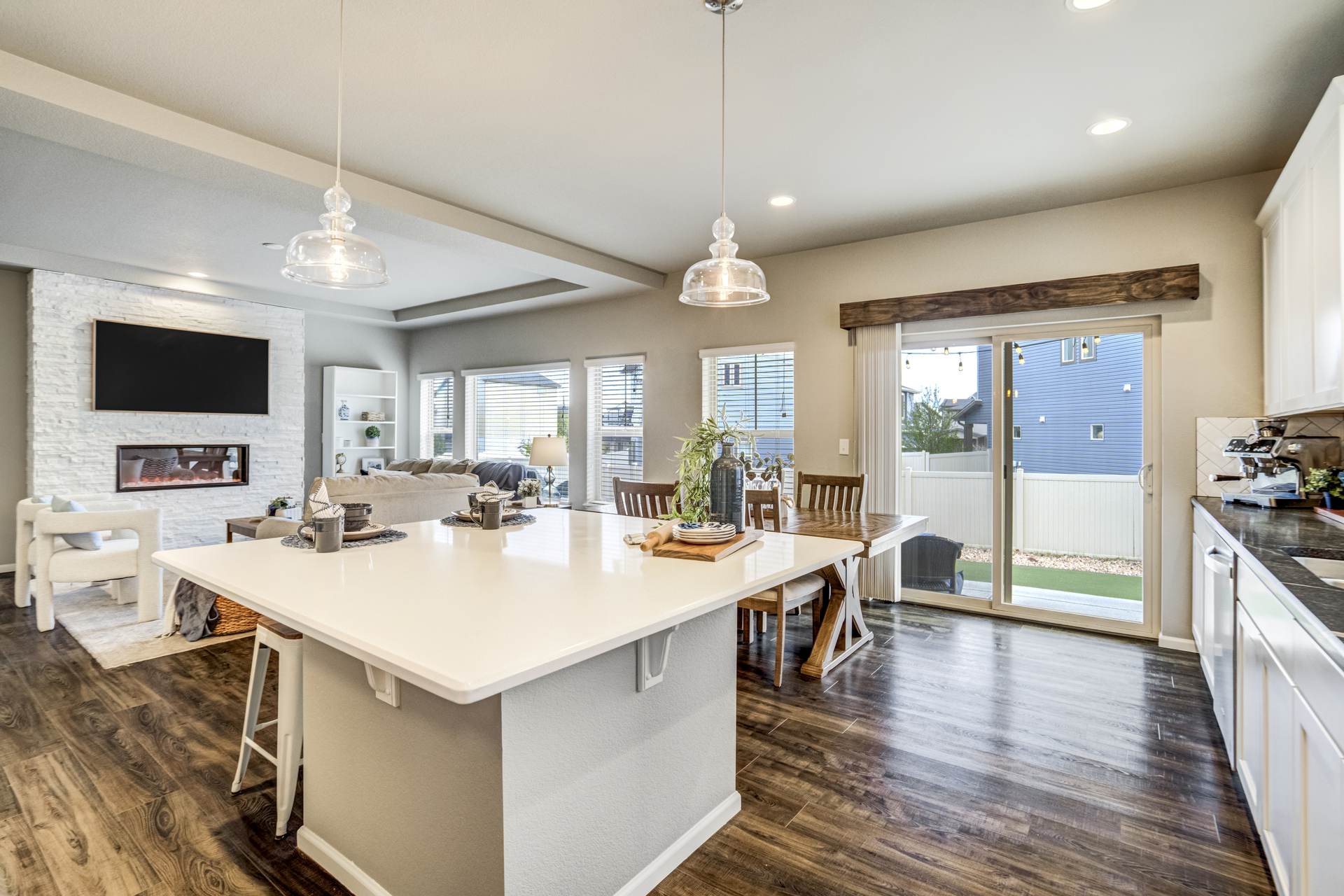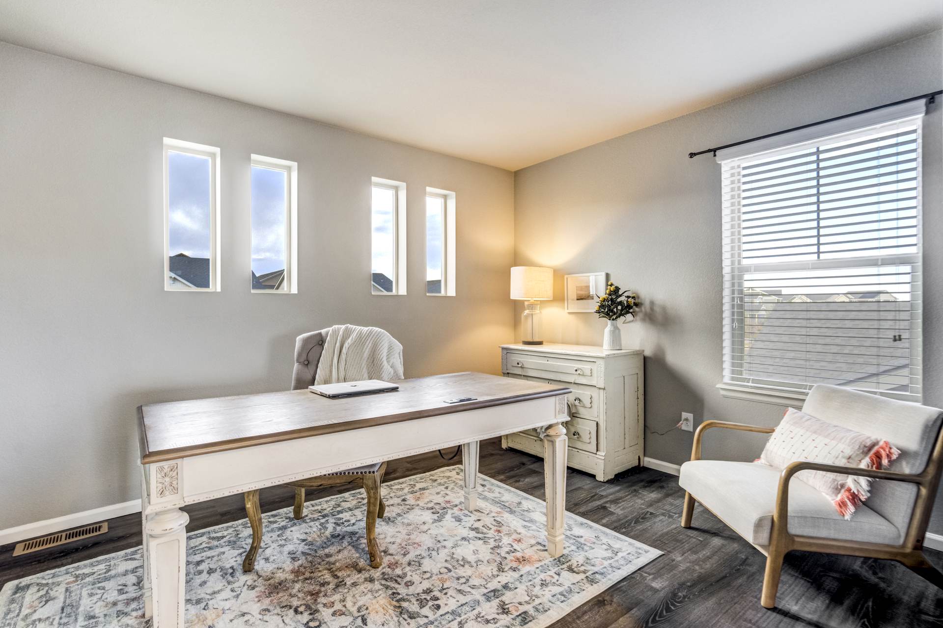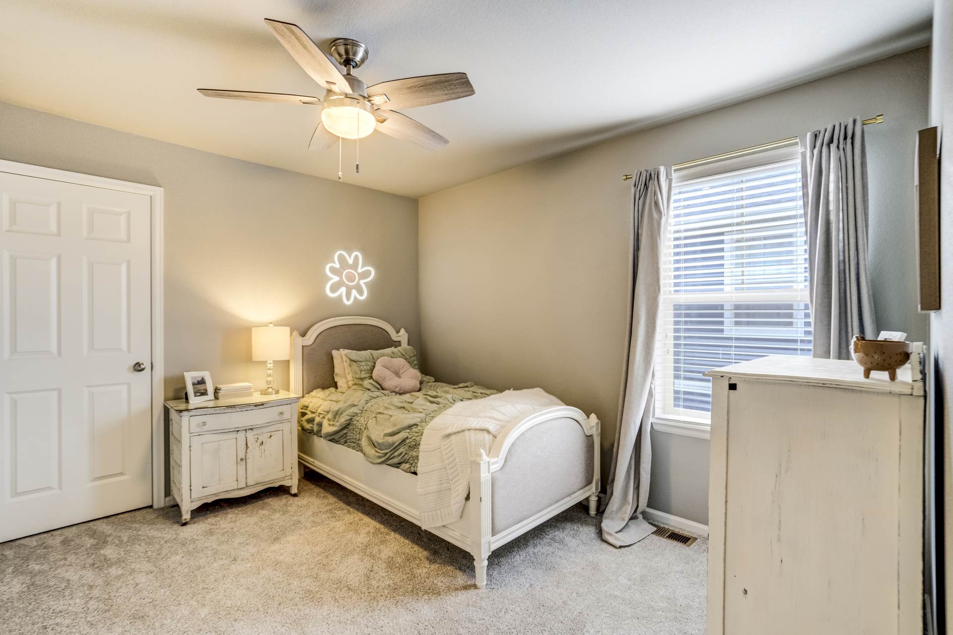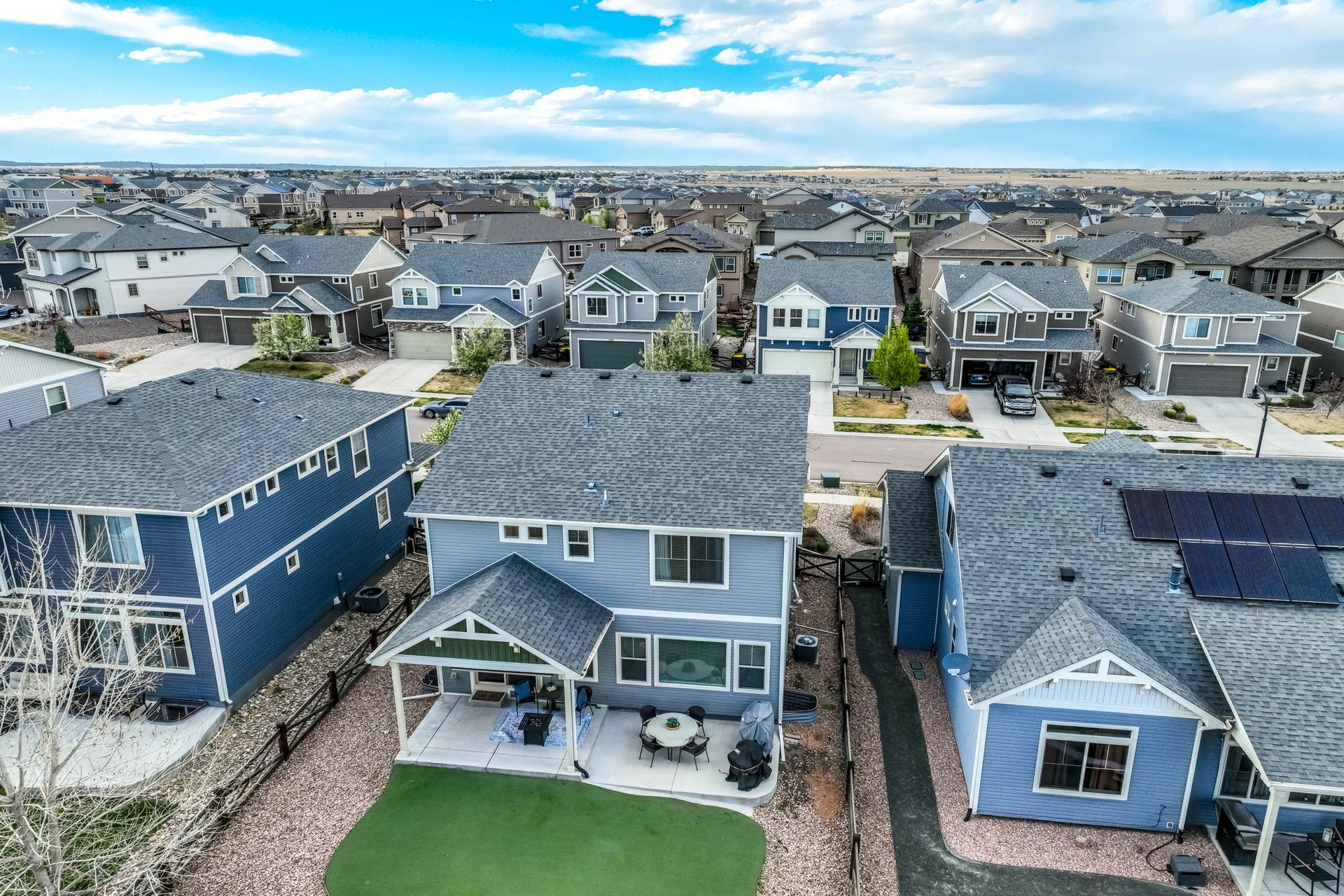 Welcome to life in the award-winning Banning Lewis Ranch—where community, convenience, and lifestyle come together beautifully. This meticulously maintained 3-bedroom, 3-bath home offers the perfect blend of function and style, complete with a versatile office or flex space ideal for working from home, a playroom, or a quiet retreat. The open-concept main level was designed to impress, featuring a striking stacked-stone quartz fireplace, an oversized kitchen island perfect for gathering, and a light-filled dining area that flows effortlessly for everyday living and entertaining. The unfinished basement is a blank canvas with serious upside—already offering space for a future fourth bedroom, additional bathroom, and a secondary living area. Even better, it currently features a fun indoor climbing wall, adding a unique and playful element you won’t find in most homes. Step outside and you’ll find your own private outdoor retreat. The extended, partially covered concrete patio is ready for summer evenings and weekend get-togethers, while the low-maintenance yard—with turf and a custom putting green—delivers year-round enjoyment without the weekend workload. And the location? Hard to beat. Just a short walk to neighborhood favorites like the splash pad, parks, and outdoor concert venue. Banning Lewis Ranch residents enjoy top-tier amenities including pickleball courts, a dog park, miles of trails, a resort-style pool, farmers markets, and community events all year long. All of this with convenient access to Schriever and Peterson Space Force Bases, plus nearby shopping, dining, and highly regarded schools.