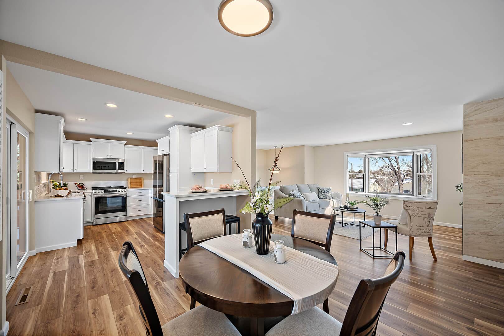 Welcome home! This beautiful 3 bed, 2 bath, 2 car home has been fully updated and move-in ready. New luxury vinyl flooring, paint and lighting throughout. The spacious kitchen boasts stunning quartz countertops, new white cabinetry and SS appliances with a gas range. The kitchen is open to the dining space and also features a breakfast bar. The kitchen also walks out to the large covered wood deck and fully fenced back yard. The living room space is open and bright with a gas fireplace and bay window. Down the hall is an updated full bath. The primary bedroom has a walk-in closet and walks out to a private deck. There are 2 additional bedrooms upstairs. The lower level features a large family room, spacious laundry and updated 3/4 bath. Oversized 2 car garage walks out to the back yard. This home features plenty of closet and storage space. Located on the Westside of Colorado Springs close to parks, schools and shopping. Minutes to Old Colorado City, Garden of the Gods as well as quick and easy access to I25.