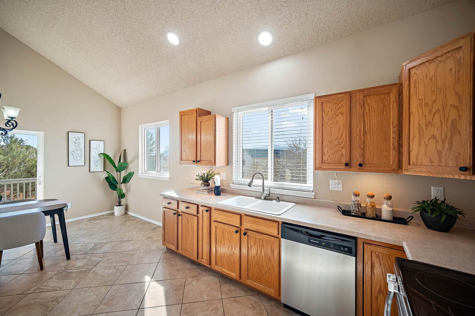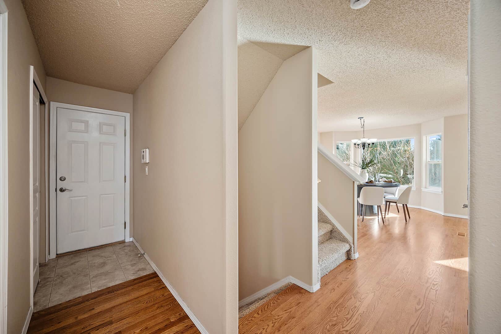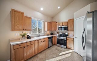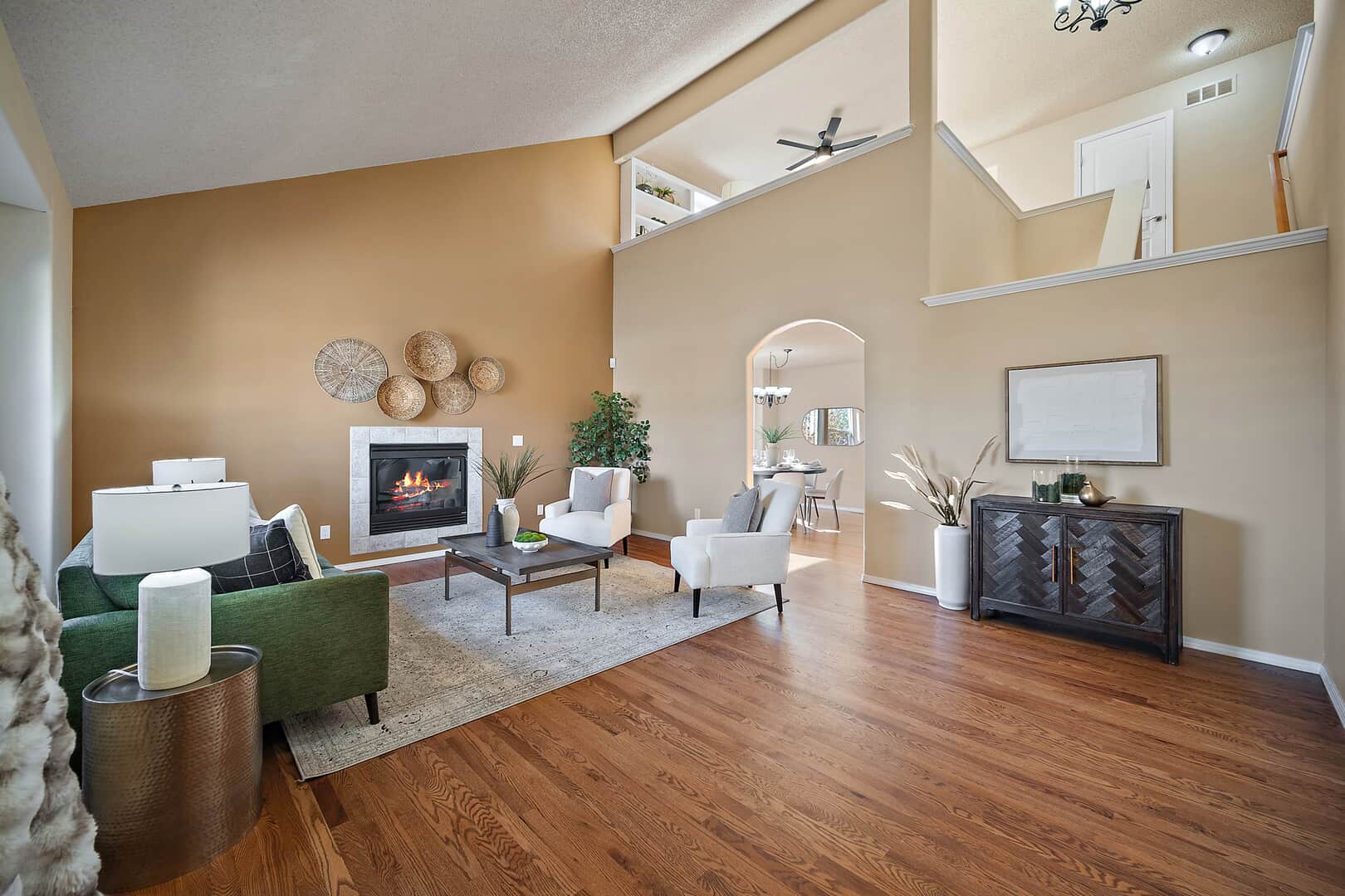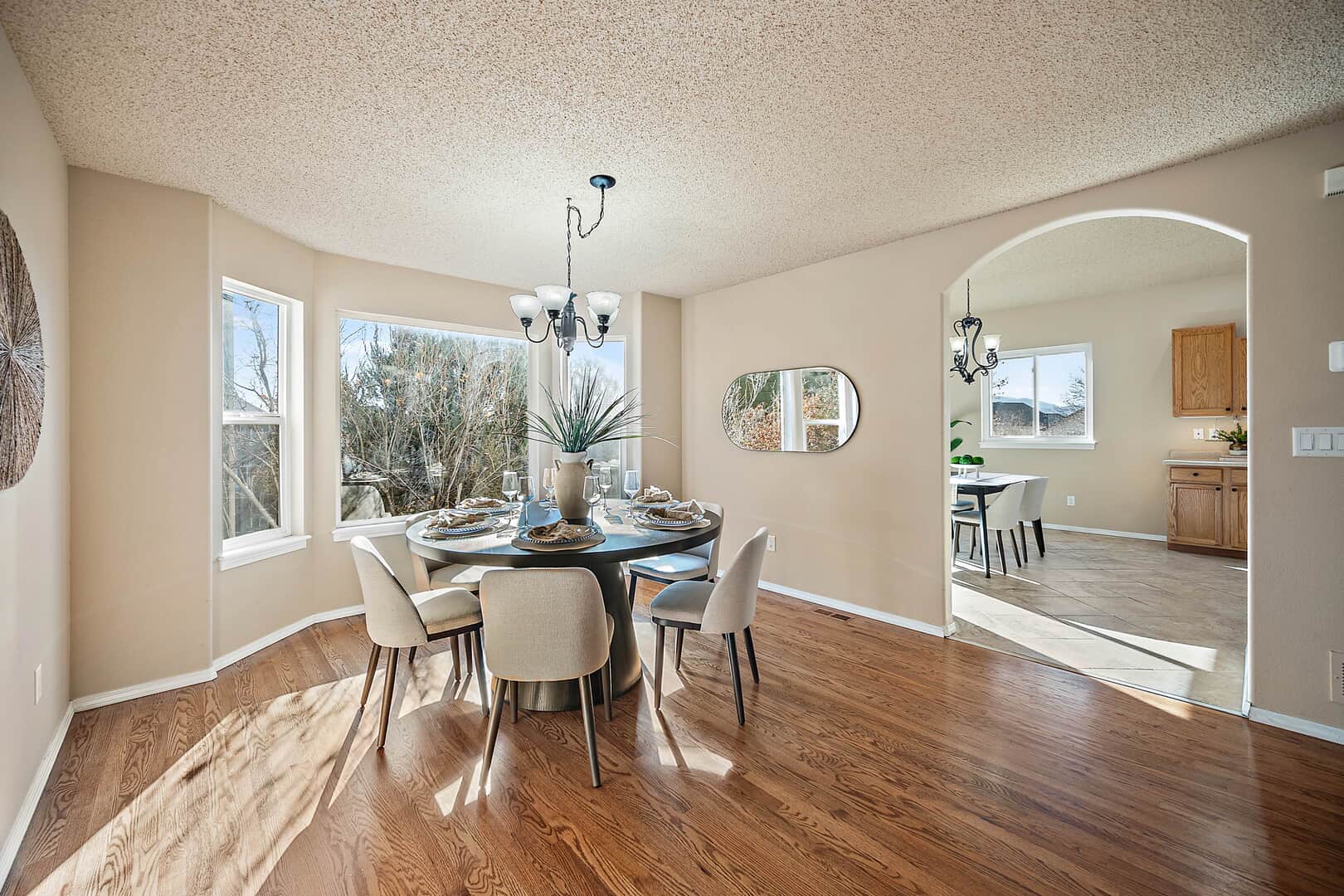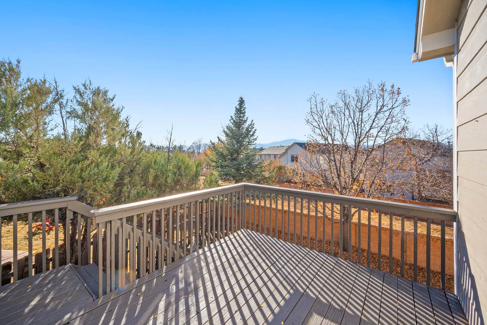 This beautifully maintained two-story home features new exterior paint and all main living spaces on the main level. Step inside to a welcoming entryway with a vaulted ceiling and hardwood floors that flow into the spacious family room with a cozy gas fireplace that is perfect for relaxing or gathering with family. Continue into the oversized formal dining room, also with hardwood floors and a bay window that fills the space with natural light. Down the hallway, hardwood continues past the powder bath space with laminate flooring and leads to the dedicated laundry area and main-level primary suite. The primary bedroom offers ample space with new carpet, a double closet plus an additional walk-in closet, and the adjoining five-piece bath features new LVP flooring, dual sinks, an oversized soaking tub, and a separate shower. Head back down the hall and step into the open-concept eat-in kitchen, complete with tile floors, a generous dining area, and brand-new stainless steel appliances. Off the kitchen, step onto the oversized deck that is perfect for grilling, dining, or enjoying stunning mountain views and the open space and nearby walking trails. Upstairs, a versatile loft with built-in cabinetry provides the perfect area for a home office, study, or additional lounge space. Two additional bedrooms—each featuring double closets—and a full bath complete the upper level. Downstairs, a large unfinished basement offers endless possibilities for future expansion, whether you envision a recreation room, extra bedrooms, or a home gym.