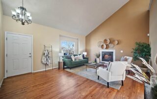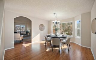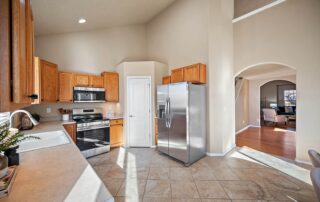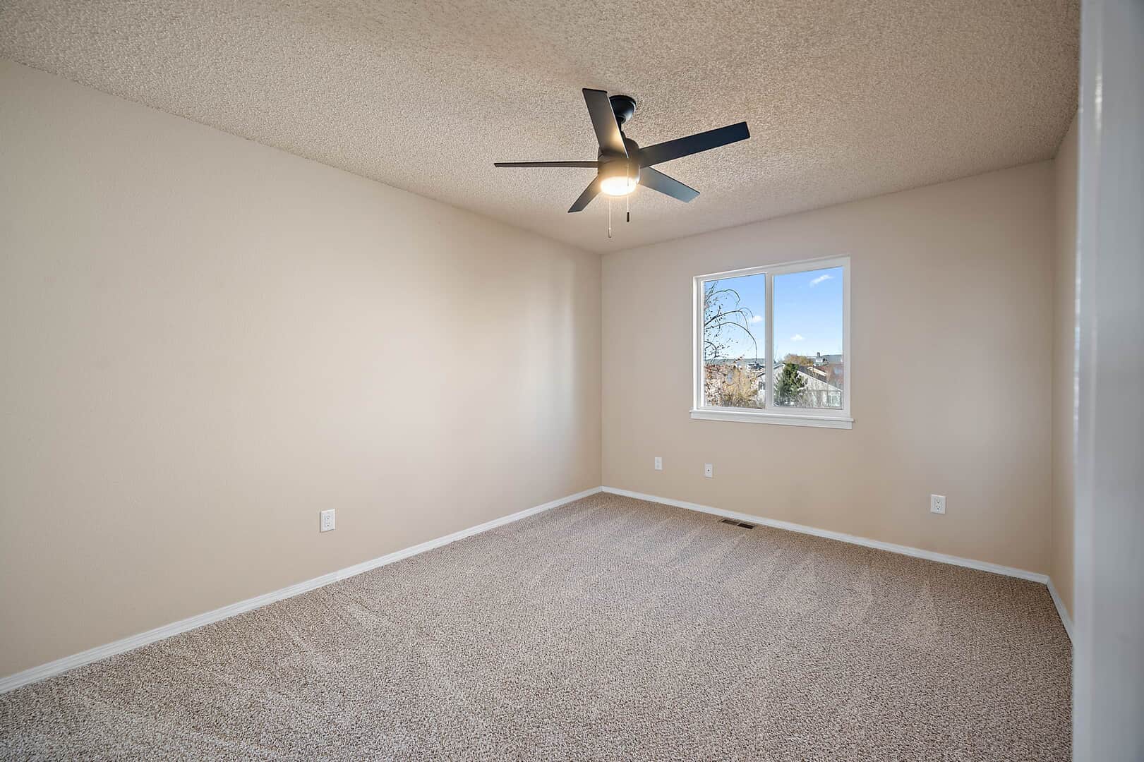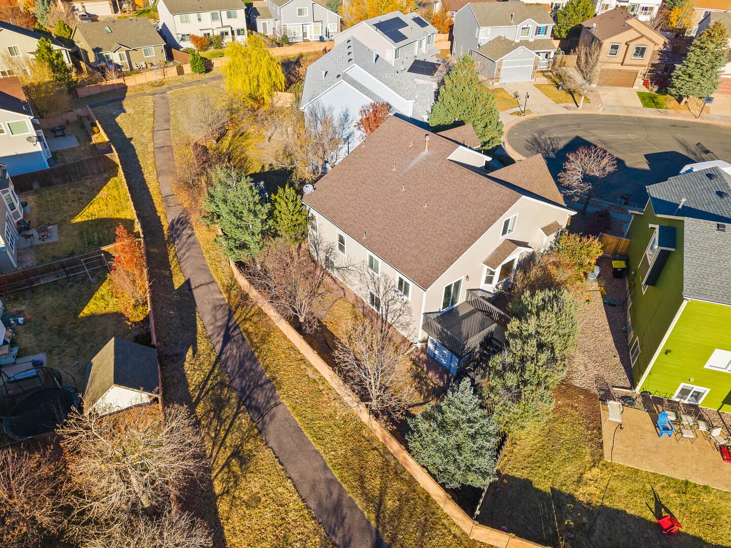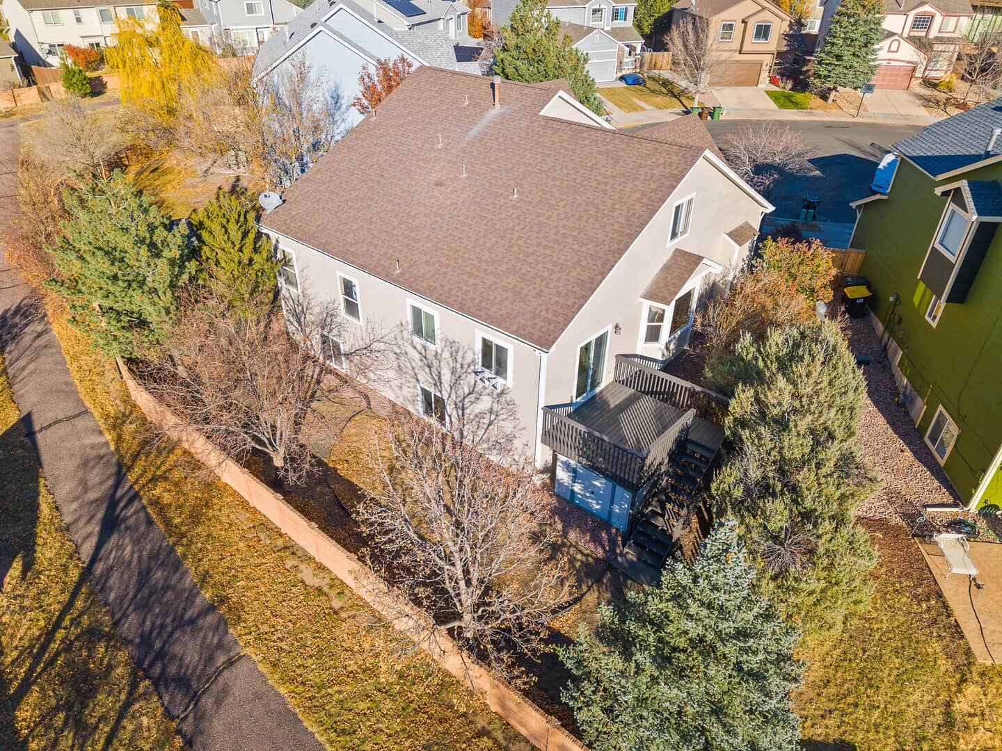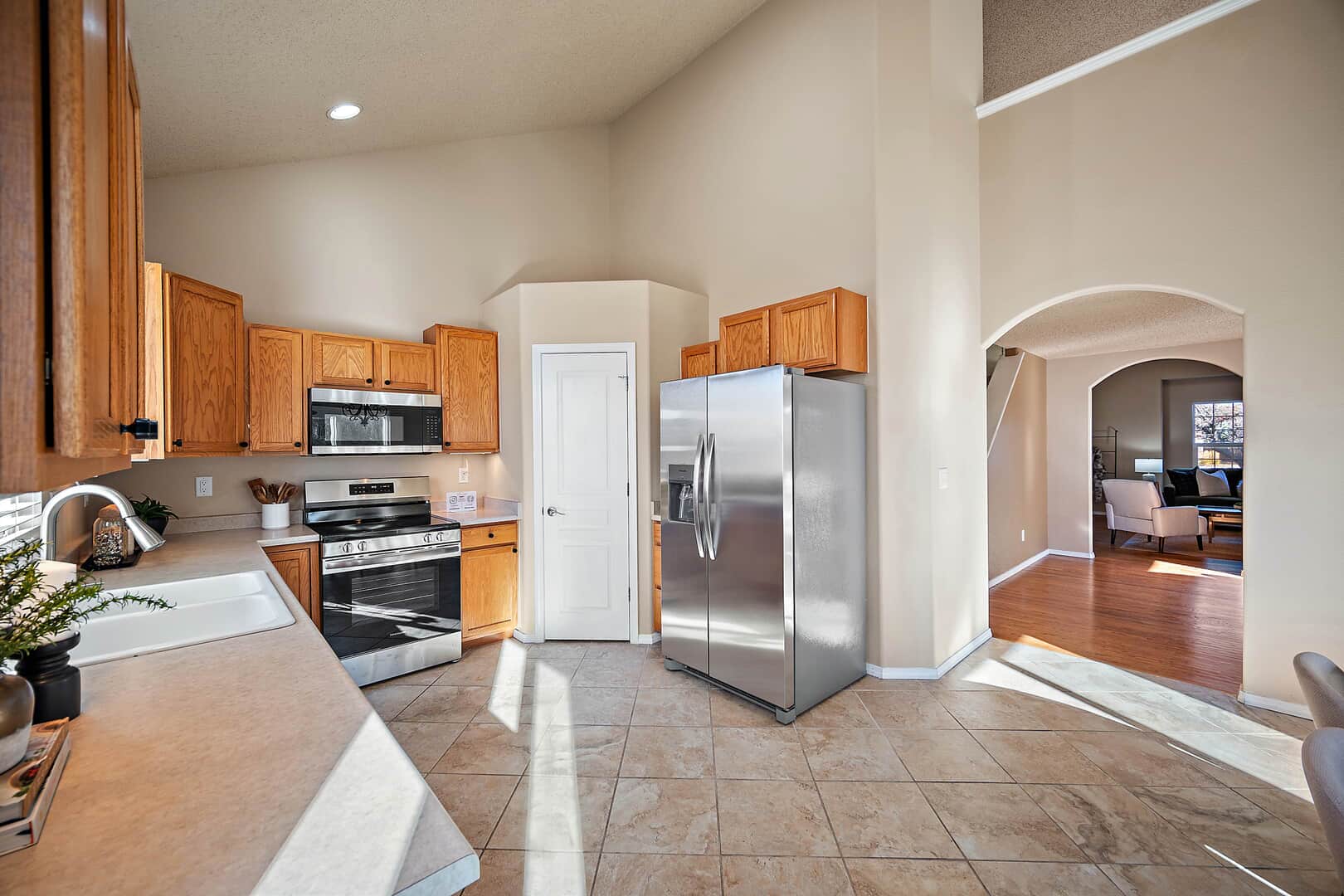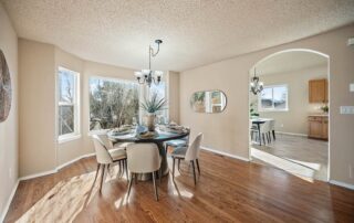This beautifully maintained two-story home features new exterior paint and all main living spaces on the main level. Step inside to a welcoming entryway with a vaulted ceiling and hardwood floors that flow into the spacious family room with a cozy gas fireplace that is perfect for relaxing or gathering with family. Continue into the oversized formal dining room, also with hardwood floors and a bay window that fills the space with natural light. Down the hallway, hardwood continues past the powder bath space with laminate flooring and leads to the dedicated laundry area and main-level primary suite. The primary bedroom offers ample space with new carpet, a double closet plus an additional walk-in closet, and the adjoining five-piece bath features new LVP flooring, dual sinks, an oversized soaking tub, and a separate shower. Head back down the hall and step into the open-concept eat-in kitchen, complete with tile floors, a generous dining area, and brand-new stainless steel appliances. Off the kitchen, step onto the oversized deck that is perfect for grilling, dining, or enjoying stunning mountain views and the open space and nearby walking trails. Upstairs, a versatile loft with built-in cabinetry provides the perfect area for a home office, study, or additional lounge space. Two additional bedrooms—each featuring double closets—and a full bath complete the upper level. Downstairs, a large unfinished basement offers endless possibilities for future expansion, whether you envision a recreation room, extra bedrooms, or a home gym.