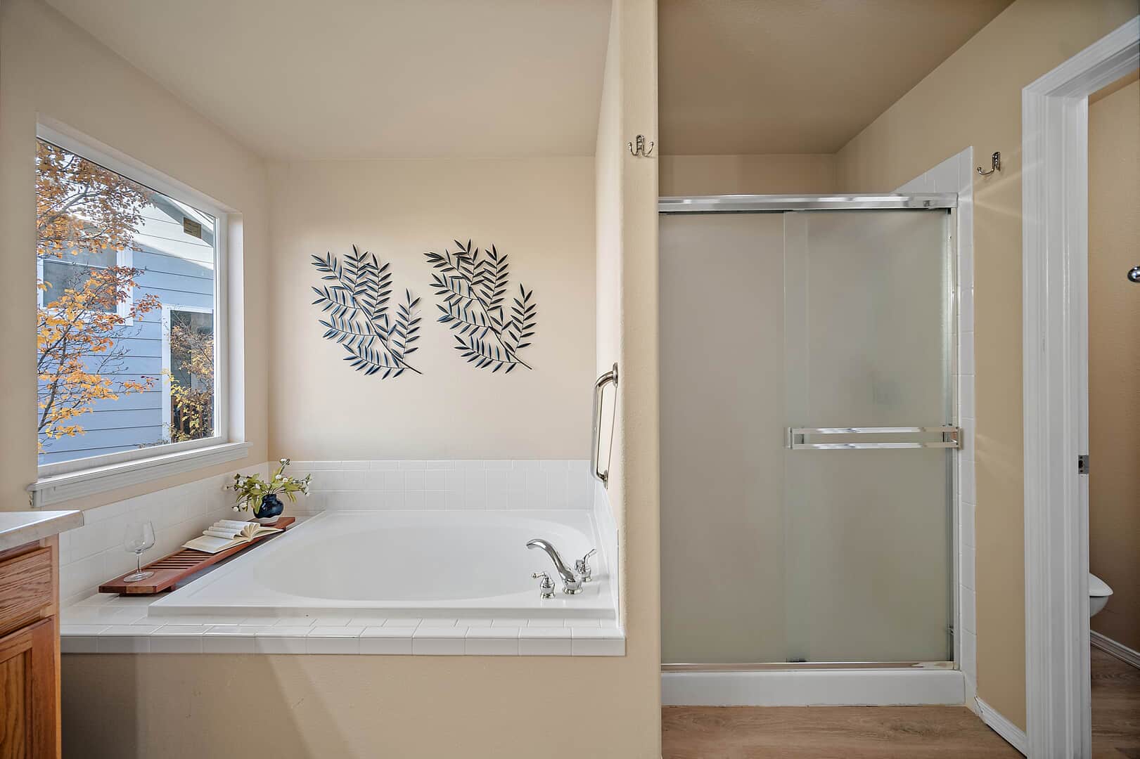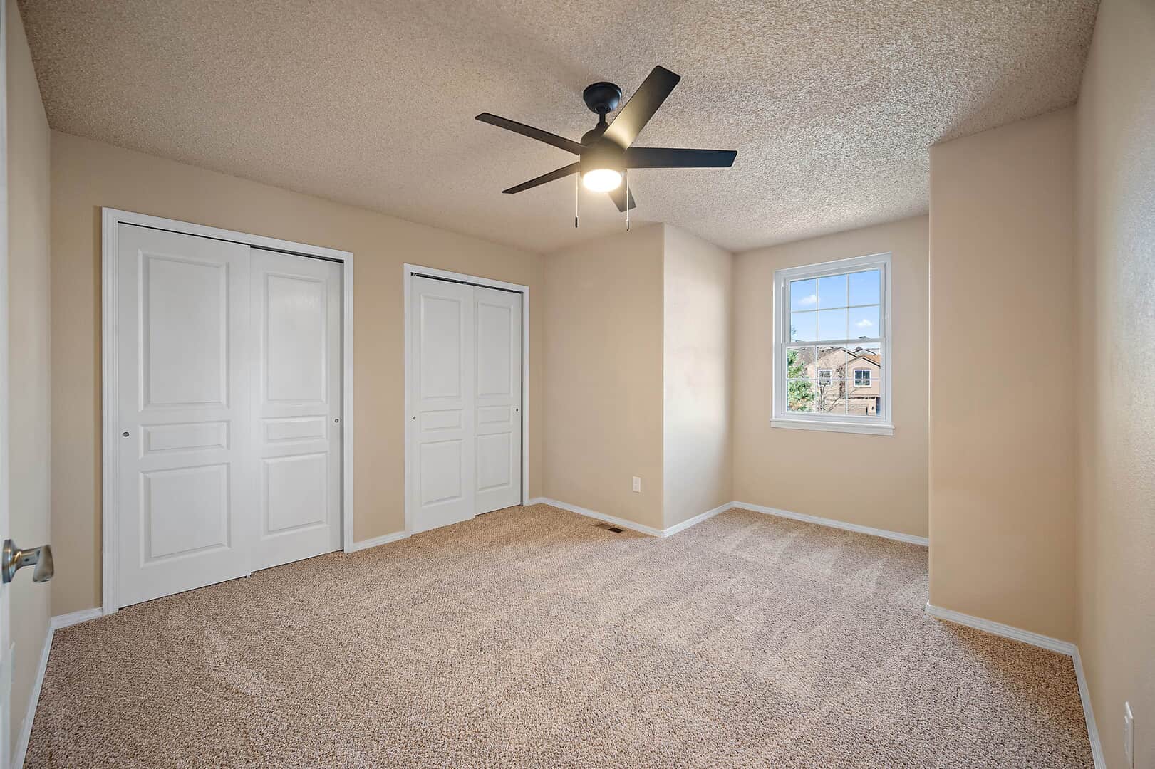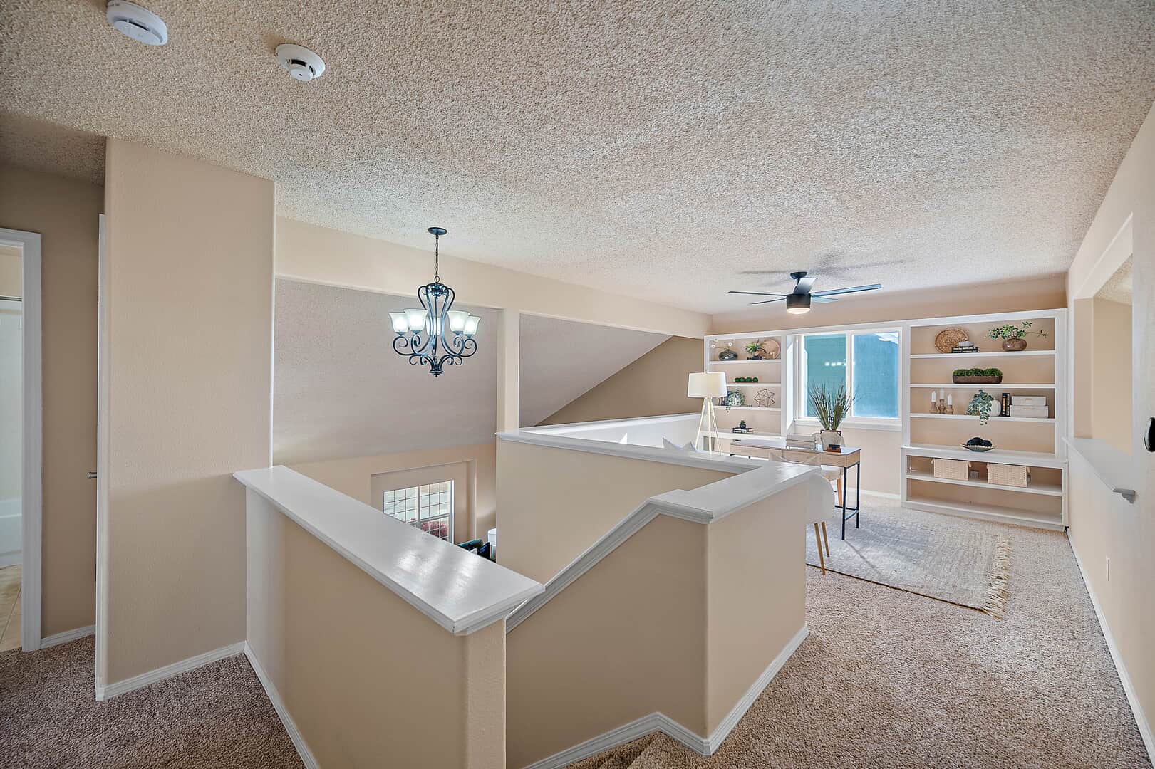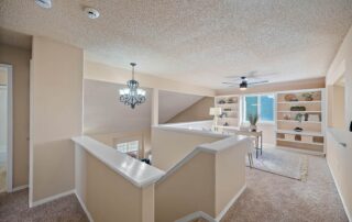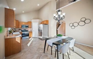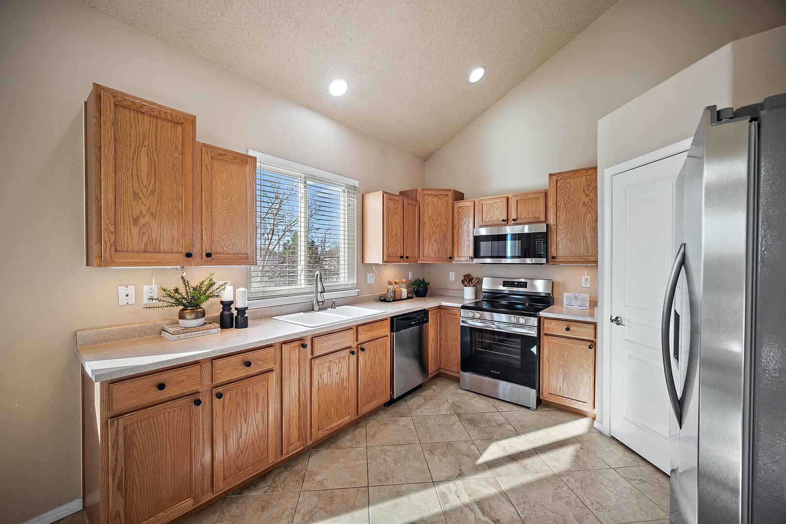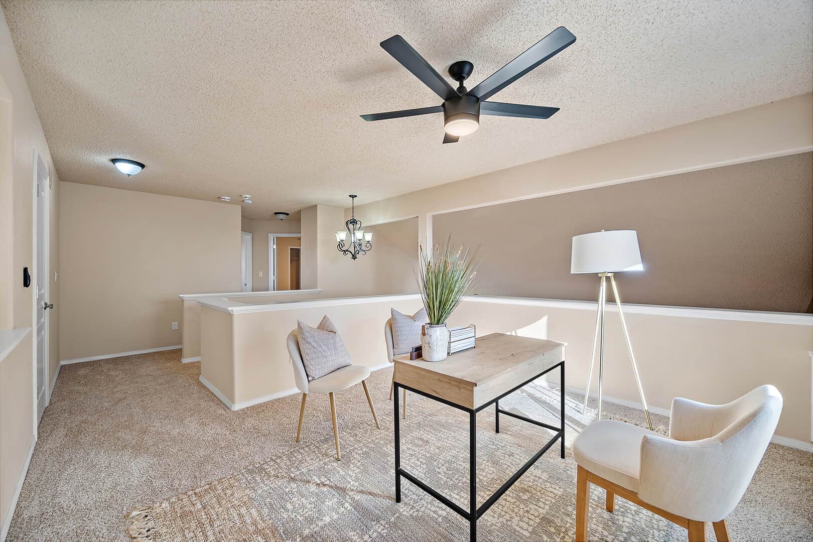 This beautifully maintained two-story home features new exterior paint and all main living spaces on the main level. Step inside to a welcoming entryway with a vaulted ceiling and hardwood floors that flow into the spacious family room with a cozy gas fireplace that is perfect for relaxing or gathering with family. Continue into the oversized formal dining room, also with hardwood floors and a bay window that fills the space with natural light. Down the hallway, hardwood continues past the powder bath space with laminate flooring and leads to the dedicated laundry area and main-level primary suite. The primary bedroom offers ample space with new carpet, a double closet plus an additional walk-in closet, and the adjoining five-piece bath features new LVP flooring, dual sinks, an oversized soaking tub, and a separate shower. Head back down the hall and step into the open-concept eat-in kitchen, complete with tile floors, a generous dining area, and brand-new stainless steel appliances. Off the kitchen, step onto the oversized deck that is perfect for grilling, dining, or enjoying stunning mountain views and the open space and nearby walking trails. Upstairs, a versatile loft with built-in cabinetry provides the perfect area for a home office, study, or additional lounge space. Two additional bedrooms—each featuring double closets—and a full bath complete the upper level. Downstairs, a large unfinished basement offers endless possibilities for future expansion, whether you envision a recreation room, extra bedrooms, or a home gym.