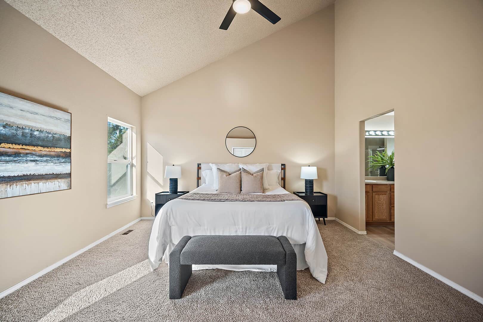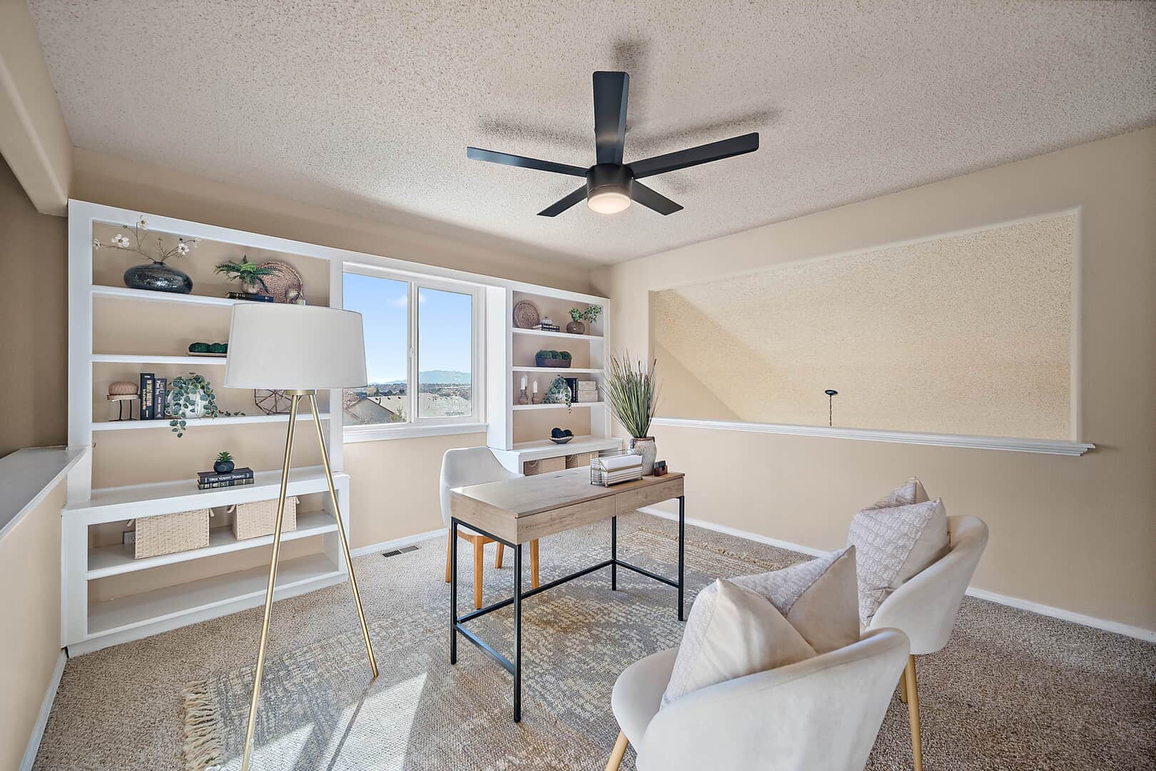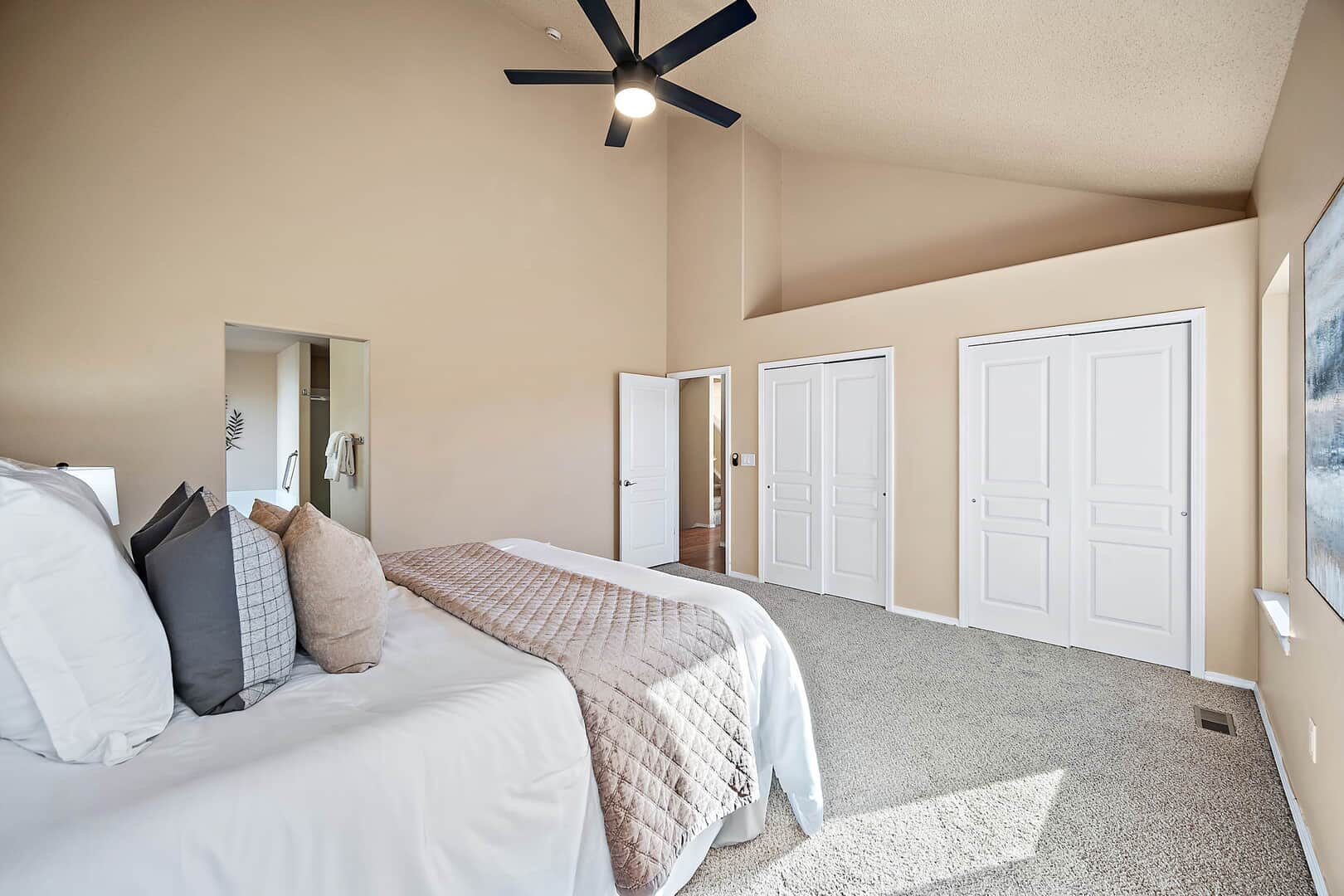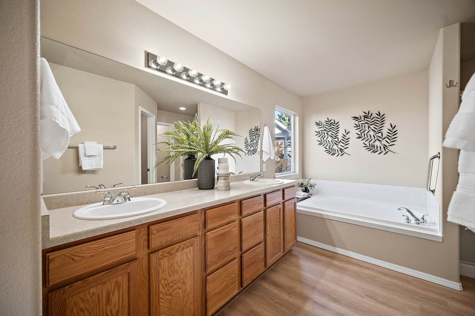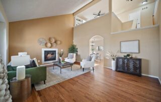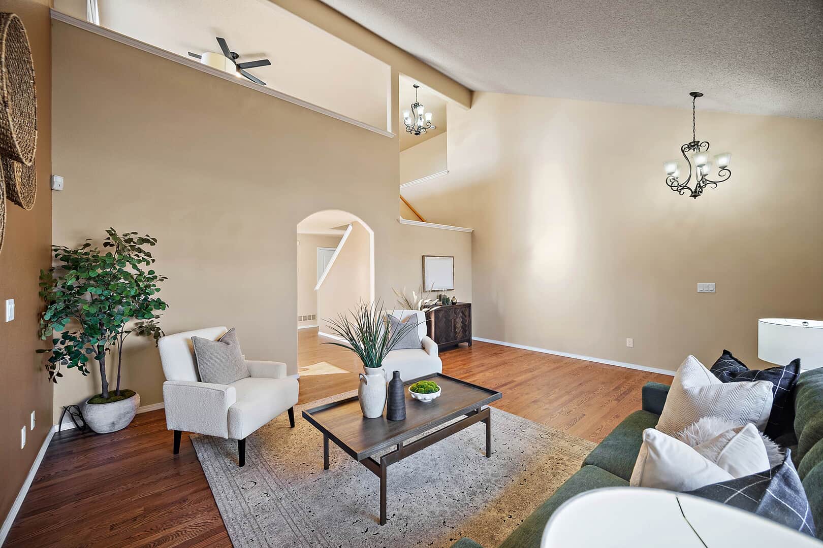 This beautifully maintained two-story home features new exterior paint and all main living spaces on the main level. Step inside to a welcoming entryway with a vaulted ceiling and hardwood floors that flow into the spacious family room with a cozy gas fireplace that is perfect for relaxing or gathering with family. Continue into the oversized formal dining room, also with hardwood floors and a bay window that fills the space with natural light. Down the hallway, hardwood continues past the powder bath space with laminate flooring and leads to the dedicated laundry area and main-level primary suite. The primary bedroom offers ample space with new carpet, a double closet plus an additional walk-in closet, and the adjoining five-piece bath features new LVP flooring, dual sinks, an oversized soaking tub, and a separate shower. Head back down the hall and step into the open-concept eat-in kitchen, complete with tile floors, a generous dining area, and brand-new stainless steel appliances. Off the kitchen, step onto the oversized deck that is perfect for grilling, dining, or enjoying stunning mountain views and the open space and nearby walking trails. Upstairs, a versatile loft with built-in cabinetry provides the perfect area for a home office, study, or additional lounge space. Two additional bedrooms—each featuring double closets—and a full bath complete the upper level. Downstairs, a large unfinished basement offers endless possibilities for future expansion, whether you envision a recreation room, extra bedrooms, or a home gym.