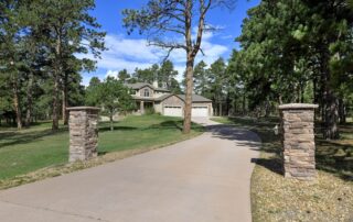 Located on a quiet cul-de-sac and nestled in the Ponderosa Pines on nearly THREE AND A HALF acres in Prestigious Kings Deer, this Stucco and Stone Two-Story Walk-out is True Colorado Luxury Living! Stamped concrete walkway leads to the covered entry with tongue & groove ceiling. Vaulted hardwood entry has art niche with marble mosaic tile and opens through arch to formal dining room w/rock wall, tray ceiling, art niche, wainscotting and kitchen access. Gourmet Kitchen has granite counters, extended height cabinetry, Stainless appliances include 6-burner gas stove w/griddle. oven & proofing oven, massive center island w/storage, vegetable sink and full secondary oven, and pass through bar with counter seating. Generous Breakfast Bay has walkout to private, covered composite deck w/wiring for speakers and access to fenced dog run. Enormous Living Room has two-story windows to let the natural wooded views in, and a stone wall with gas fireplace. Main level walk-out office off of powder room has coffered ceiling and built-in bookcases. Master Bedroom has 2-sided gas fireplace shared with 5-piece master bath with jetted tub and walk-in shower as well as 14 x 7 walk-in closet. Two more sizable bedrooms w/extended closets and a full bath w/double vanity upstairs. Enormous lower level Family Room boasts stone gas fireplace, entertainment center, game closet and wet bar, walks out to stamped concrete side patio. Spacious bedroom and full bath w/bidet and granite counters has private access to exercise room w/TV. Enormous storage room with shelving as well as under stair storage. Main level laundry/mudroom with washer, dryer, utility sink, built-in ironing board and bench with storage and closet has access to FOUR PLUS car garage with workbench, freezer, and loads of shelving! Expansive backyard with trampoline, swings and room for more in a park-like setting. Intercom, Security System, Central Air, 2 water heaters & furnaces. NEW CARPET & PAINT THROUGHOUT! A TRUE RETREAT!