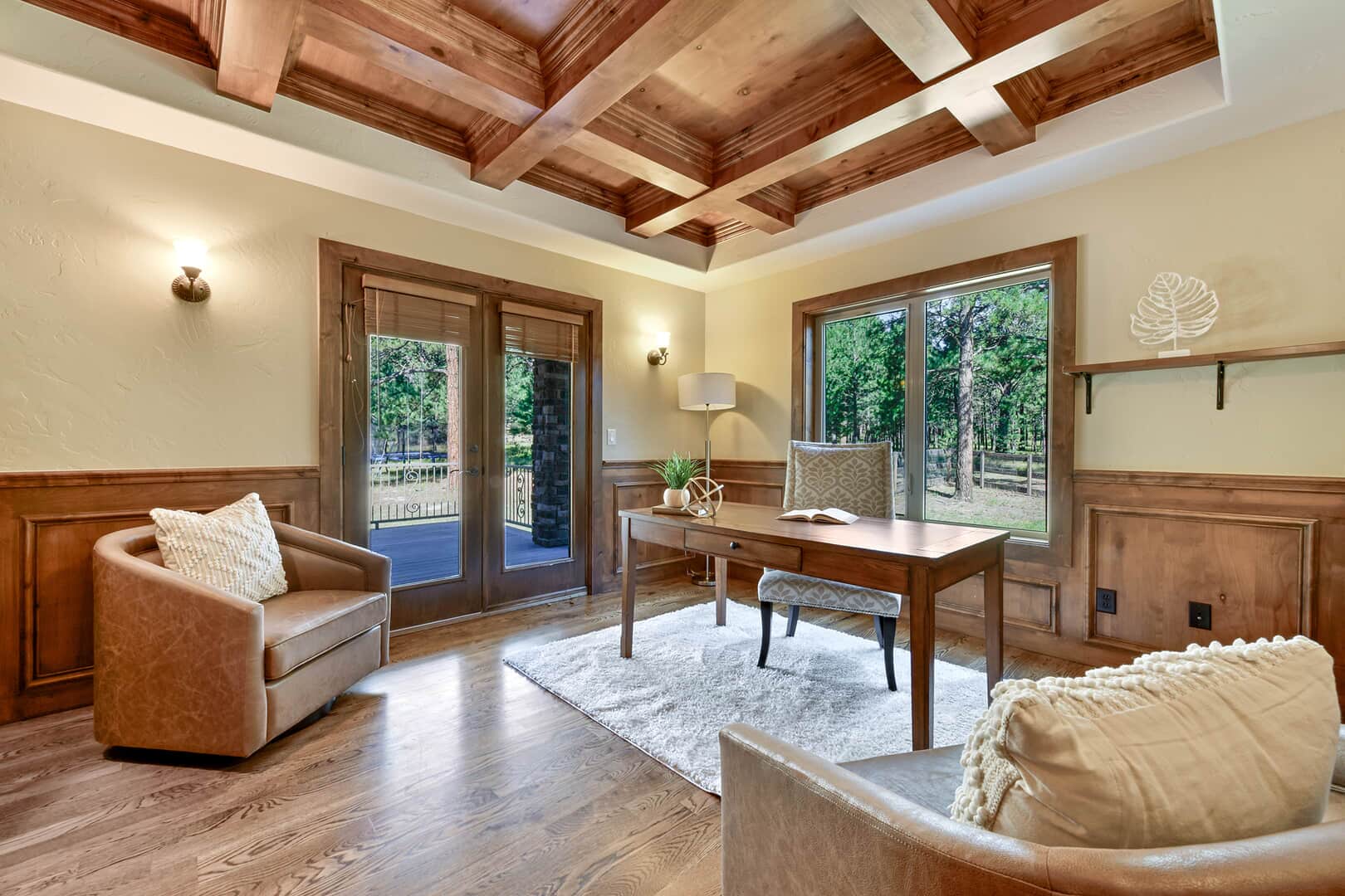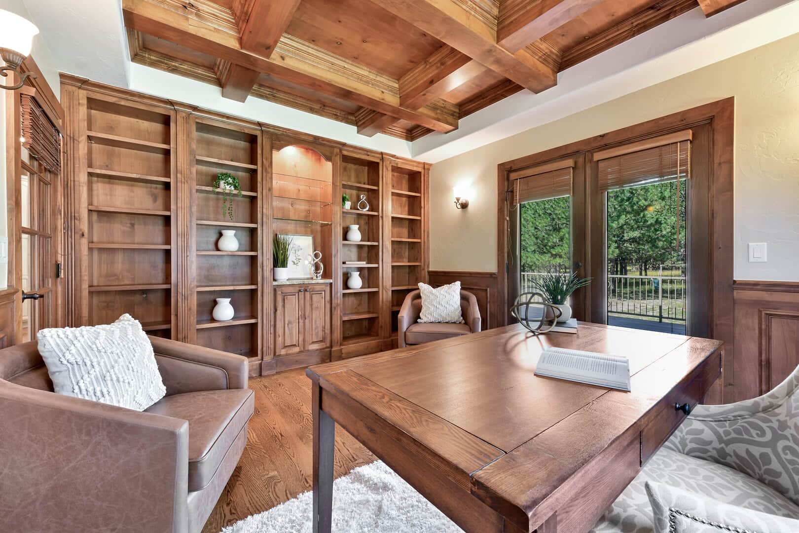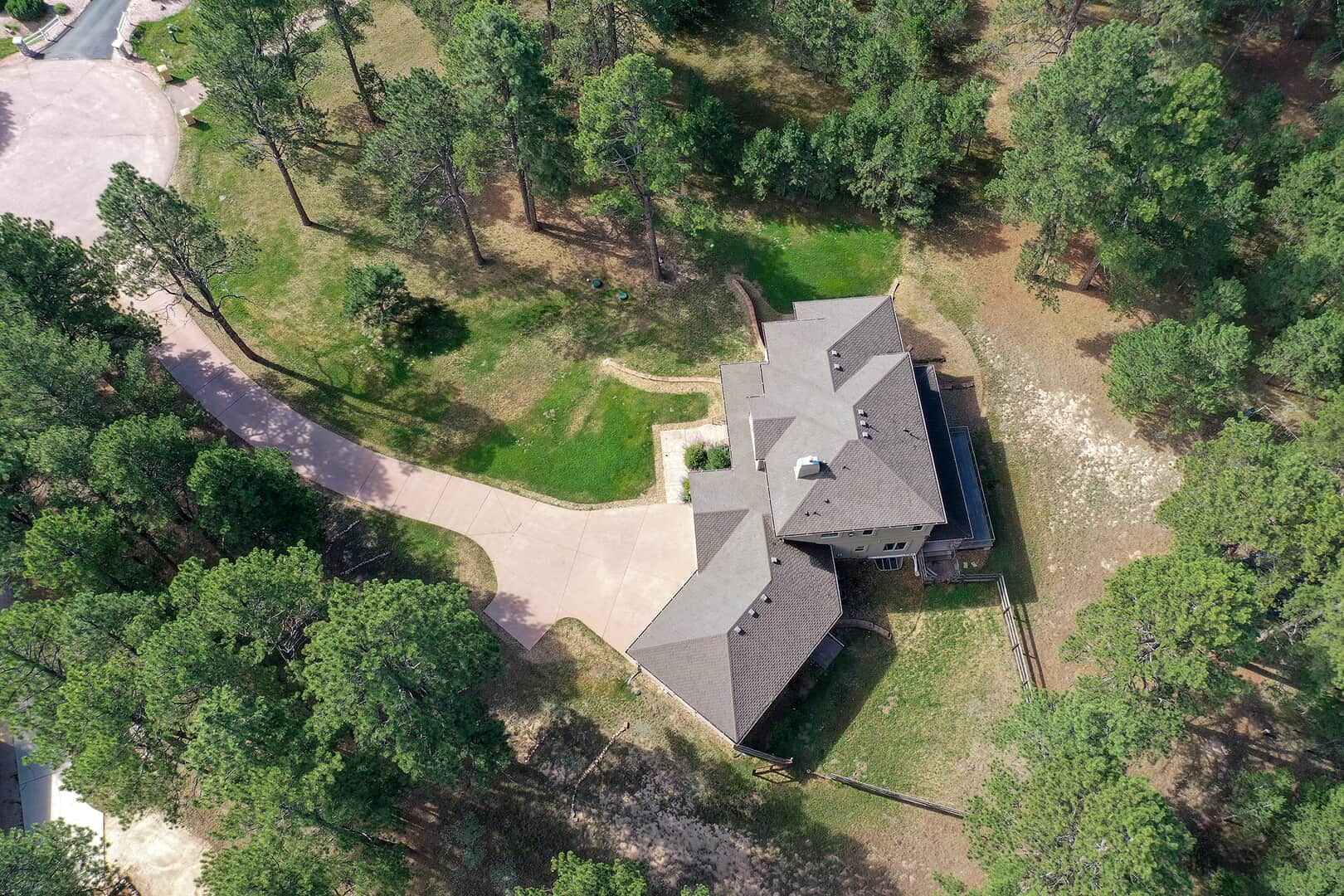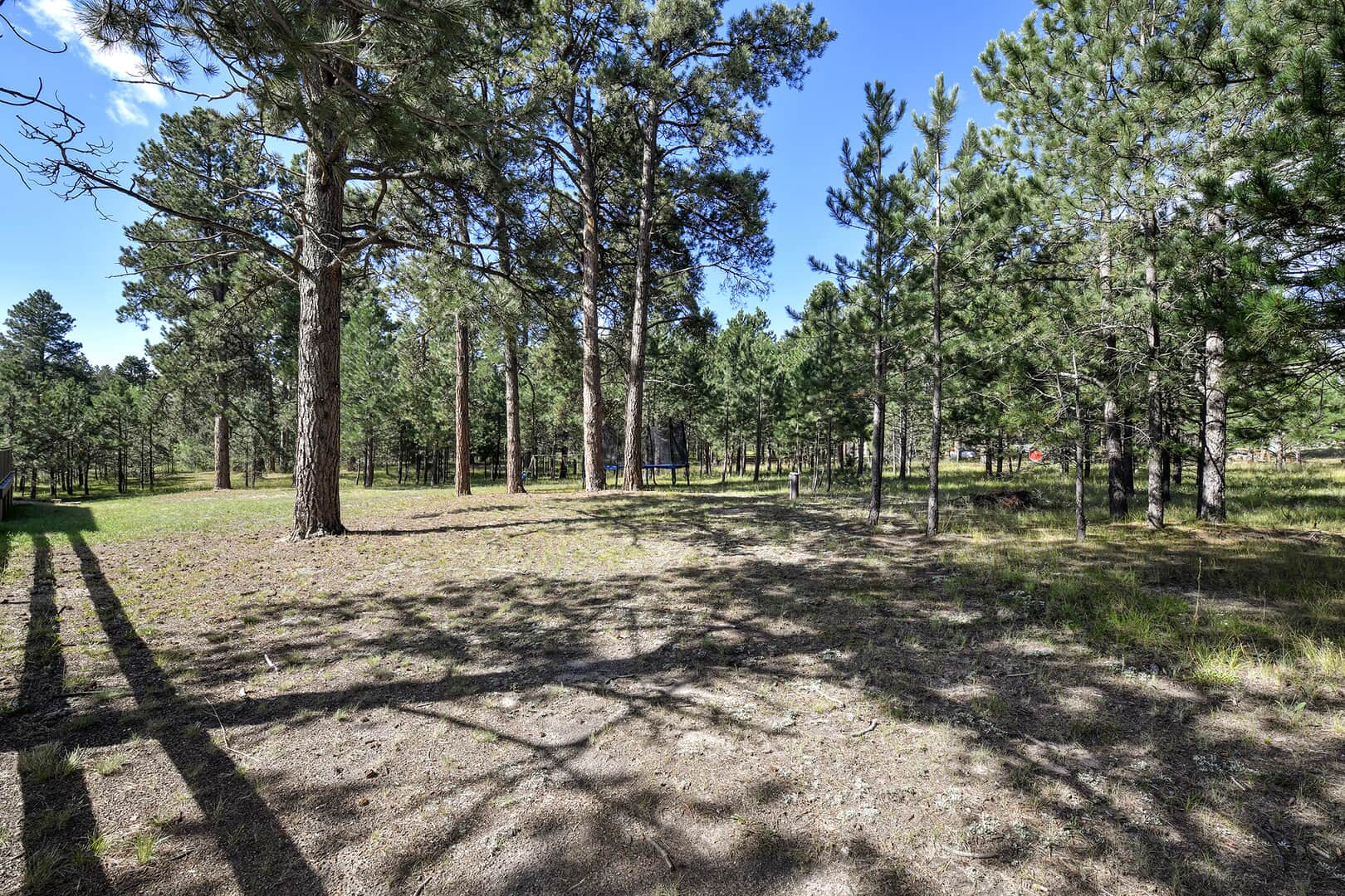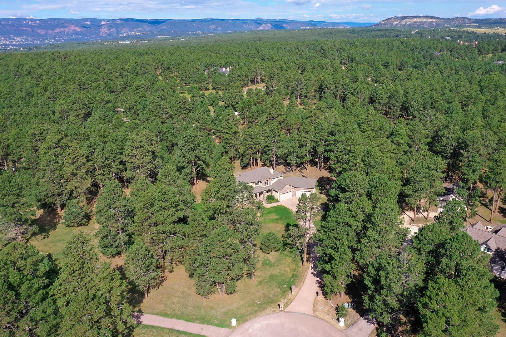 Located on a quiet cul-de-sac and nestled in the Ponderosa Pines on nearly THREE AND A HALF acres in Prestigious Kings Deer, this Stucco and Stone Two-Story Walk-out is True Colorado Luxury Living! Stamped concrete walkway leads to the covered entry with tongue & groove ceiling. Vaulted hardwood entry has art niche with marble mosaic tile and opens through arch to formal dining room w/rock wall, tray ceiling, art niche, wainscotting and kitchen access. Gourmet Kitchen has granite counters, extended height cabinetry, Stainless appliances include 6-burner gas stove w/griddle. oven & proofing oven, massive center island w/storage, vegetable sink and full secondary oven, and pass through bar with counter seating. Generous Breakfast Bay has walkout to private, covered composite deck w/wiring for speakers and access to fenced dog run. Enormous Living Room has two-story windows to let the natural wooded views in, and a stone wall with gas fireplace. Main level walk-out office off of powder room has coffered ceiling and built-in bookcases. Master Bedroom has 2-sided gas fireplace shared with 5-piece master bath with jetted tub and walk-in shower as well as 14 x 7 walk-in closet. Two more sizable bedrooms w/extended closets and a full bath w/double vanity upstairs. Enormous lower level Family Room boasts stone gas fireplace, entertainment center, game closet and wet bar, walks out to stamped concrete side patio. Spacious bedroom and full bath w/bidet and granite counters has private access to exercise room w/TV. Enormous storage room with shelving as well as under stair storage. Main level laundry/mudroom with washer, dryer, utility sink, built-in ironing board and bench with storage and closet has access to FOUR PLUS car garage with workbench, freezer, and loads of shelving! Expansive backyard with trampoline, swings and room for more in a park-like setting. Intercom, Security System, Central Air, 2 water heaters & furnaces. NEW CARPET & PAINT THROUGHOUT! A TRUE RETREAT!