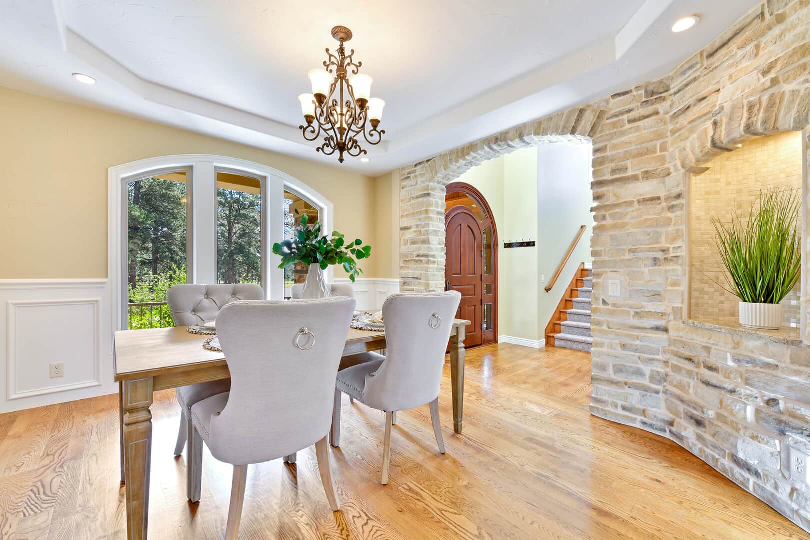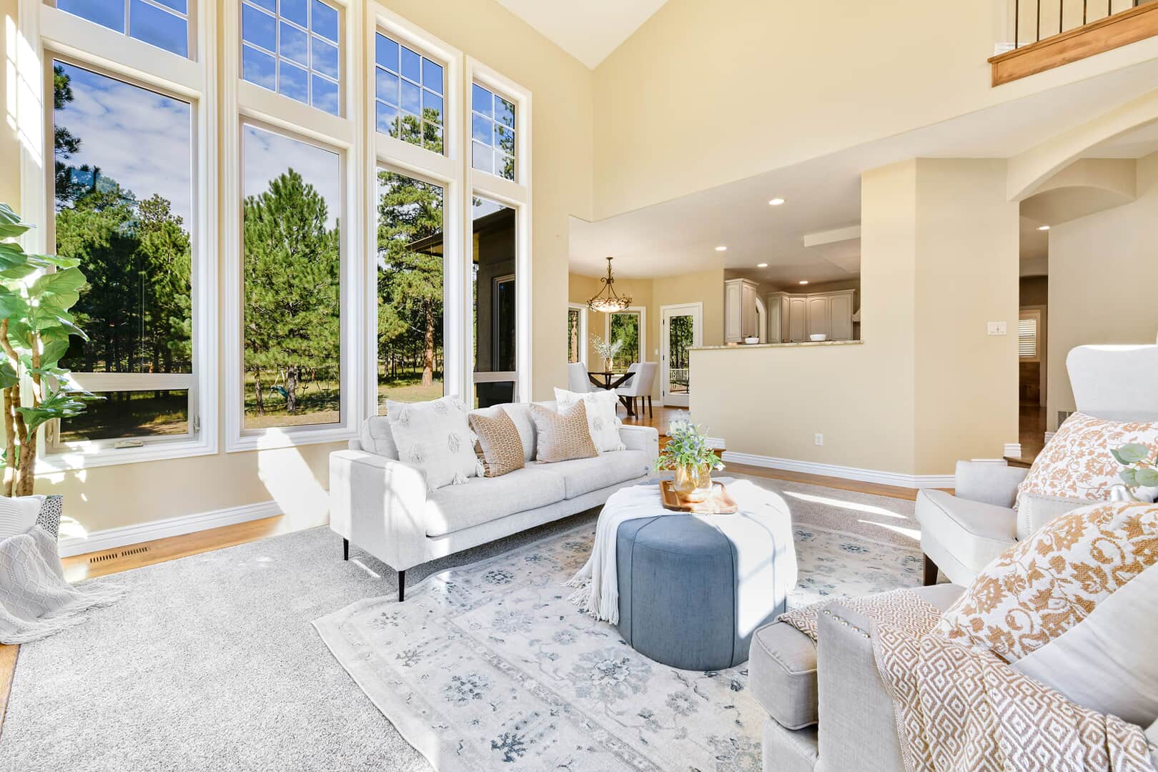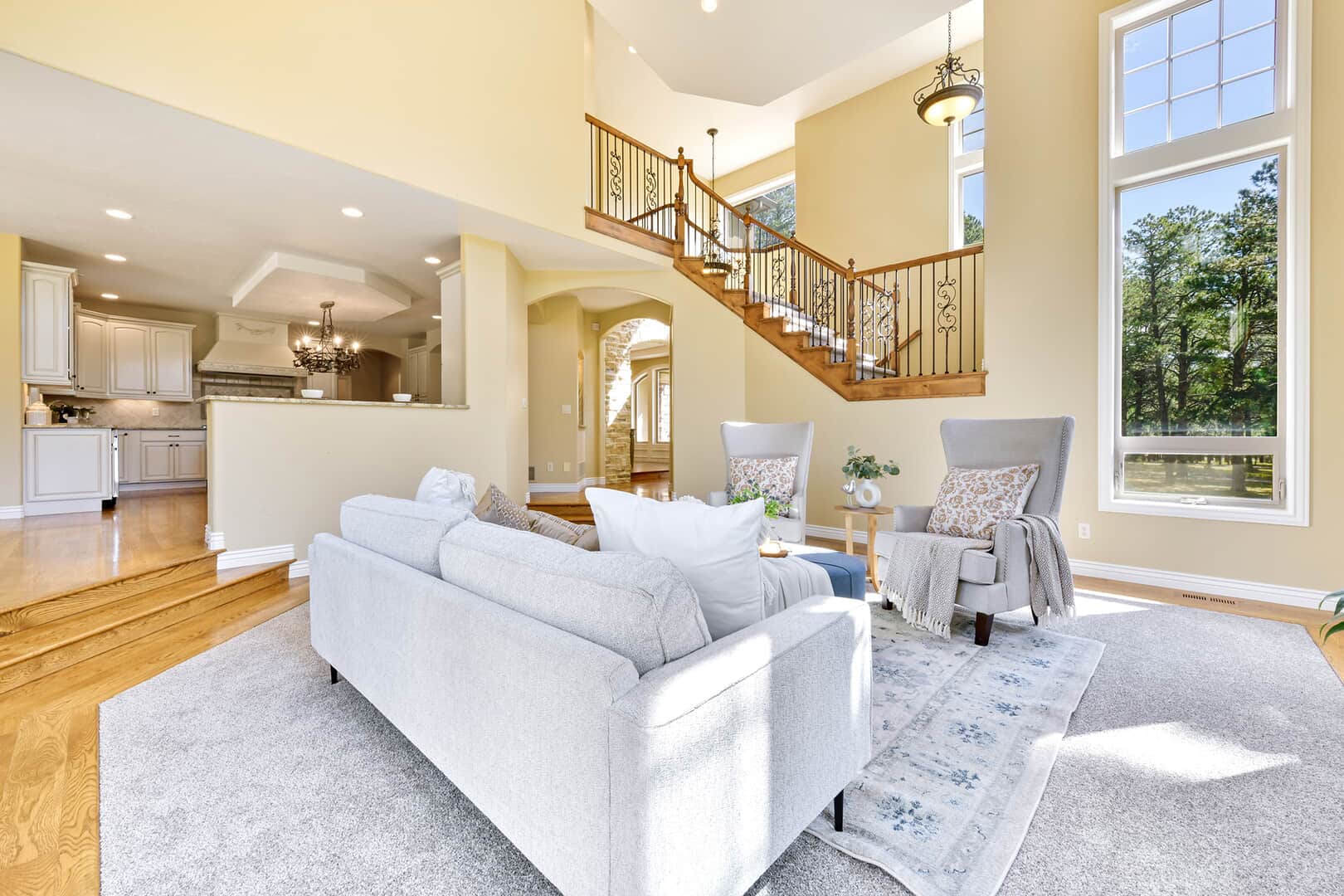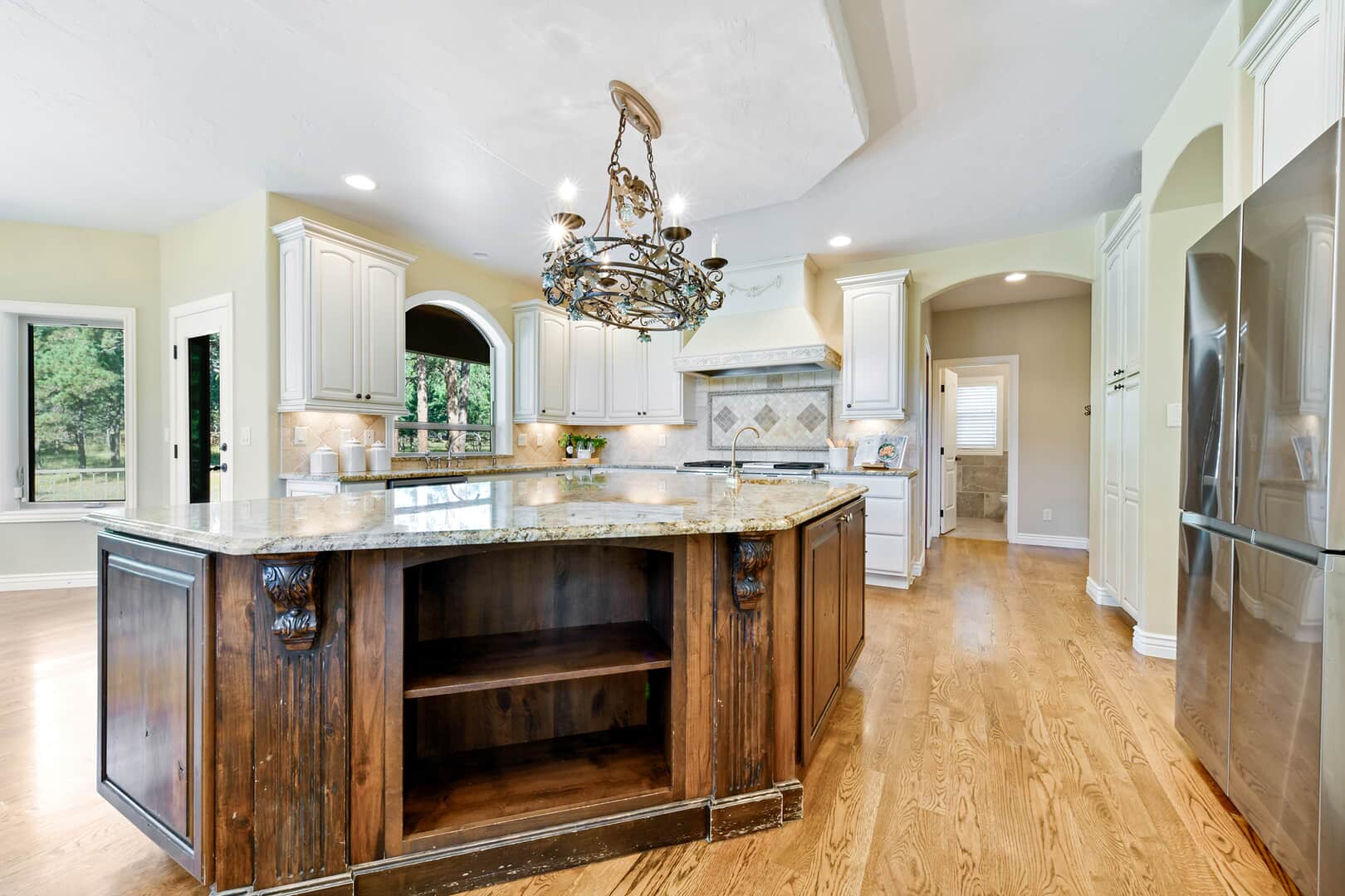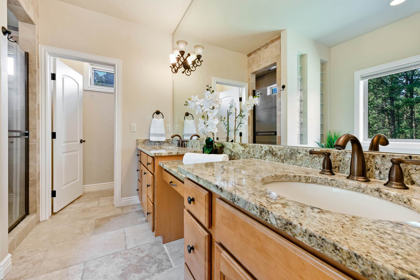 Located on a quiet cul-de-sac and nestled in the Ponderosa Pines on nearly THREE AND A HALF acres in Prestigious Kings Deer, this Stucco and Stone Two-Story Walk-out is True Colorado Luxury Living! Stamped concrete walkway leads to the covered entry with tongue & groove ceiling. Vaulted hardwood entry has art niche with marble mosaic tile and opens through arch to formal dining room w/rock wall, tray ceiling, art niche, wainscotting and kitchen access. Gourmet Kitchen has granite counters, extended height cabinetry, Stainless appliances include 6-burner gas stove w/griddle. oven & proofing oven, massive center island w/storage, vegetable sink and full secondary oven, and pass through bar with counter seating. Generous Breakfast Bay has walkout to private, covered composite deck w/wiring for speakers and access to fenced dog run. Enormous Living Room has two-story windows to let the natural wooded views in, and a stone wall with gas fireplace. Main level walk-out office off of powder room has coffered ceiling and built-in bookcases. Master Bedroom has 2-sided gas fireplace shared with 5-piece master bath with jetted tub and walk-in shower as well as 14 x 7 walk-in closet. Two more sizable bedrooms w/extended closets and a full bath w/double vanity upstairs. Enormous lower level Family Room boasts stone gas fireplace, entertainment center, game closet and wet bar, walks out to stamped concrete side patio. Spacious bedroom and full bath w/bidet and granite counters has private access to exercise room w/TV. Enormous storage room with shelving as well as under stair storage. Main level laundry/mudroom with washer, dryer, utility sink, built-in ironing board and bench with storage and closet has access to FOUR PLUS car garage with workbench, freezer, and loads of shelving! Expansive backyard with trampoline, swings and room for more in a park-like setting. Intercom, Security System, Central Air, 2 water heaters & furnaces. NEW CARPET & PAINT THROUGHOUT! A TRUE RETREAT!