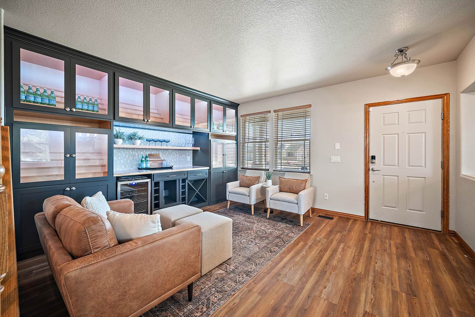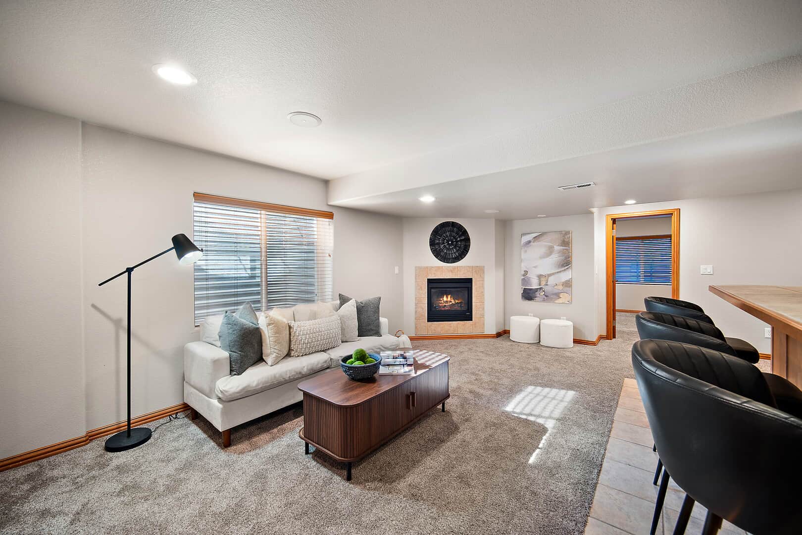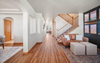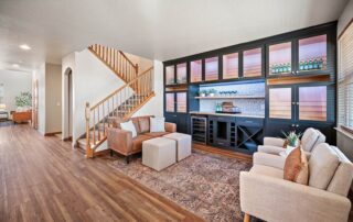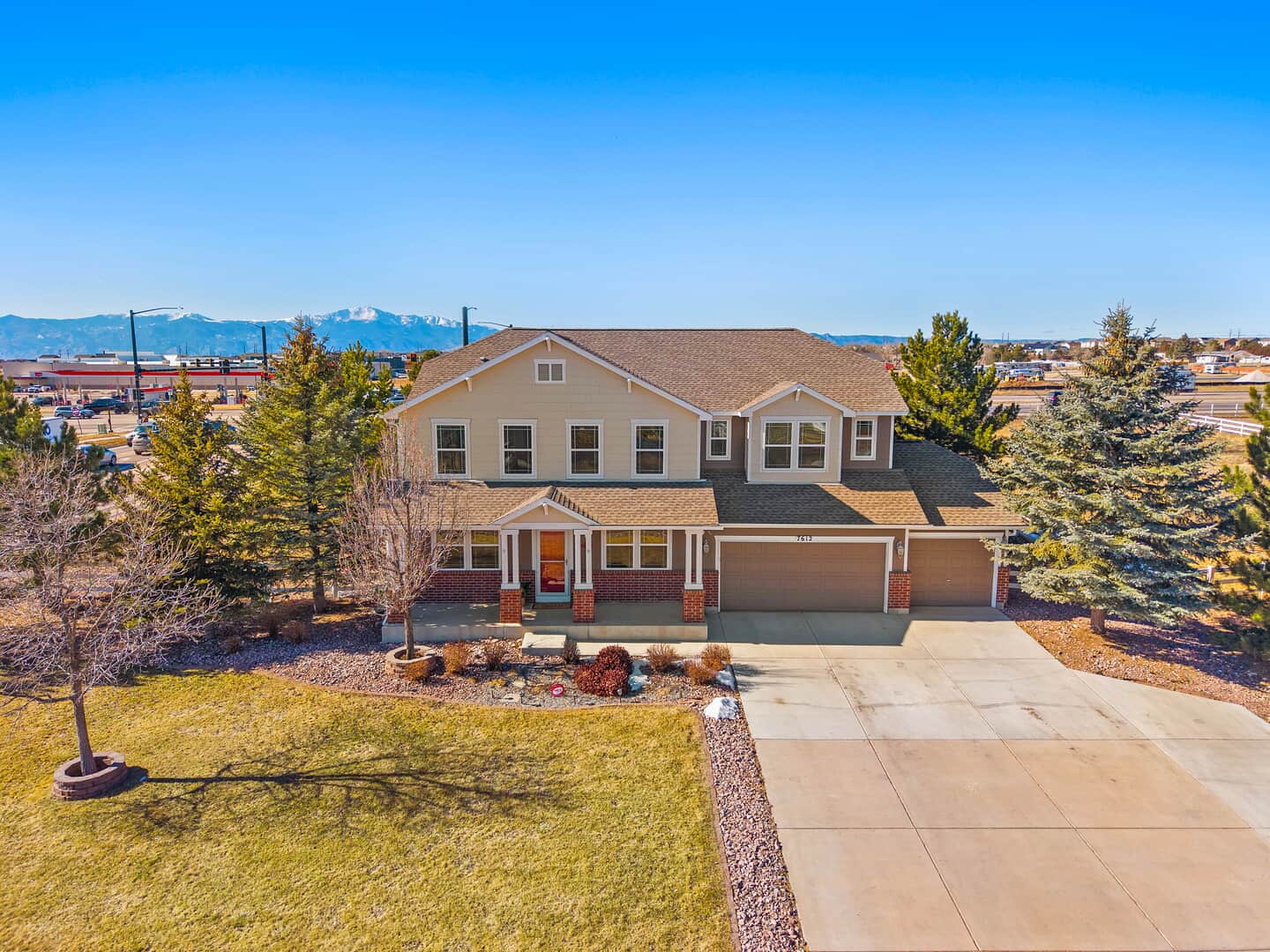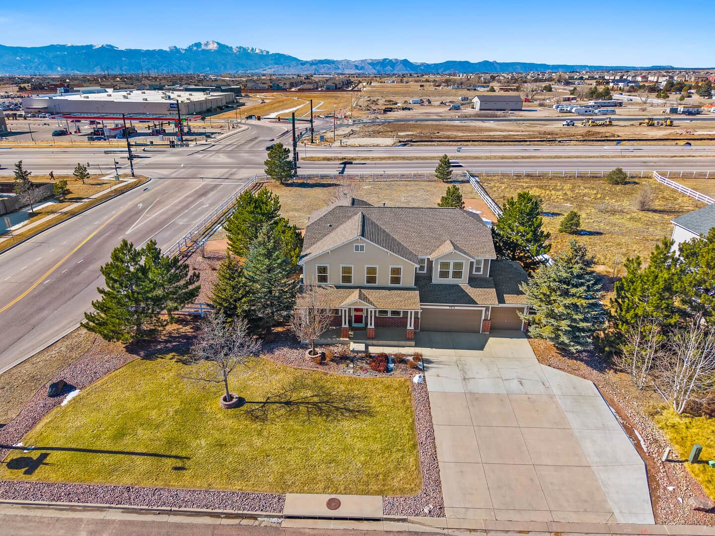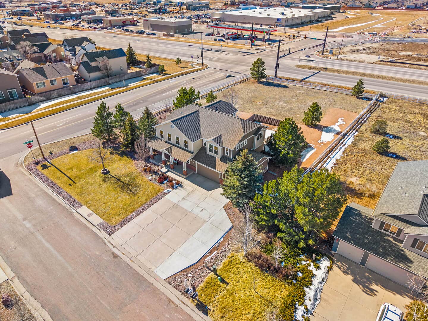 Welcome to this beautifully updated two-story home with a finished basement, perfectly positioned on a spacious corner lot in the desirable Woodmen Hills community. Thoughtfully designed for both everyday living and exceptional entertaining, this home offers expansive living spaces, quality finishes, and remarkable storage throughout. Just off the entry, a stunning Entertaining Lounge showcases a custom built-in beverage center with wine fridge and designer cabinetry—an inviting space to host guests or relax in style. The main level continues w/a large dining room, an eat-in gourmet kitchen with pantry, and a light-filled living room featuring a fireplace and oversized windows. A private main-level office with French doors and custom built-ins, along with a convenient half bath, complete the space. Upstairs, enjoy a generous loft with built-in shelving, a luxurious primary suite with window seating and storage, an impressive walk-in closet with island, and a spa-like five-piece bath. Two additional large bedrooms and a full bath provide comfort and flexibility. The finished basement is an entertainer’s dream, featuring a theater room with projector and drop-down screen, a spacious family room w/fireplace and wet bar, an additional bedroom, a 3/4 bath, and abundant storage including multiple closets and a mechanical room. Outdoor living shines with a massive covered concrete patio, Bluetooth speakers, a Michael Phelps Master Spa hot tub, natural gas BBQ hookup, and ample space to gather and unwind. An oversized four-car garage, with one bay thoughtfully enclosed as a versatile shop or hobby space, further enhances the home’s exceptional functionality and storage. Located just east of Colorado Springs, Woodmen Hills offers parks, recreation, access to Antler Creek Golf Course, nearby shopping and dining, and the added benefit of no city sales tax, delivering outstanding value and lifestyle. Completely updated and move-in ready, offering exceptional storage and space.