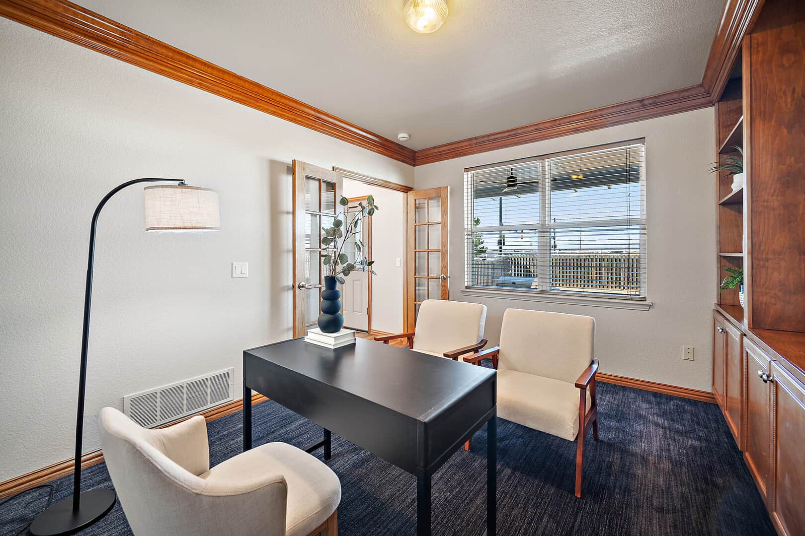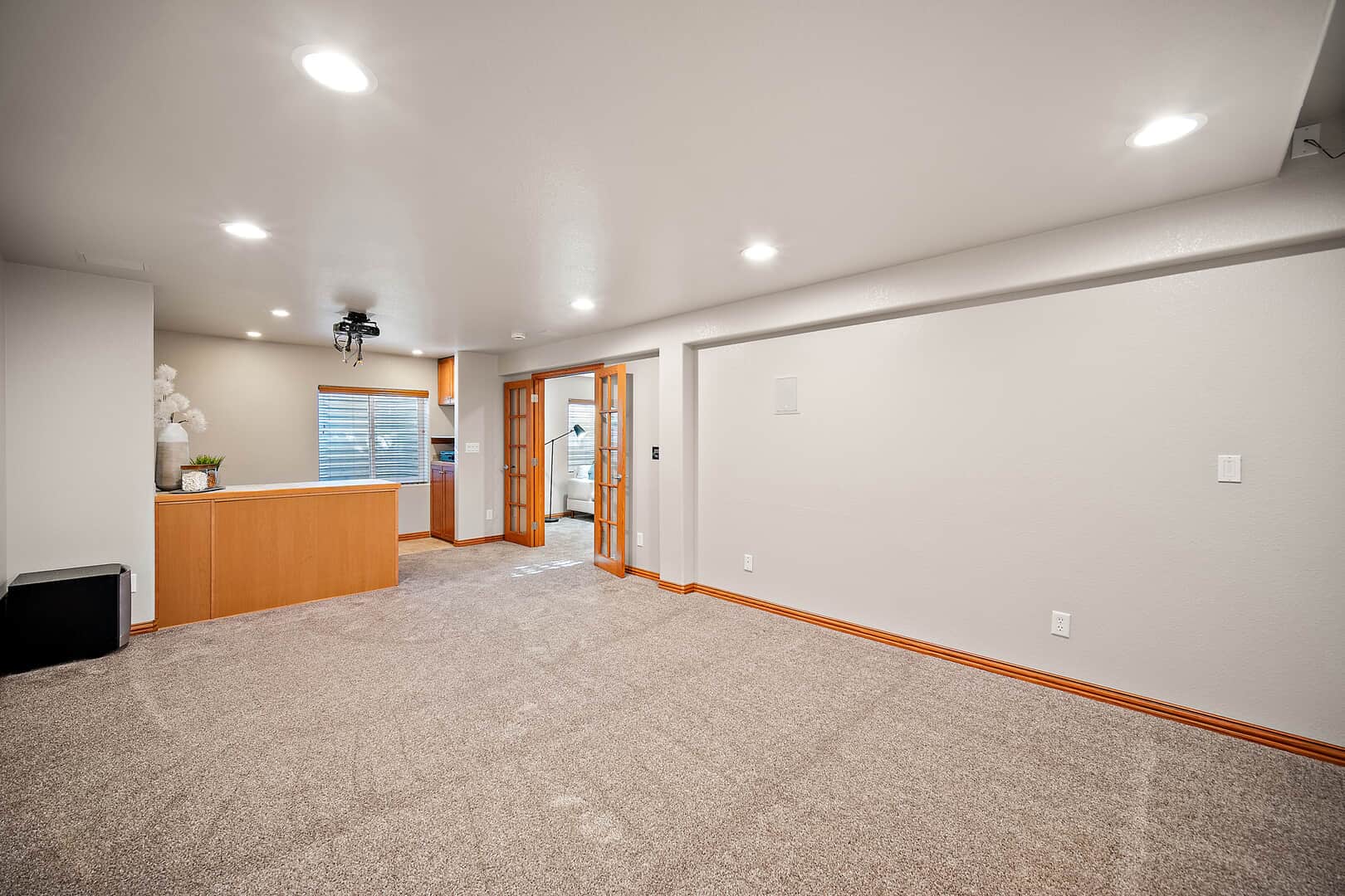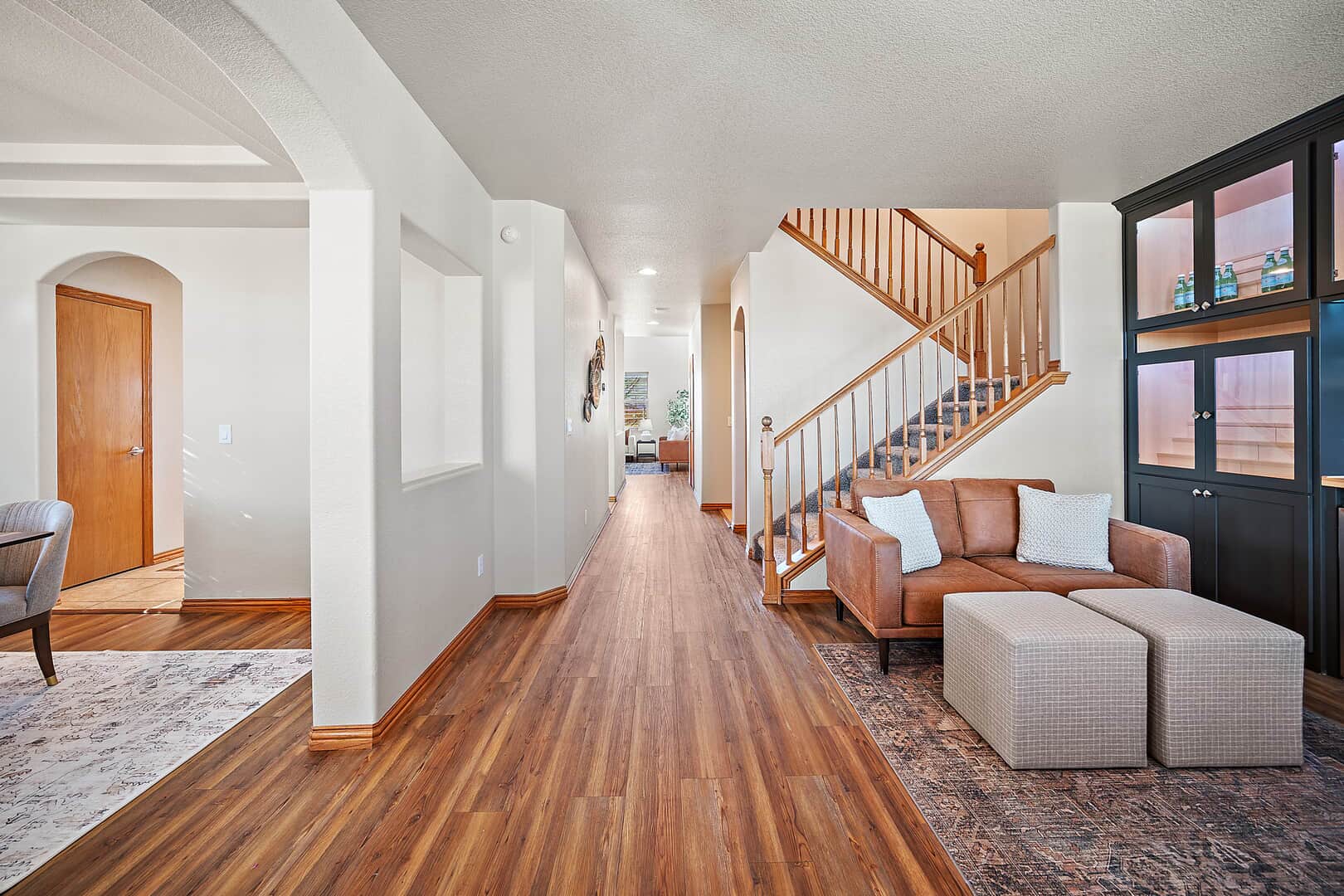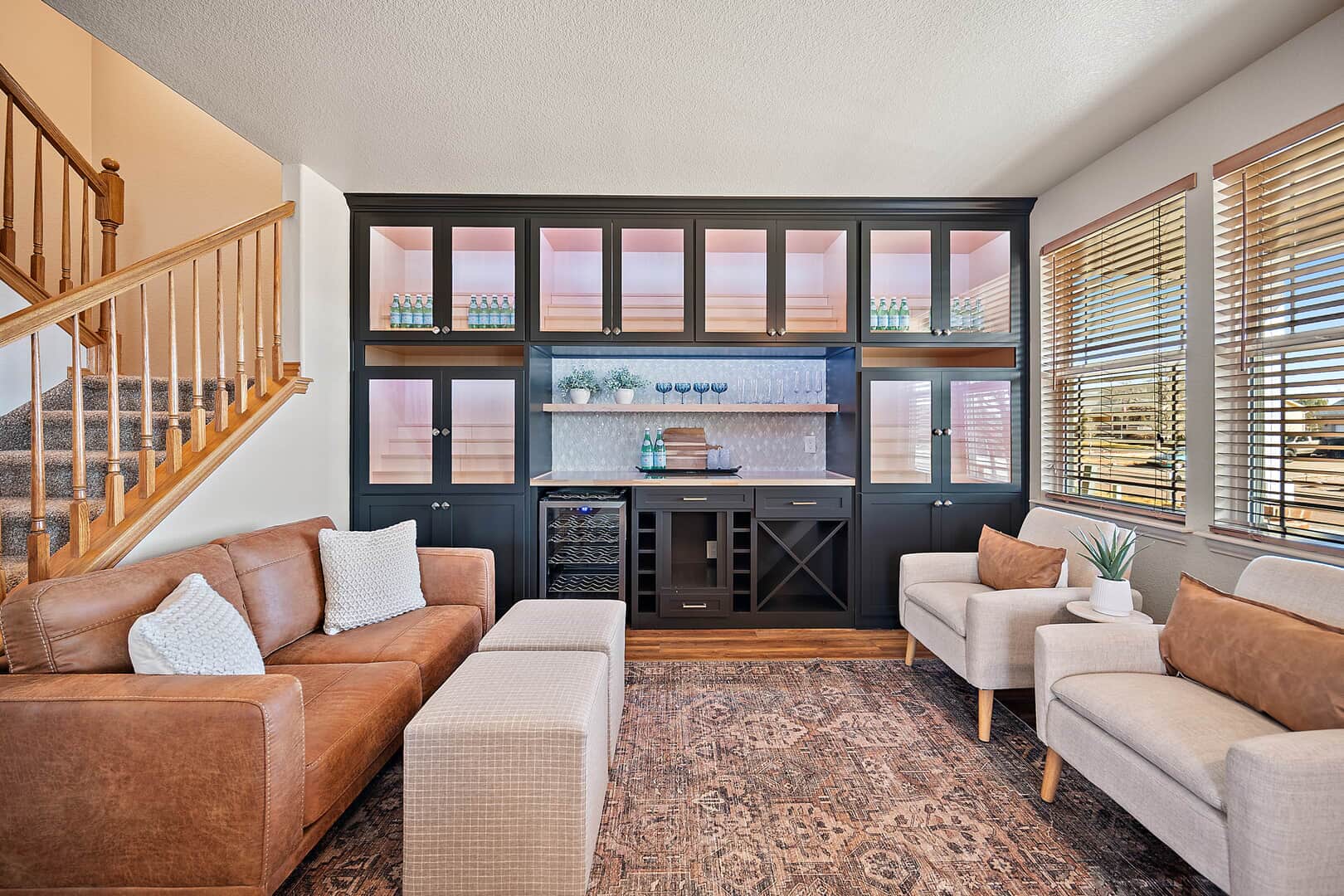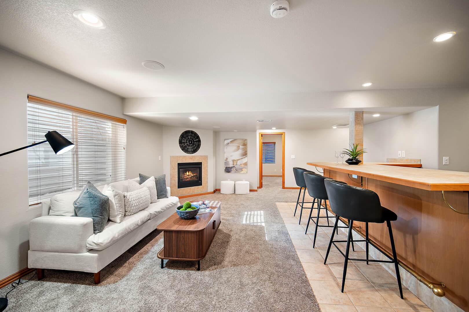 Welcome to this beautifully updated two-story home with a finished basement, perfectly positioned on a spacious corner lot in the desirable Woodmen Hills community. Thoughtfully designed for both everyday living and exceptional entertaining, this home offers expansive living spaces, quality finishes, and remarkable storage throughout. Just off the entry, a stunning Entertaining Lounge showcases a custom built-in beverage center with wine fridge and designer cabinetry—an inviting space to host guests or relax in style. The main level continues w/a large dining room, an eat-in gourmet kitchen with pantry, and a light-filled living room featuring a fireplace and oversized windows. A private main-level office with French doors and custom built-ins, along with a convenient half bath, complete the space. Upstairs, enjoy a generous loft with built-in shelving, a luxurious primary suite with window seating and storage, an impressive walk-in closet with island, and a spa-like five-piece bath. Two additional large bedrooms and a full bath provide comfort and flexibility. The finished basement is an entertainer’s dream, featuring a theater room with projector and drop-down screen, a spacious family room w/fireplace and wet bar, an additional bedroom, a 3/4 bath, and abundant storage including multiple closets and a mechanical room. Outdoor living shines with a massive covered concrete patio, Bluetooth speakers, a Michael Phelps Master Spa hot tub, natural gas BBQ hookup, and ample space to gather and unwind. An oversized four-car garage, with one bay thoughtfully enclosed as a versatile shop or hobby space, further enhances the home’s exceptional functionality and storage. Located just east of Colorado Springs, Woodmen Hills offers parks, recreation, access to Antler Creek Golf Course, nearby shopping and dining, and the added benefit of no city sales tax, delivering outstanding value and lifestyle. Completely updated and move-in ready, offering exceptional storage and space.