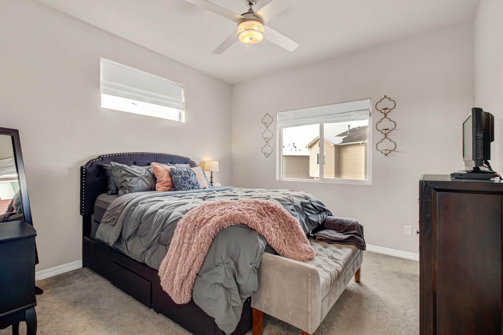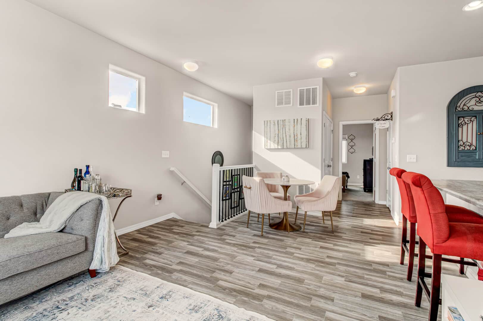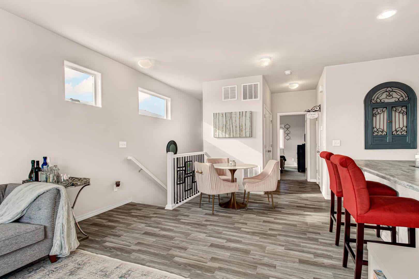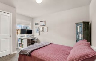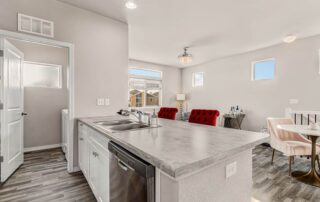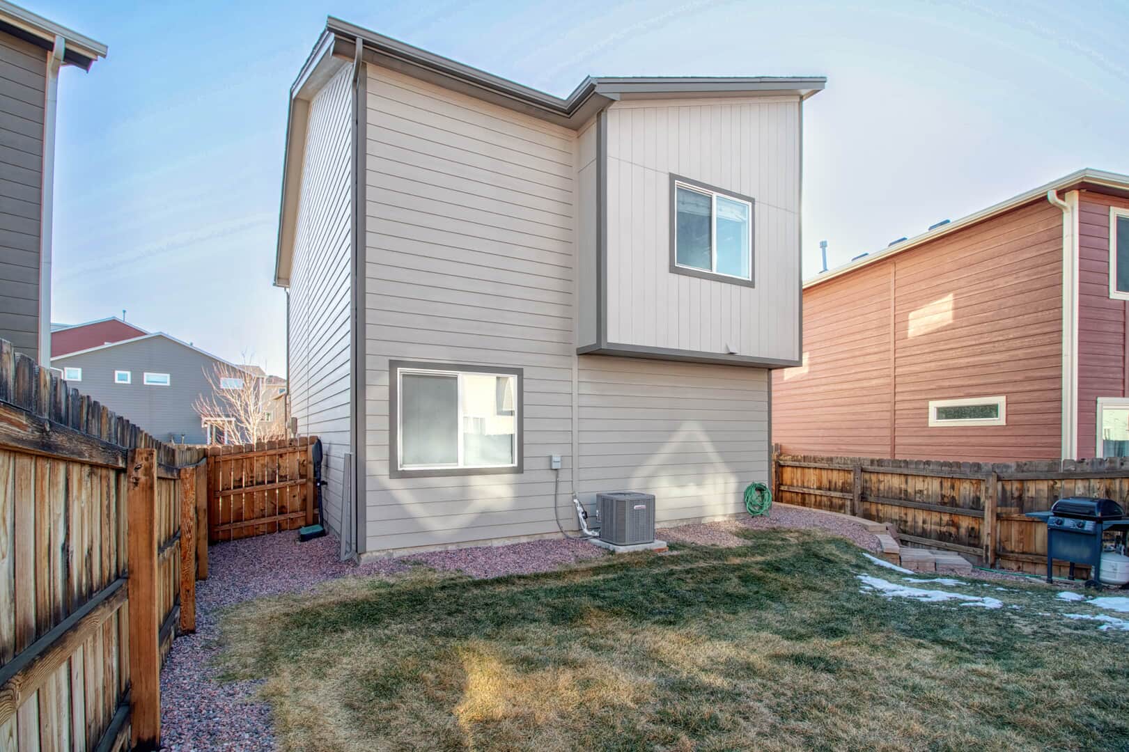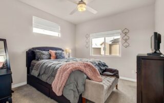 Welcome home to this modern 2-bedroom, 3-bath single-family residence located in the quiet Patriot Park community. Built in 2019, this well-maintained two-story home offers 1,125 square feet of thoughtfully designed living space, combining contemporary finishes with an efficient, open layout. The upper level features tall ceilings and an open-concept design that allows natural light to flow through the living, dining, and kitchen areas. Luxury vinyl flooring runs throughout the main living spaces, providing durability and a clean, modern look. The kitchen is centered around a peninsula-style island with a breakfast bar, offering additional prep space and casual seating—ideal for everyday living or entertaining. Upgrades new ceiling fans, kitchen back splash and tile in the master bathroom. All major appliances are included, making this home truly move-in ready. The spacious master bedroom includes a walk-in closet with custom shelving and an adjoining bath, while the conveniently located upper-level laundry adds everyday functionality. There is an additional guest bathroom. On the main level, a second bedroom with an adjoining bath offers flexibility for guests, a home office, or multi-generational living. Additional highlights include central air conditioning and an attached 2-car garage. The level lot features rear fencing and low-maintenance landscaping, reinforcing the easy-living appeal. Conveniently located with quick access to major roadways, Peterson Space Force Base, and nearby military installations, the home sits just south of a variety of restaurants and retail shops. Parks and trails along Sand Creek to the west provide easy access to outdoor recreation, while Powers Blvd and Highway 24 offer seamless connectivity throughout Colorado Springs. Don’t miss this lovely home!