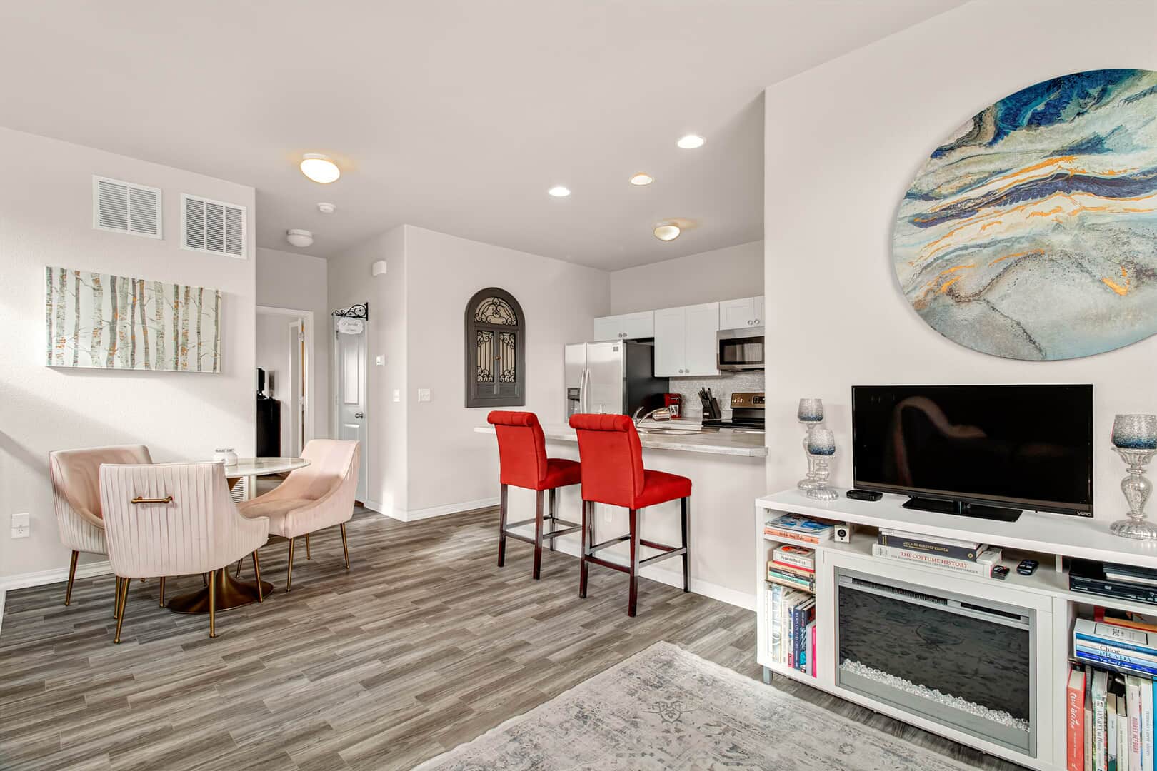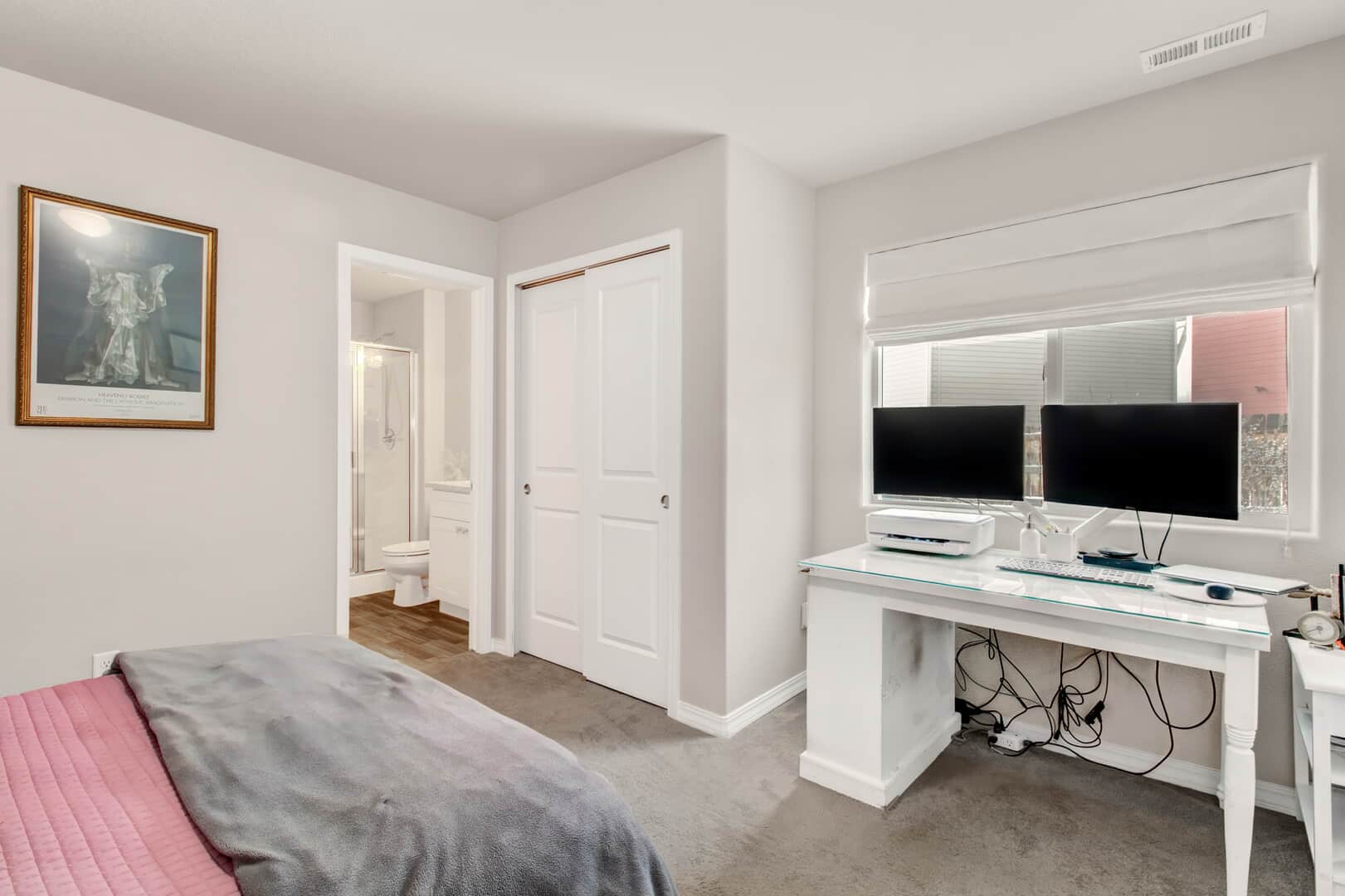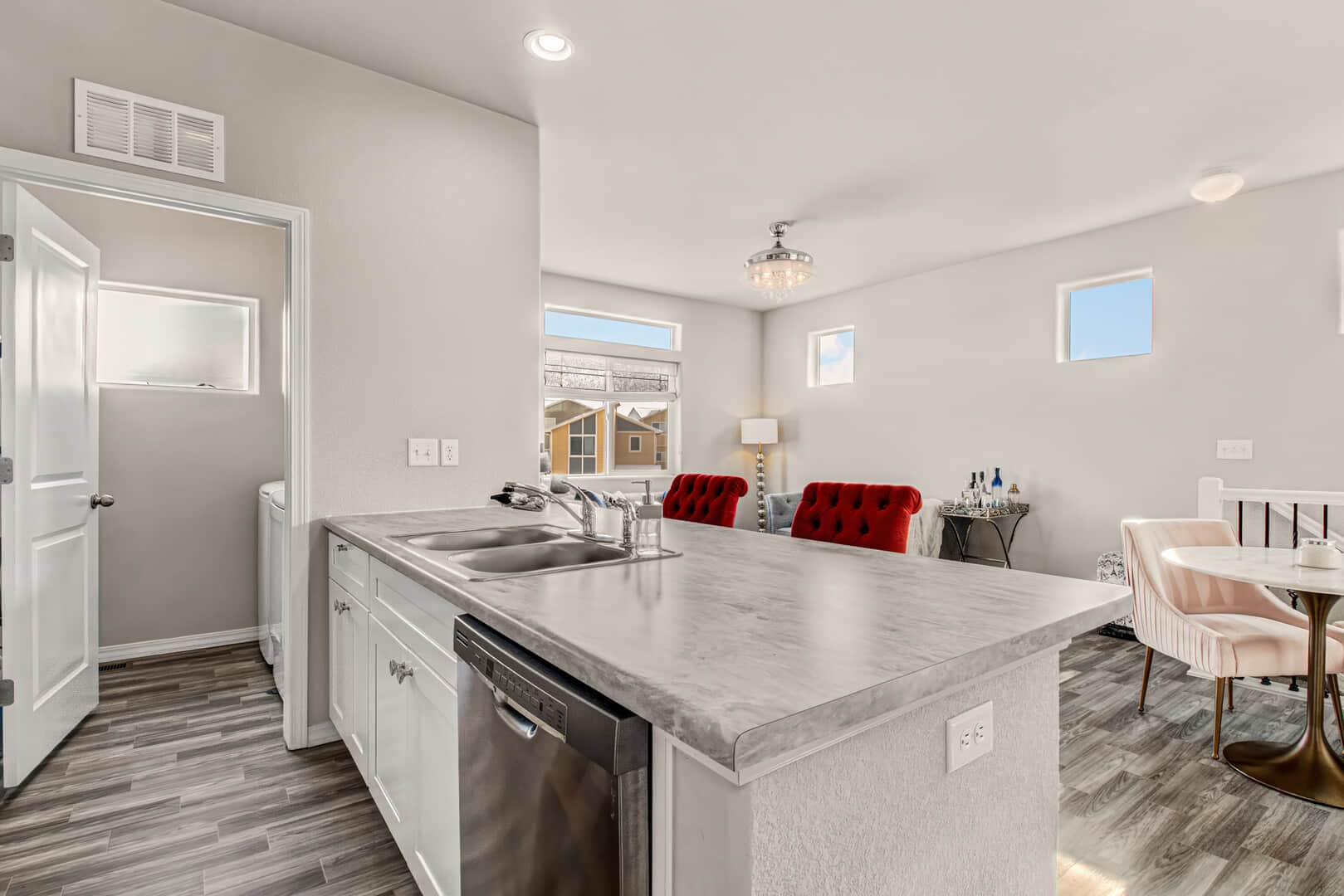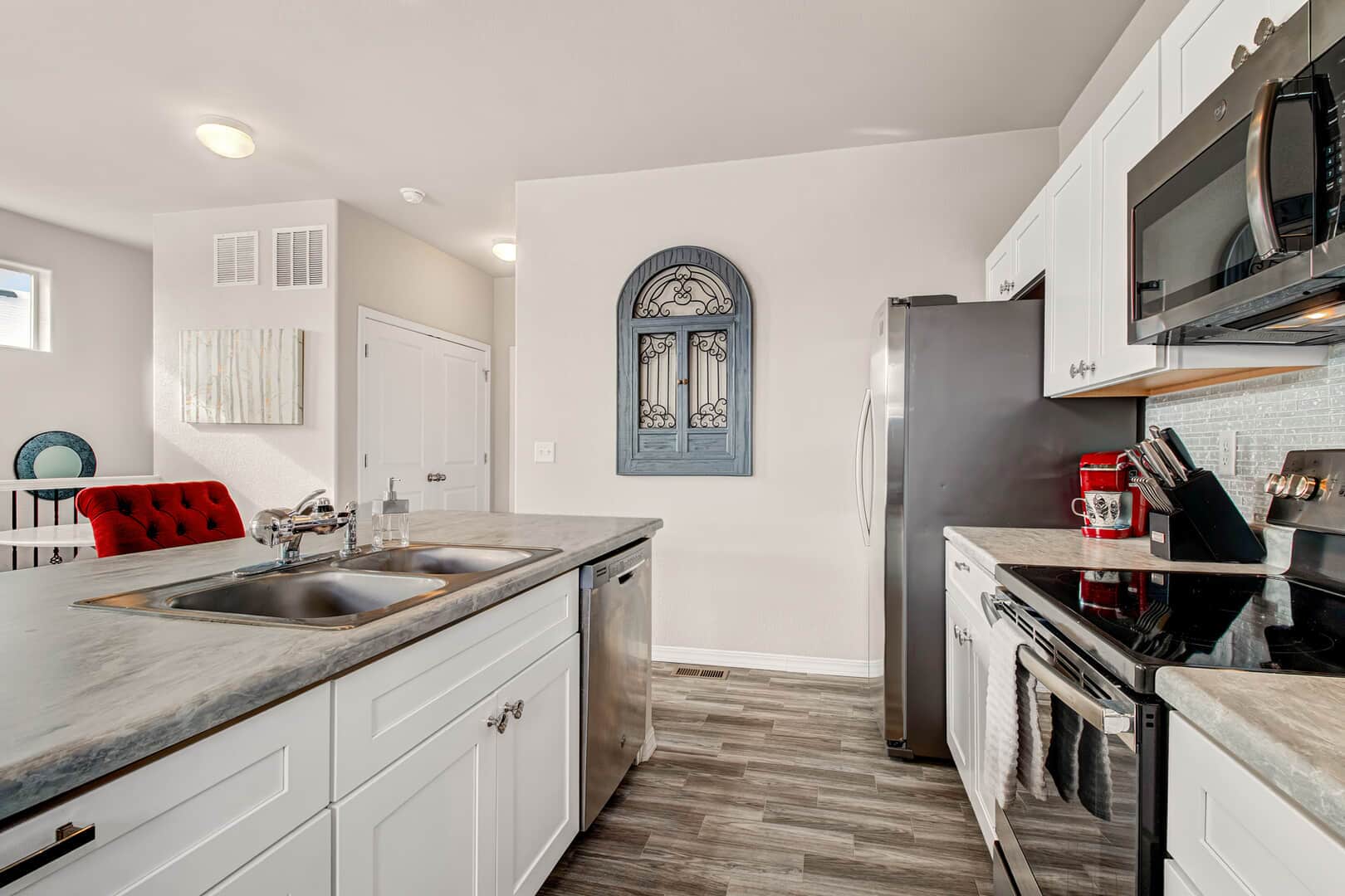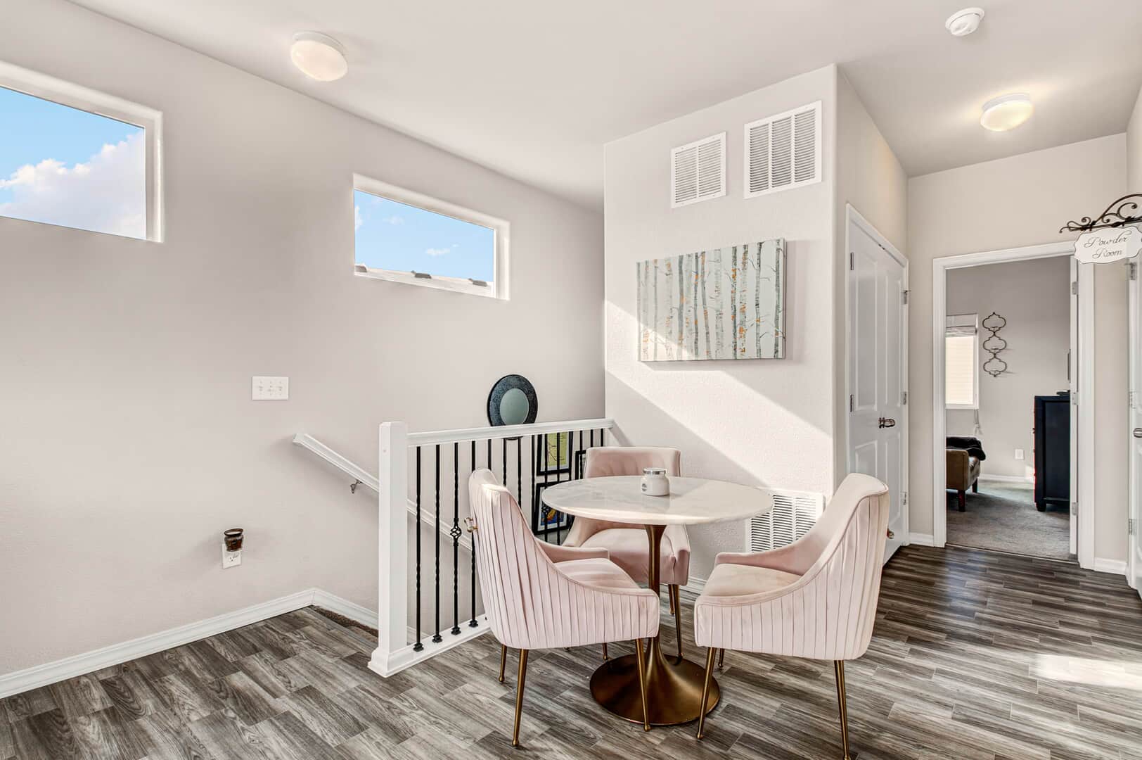Welcome home to this modern 2-bedroom, 3-bath single-family residence located in the quiet Patriot Park community. Built in 2019, this well-maintained two-story home offers 1,125 square feet of thoughtfully designed living space, combining contemporary finishes with an efficient, open layout. The upper level features tall ceilings and an open-concept design that allows natural light to flow through the living, dining, and kitchen areas. Luxury vinyl flooring runs throughout the main living spaces, providing durability and a clean, modern look. The kitchen is centered around a peninsula-style island with a breakfast bar, offering additional prep space and casual seating—ideal for everyday living or entertaining. Upgrades new ceiling fans, kitchen back splash and tile in the master bathroom. All major appliances are included, making this home truly move-in ready. The spacious master bedroom includes a walk-in closet with custom shelving and an adjoining bath, while the conveniently located upper-level laundry adds everyday functionality. There is an additional guest bathroom. On the main level, a second bedroom with an adjoining bath offers flexibility for guests, a home office, or multi-generational living. Additional highlights include central air conditioning and an attached 2-car garage. The level lot features rear fencing and low-maintenance landscaping, reinforcing the easy-living appeal. Conveniently located with quick access to major roadways, Peterson Space Force Base, and nearby military installations, the home sits just south of a variety of restaurants and retail shops. Parks and trails along Sand Creek to the west provide easy access to outdoor recreation, while Powers Blvd and Highway 24 offer seamless connectivity throughout Colorado Springs. Don’t miss this lovely home!