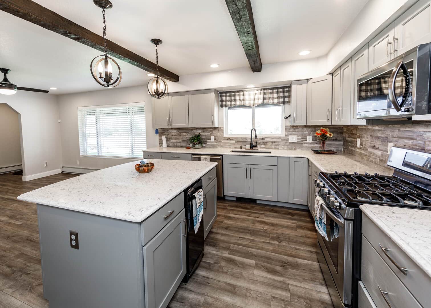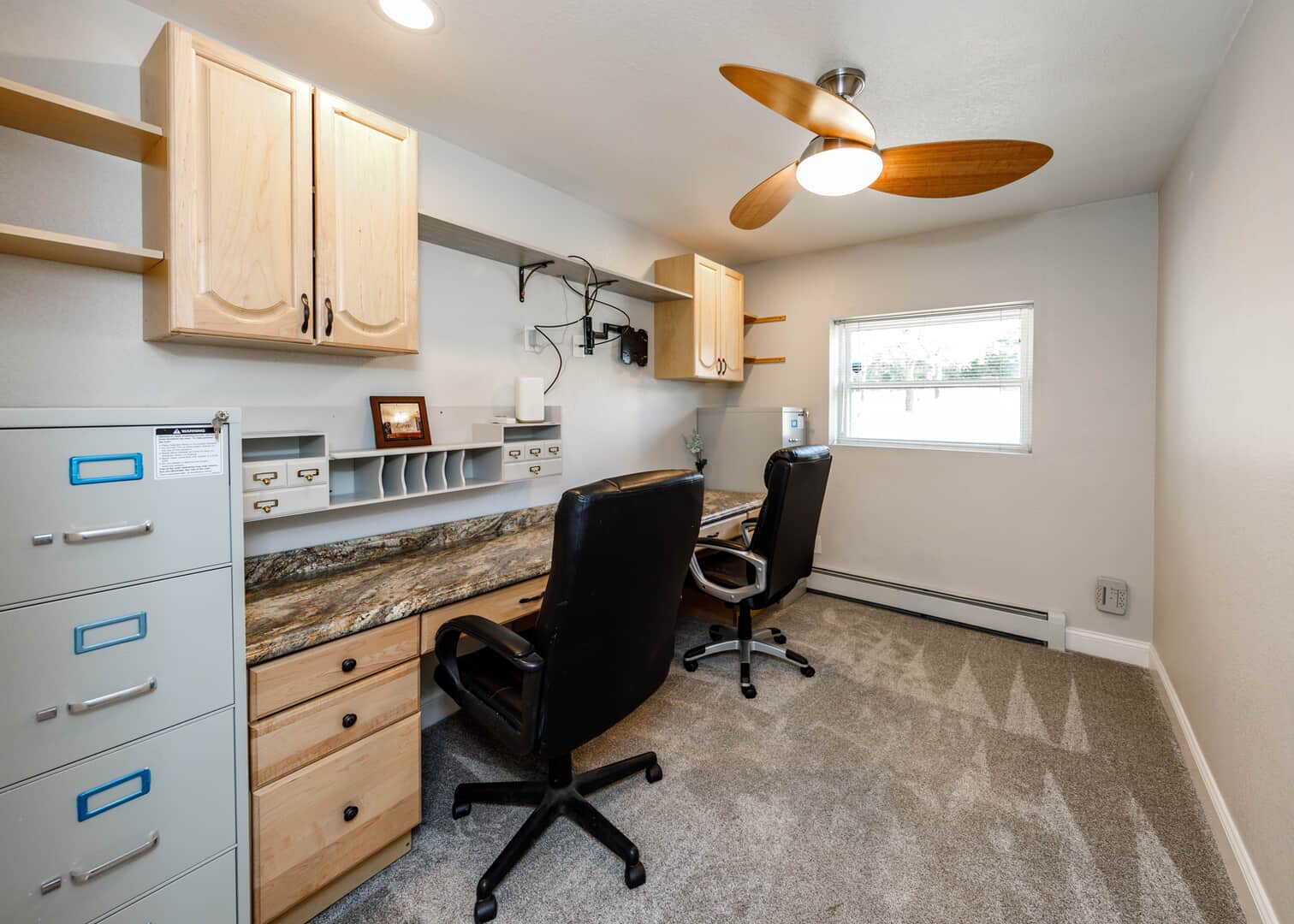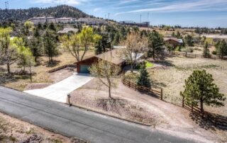 Absolutely perfect totally renovated one level rancher on one acre with unobstructed Pikes Peak & mountain range views ~ 1763 sq ft with 2 bedrooms, office, 2 1/2 baths & 2 1/2 attached garage with extra 14×11 work room with 3 walls of cabinets, plus 20×20 steel outbuilding with 1 car overhead door ~ Open concept quartz island kitchen with grey painted cabinets with soft close drawers & pull outs ~ Stainless steel appliances, pantry, pendant lighting & stone back splash ~ All remodeling done 5 1/2 years ago with new LVP flooring in living areas, new carpeting in bedrooms & office which has a full wall of built-ins ~ Totally new baths with granite counters & vessel sinks ~ Fresh interior paint ~ new stone faced gas log fireplace ~ New lighting, electric & electric panel ~ 2 mini split a/c’s, security system with 6 cameras ~ laundry with sink & toilet in finished 12×11 utility room entered from garage (not figured into sq ft) ~ New vinyl windows including large picture windows looking right at Pikes Peak ~ 50×10 covered front porch ~Huge fenced yard ~ Hot water heat ~ 2×6 exterior construction ~ feels private & rural but only 2 minutes to university village in a subdivision most people don’t know is there. No covenants or HOA. Shows great.