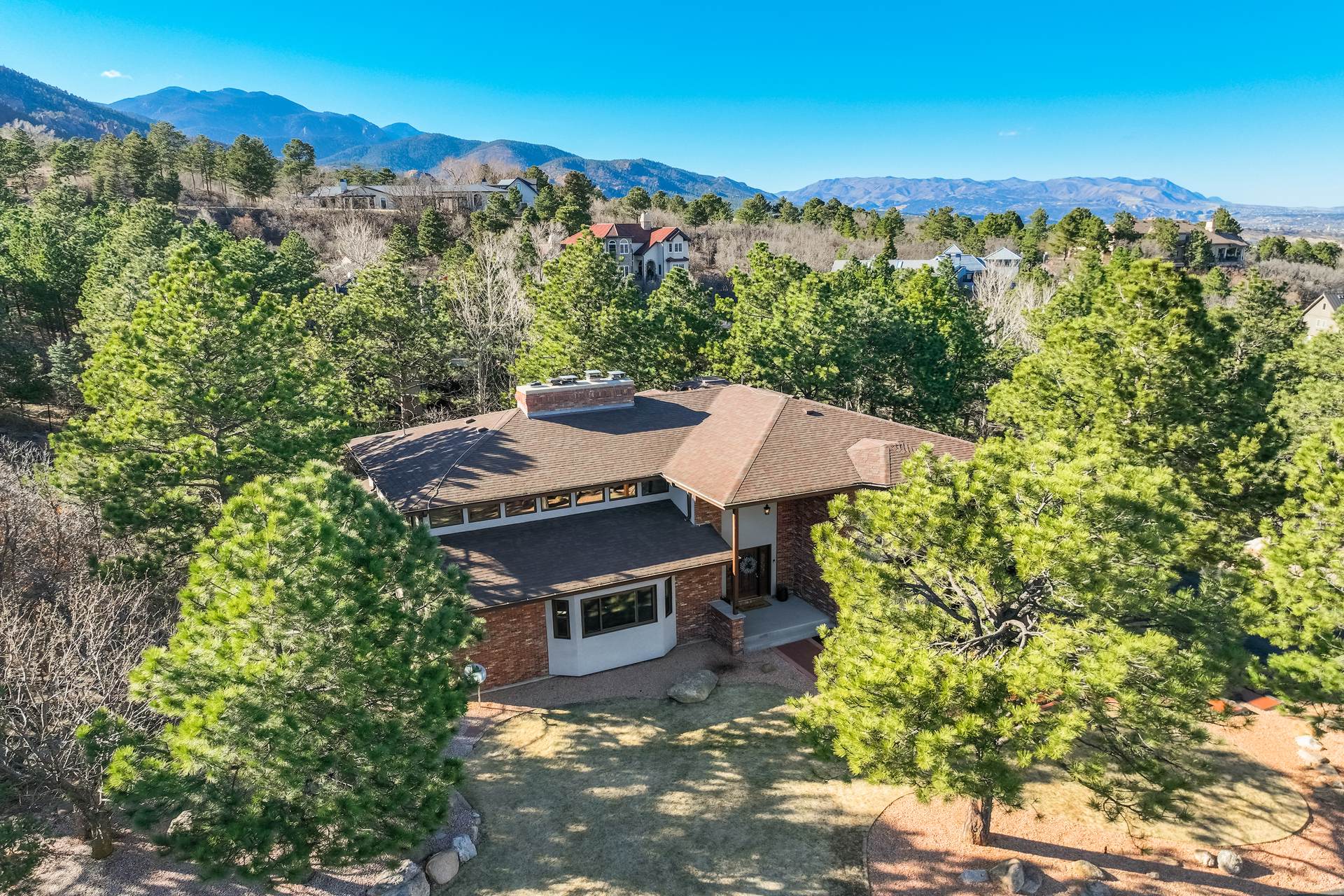 Immaculate Luxury Broadmoor Residence. Be awe struck by both breathtaking city and serene mountain views. Located in desirable award winning School District 12. Exceptional Two-Story home reflects pride of ownership and meticulous care throughout especially with its most recent transformations. Every detail was thoughtfully considered with both elegance and comfort in mind- so many details that the most discerning Buyer must see it for themselves. This abode generously boasts five spacious bedrooms, six luxurious remodeled baths, four fireplaces, two sets of washer and dryers, and attached three car garage with workshop. Property includes additional carports plus a storage shed for Buyers’ recreational toys. Perfectly positioned parallel to the Broadmoor Mountain Golf Course. Beautiful home designed with a refined welcoming floor plan. Like the well appointed primary suite which is a true sanctuary boasting peaceful sitting room anchored with fireplace, custom walk in closet, and spa-inspired stone adorned bathroom. Every bedroom upstairs offers its own attached bath creating everyone a true en-suite experience. The upper level is complete with a charming reading nook providing a birds eye view of the massive mountain chic living room. Amazing Chef Inspired Kitchen with ample center island, work desk, eat in area, walk out access onto the deck for outside dining and entertaining. Continuing on the main level, finds you a formal Dining Room, Bedroom/Office, Full Bath, Charming Pantry and a plush raised Wash for man’s best friend. The Basement is the ideal environment for extended family or visitors including a secondary kitchen with dining nook, family room and wet bar. One of the most appealing aspects is its connection to take full advantage of Colorado’s beauty. The home features five multiple level porches and decks which extend the living areas to include the outdoors. Perfect for morning coffee, evening sunsets, or hosting friends to take in the dramatic views